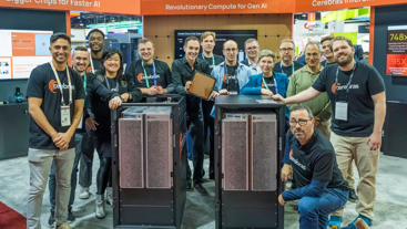 The fellow in the center is holding the Cerebras "chip", an entire silicon wafer. Rob is on the right, in the green shirt.