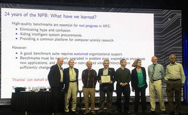 The NAS Benchmarks received the Supercomputing Test of Time award at SC15 in Austin. Rob is next to Horst Simon, who holds the award.