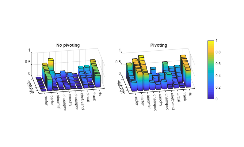 funs = ["moler", "parter", "binomial", "chebspec", "cauchy",... "chebspec", "chebvand","circul", "frank", "ris"];