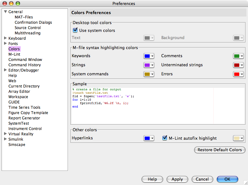 Some days my eyes are tired and other days I am just bored with a white background and black text. On these days I go and set my MATLAB Desktop background and foreground colors to something different. I usually like the soothing colors of a light blue background with black text.