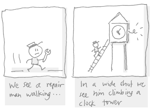 I'll use a technique that I call storyboarding. You may be familiar with the concept of storyboarding from the movies. The idea is that you draw rough sketches of how the action will play out. This saves you time and money when you're actually trying to move expensive things around the set.