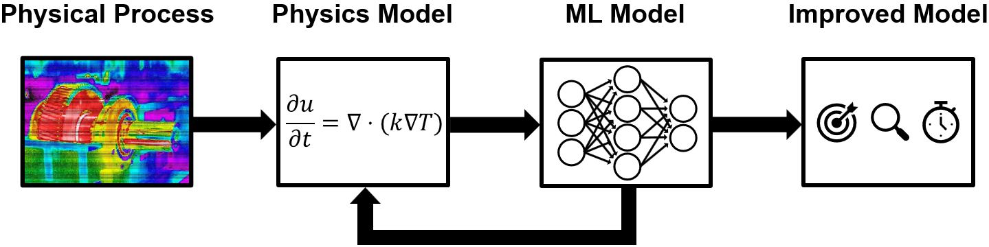 - Virtual Sensors: In engineering, physics-informed models such as thermal neural networks combine the structure of certain heat transfer models with neural networks that capture complex or unknown effects. This hybrid approach enables accurate predictions that are more interpretable than black-box models like Long Short-Term Memory Neural Networks, and can be applied to tasks like forecasting temperature distributions in electric motors to reduce reliance on expensive physical sensors.