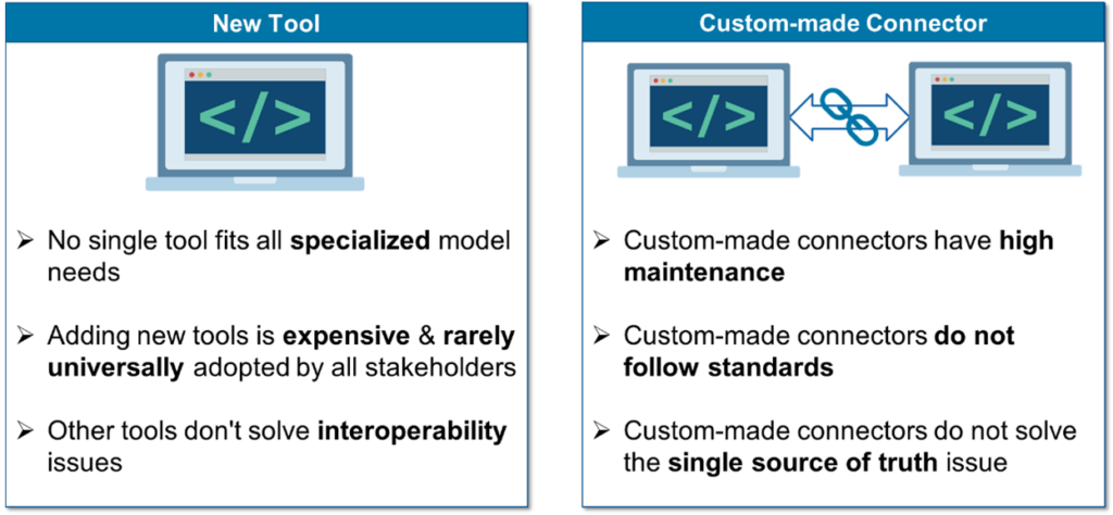 Figure 2 – Pitfalls of traditional solution to guarantee digital continuity across disciplines