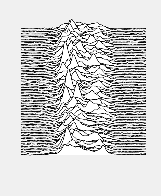 A copy of the Cambridge Encyclopedia of Astronomy was at a cafe at the Manchester Central library where Joy Division’s guitarist Bernard Sumner happened to be taking a work break. Sumner found the article and immediately felt a connection with the stacked wavy lines in Craft's ridgeline plot. He sent the image to Peter Saville, the graphics artist for the band’s record label, who imprinted the lines in white against a black album cover with no other graphics or text.