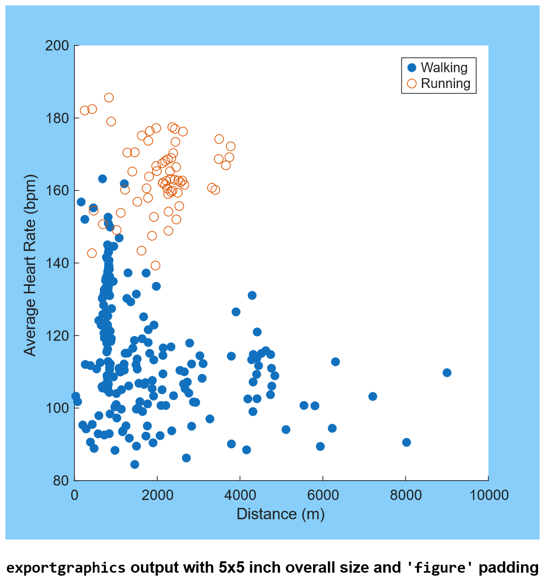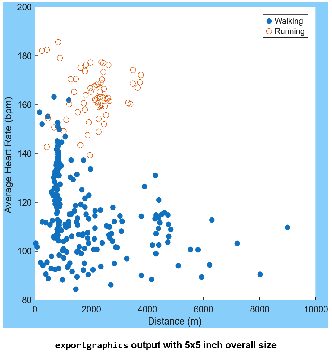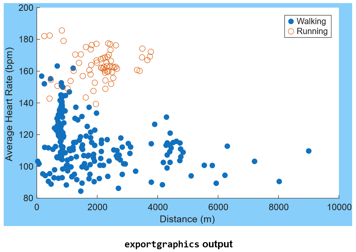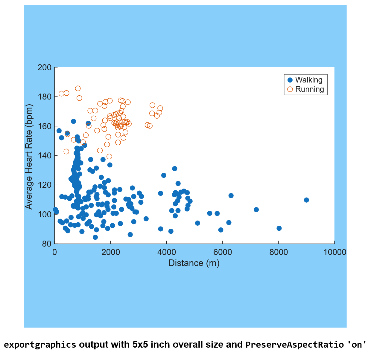 Well now there's an easier way with new name-value pairs available for MATLAB Desktop and MATLAB Online in R2025a. Let's take a look at some of these changes to the exporting functions by using a plot of some exercise data that I collected when walking and running.