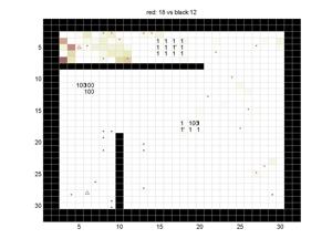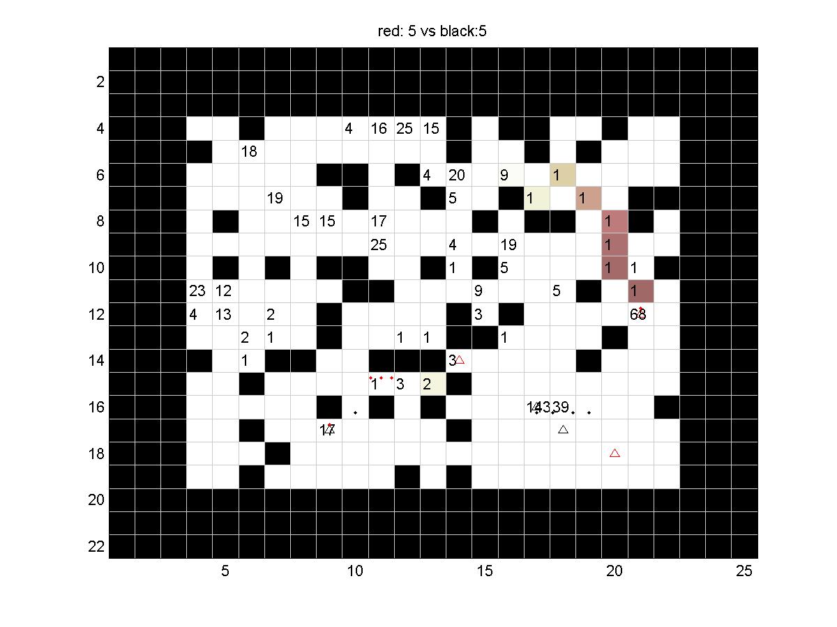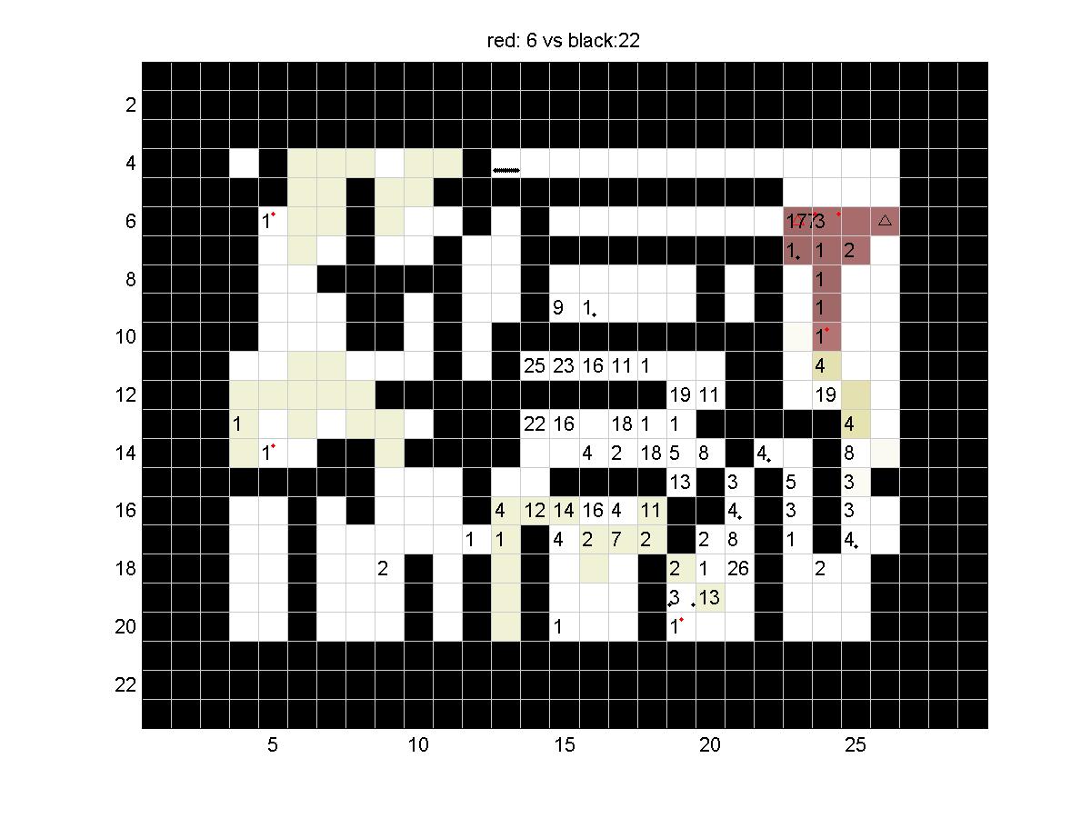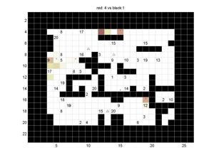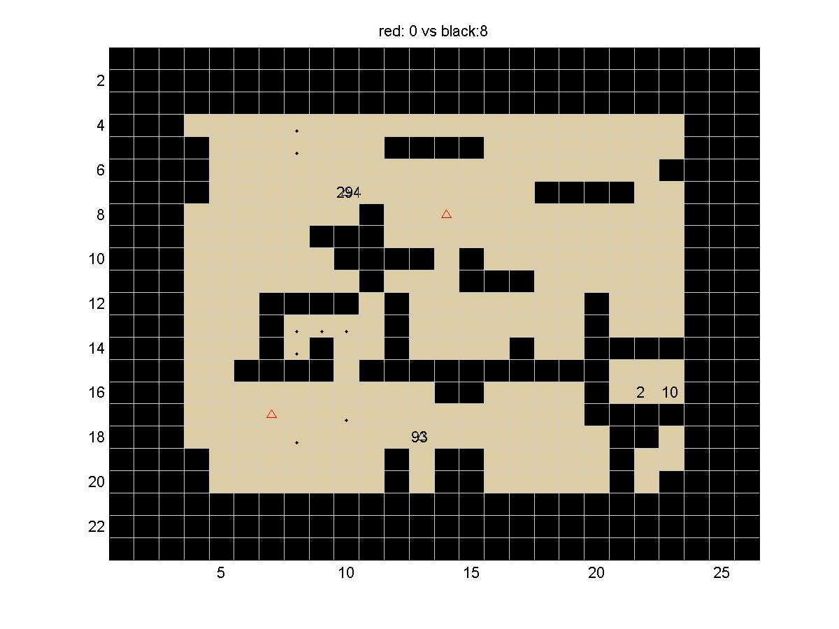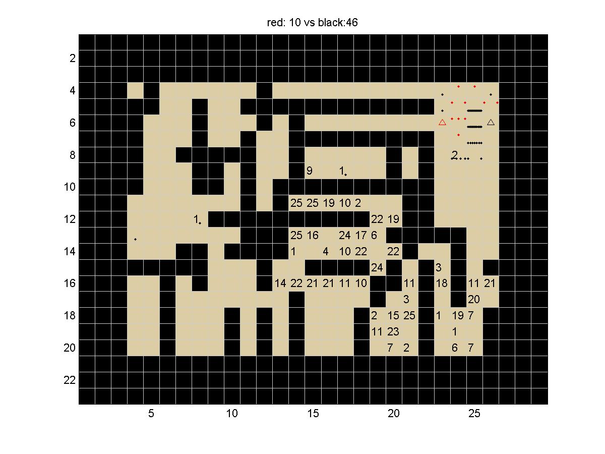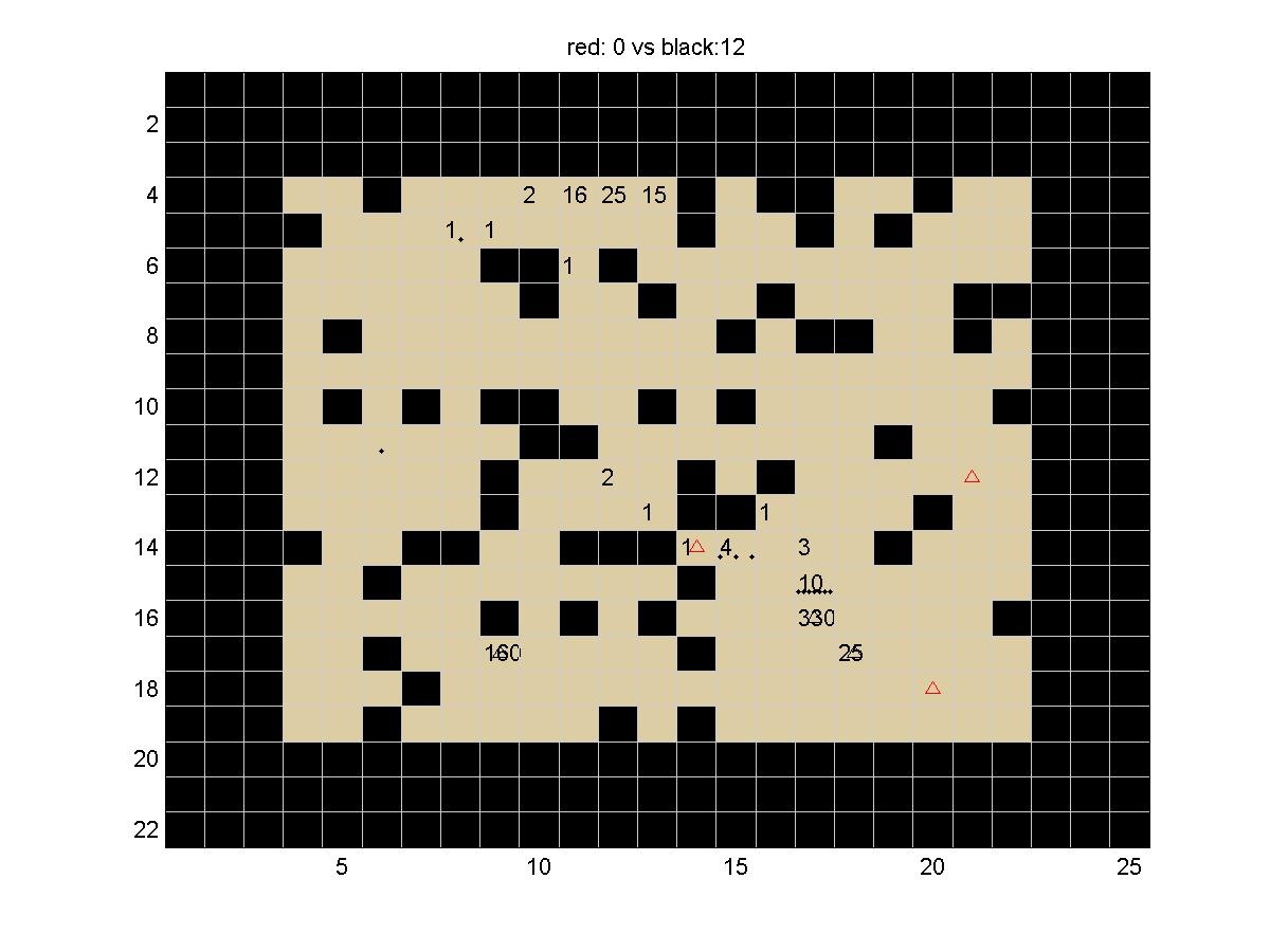 Board: 6 This board is particularly tricky because the goals of the two ants armies are nearly aligned. Also, there are a couple of dead ends that many ants got stuck in.