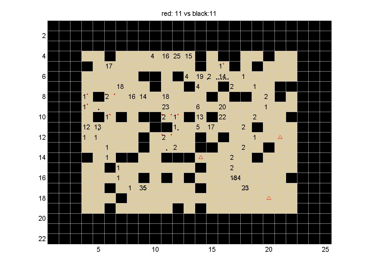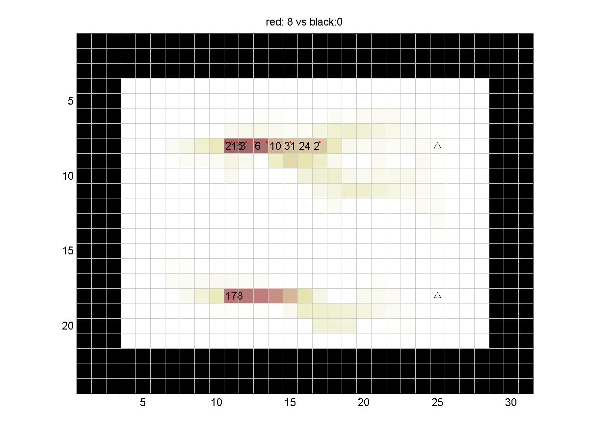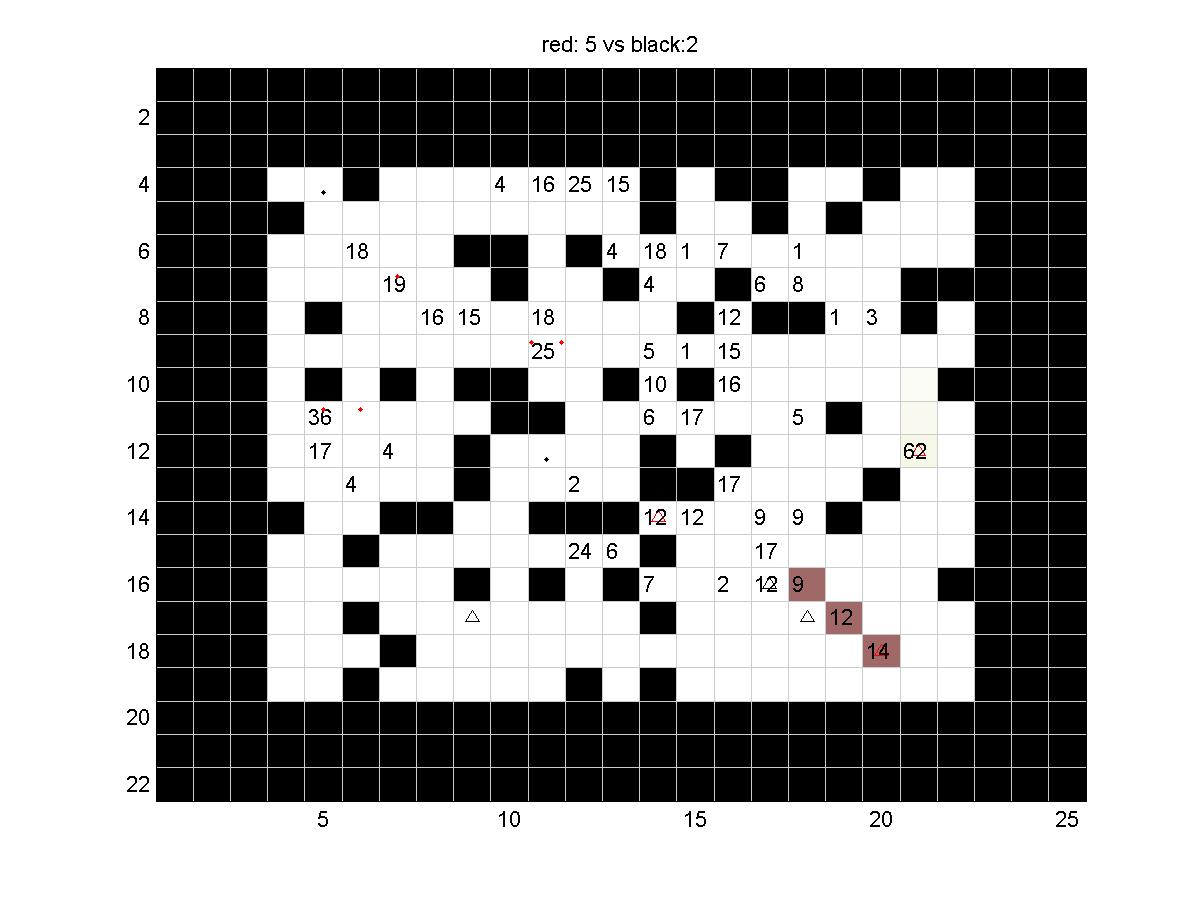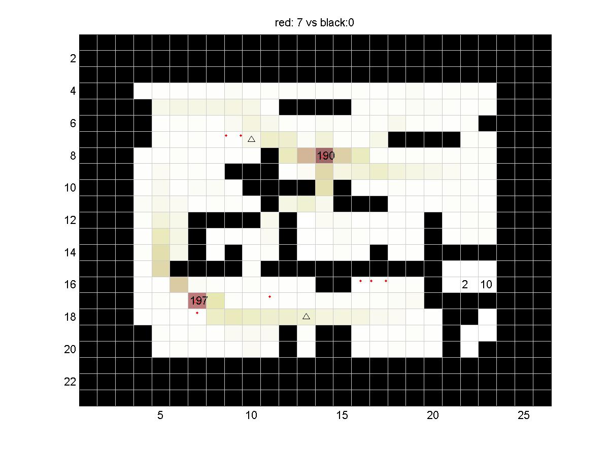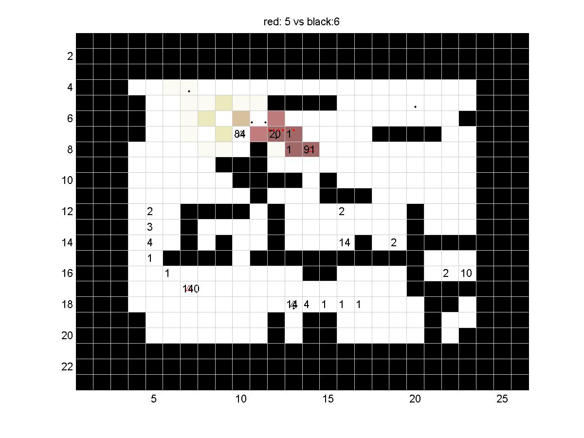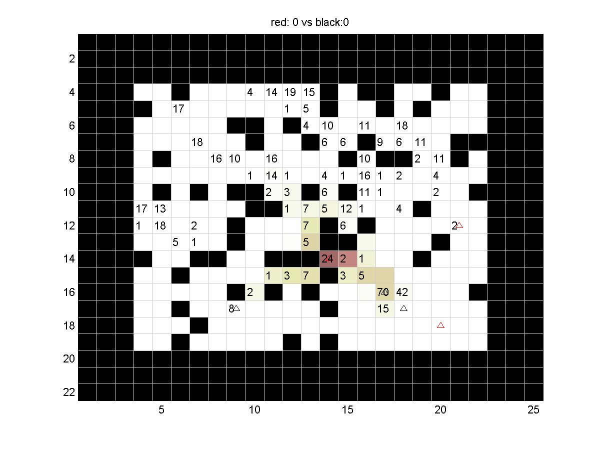 Board: 6 This board is particularly tricky because the goals of the two ants armies are nearly aligned. Also, there are a couple of dead ends that many ants got stuck in.