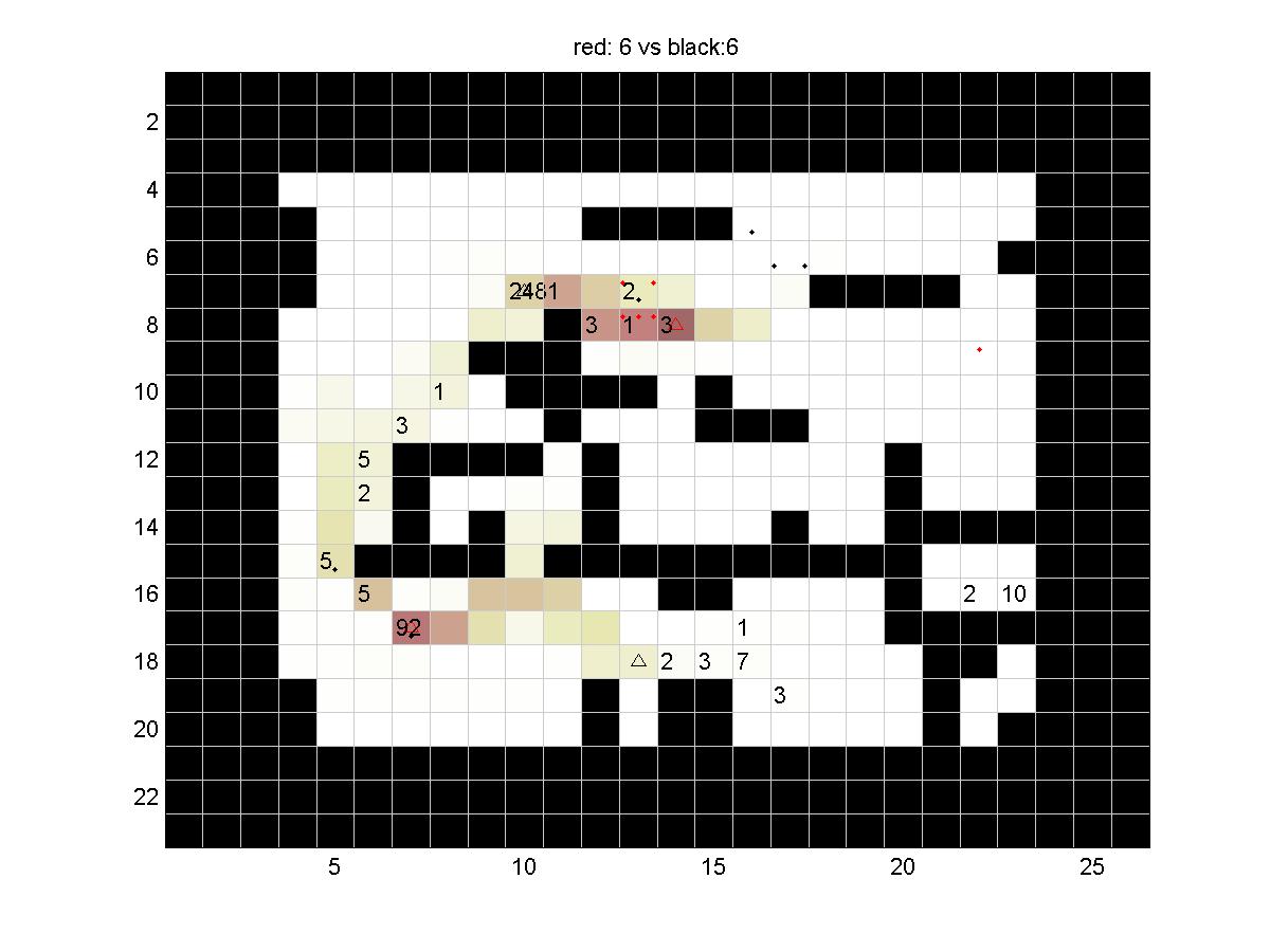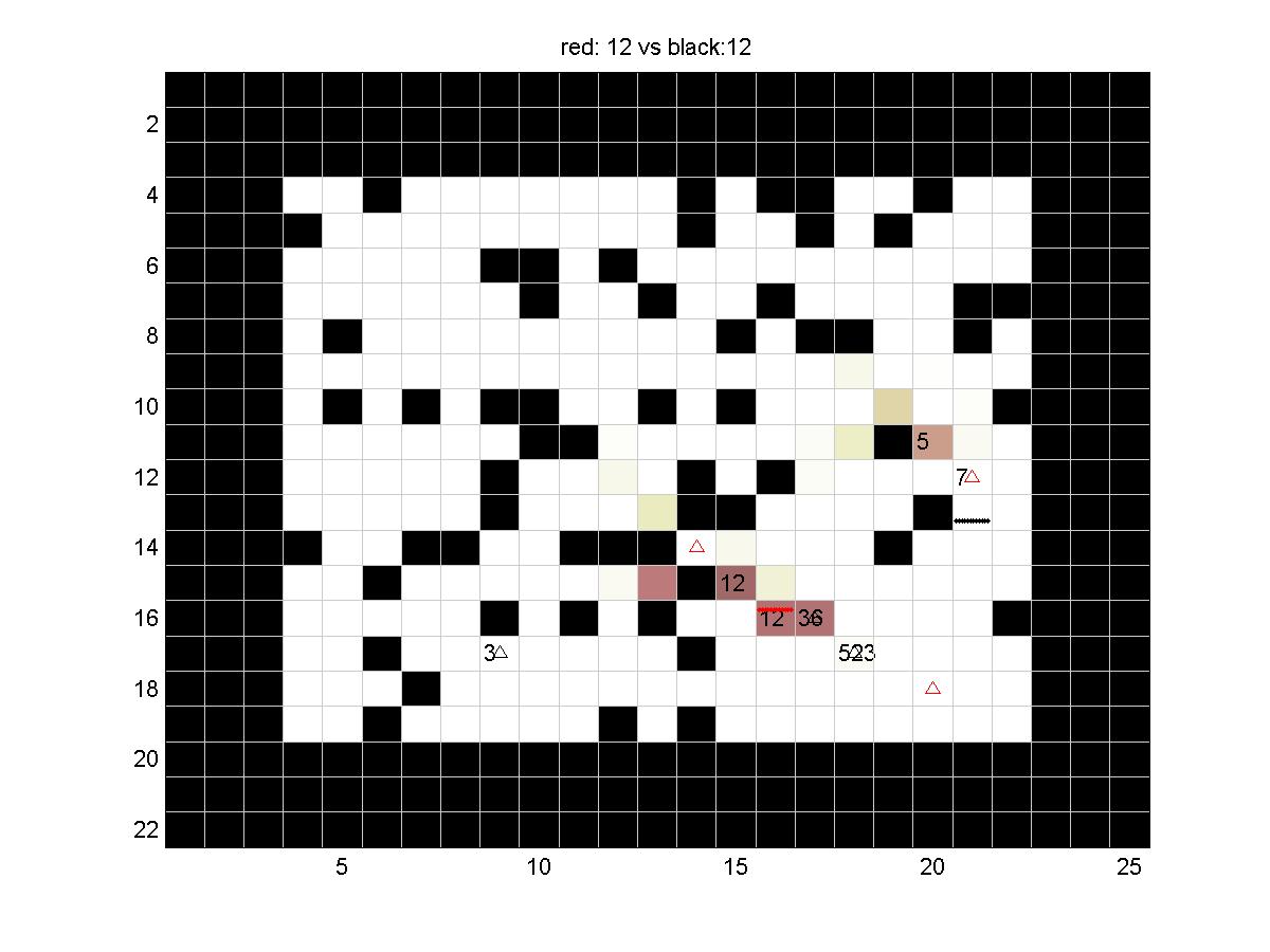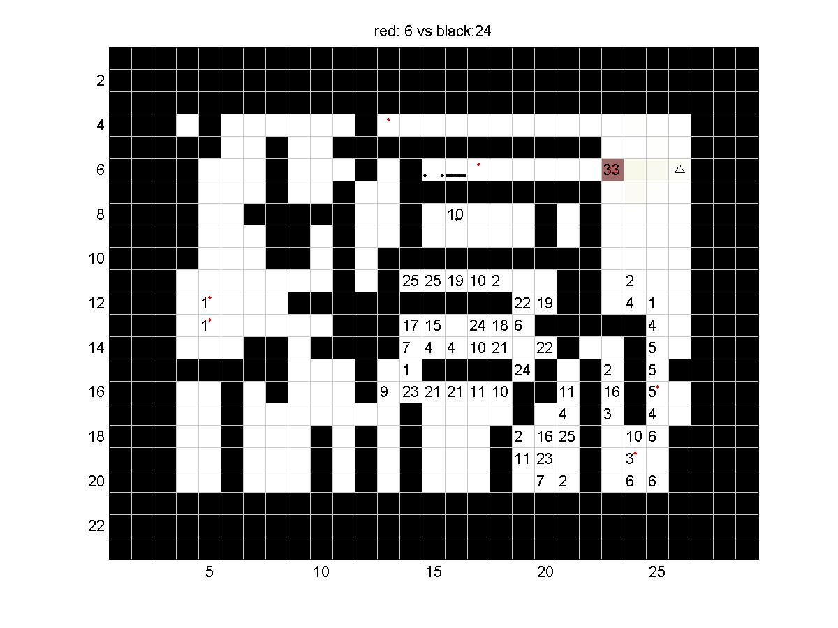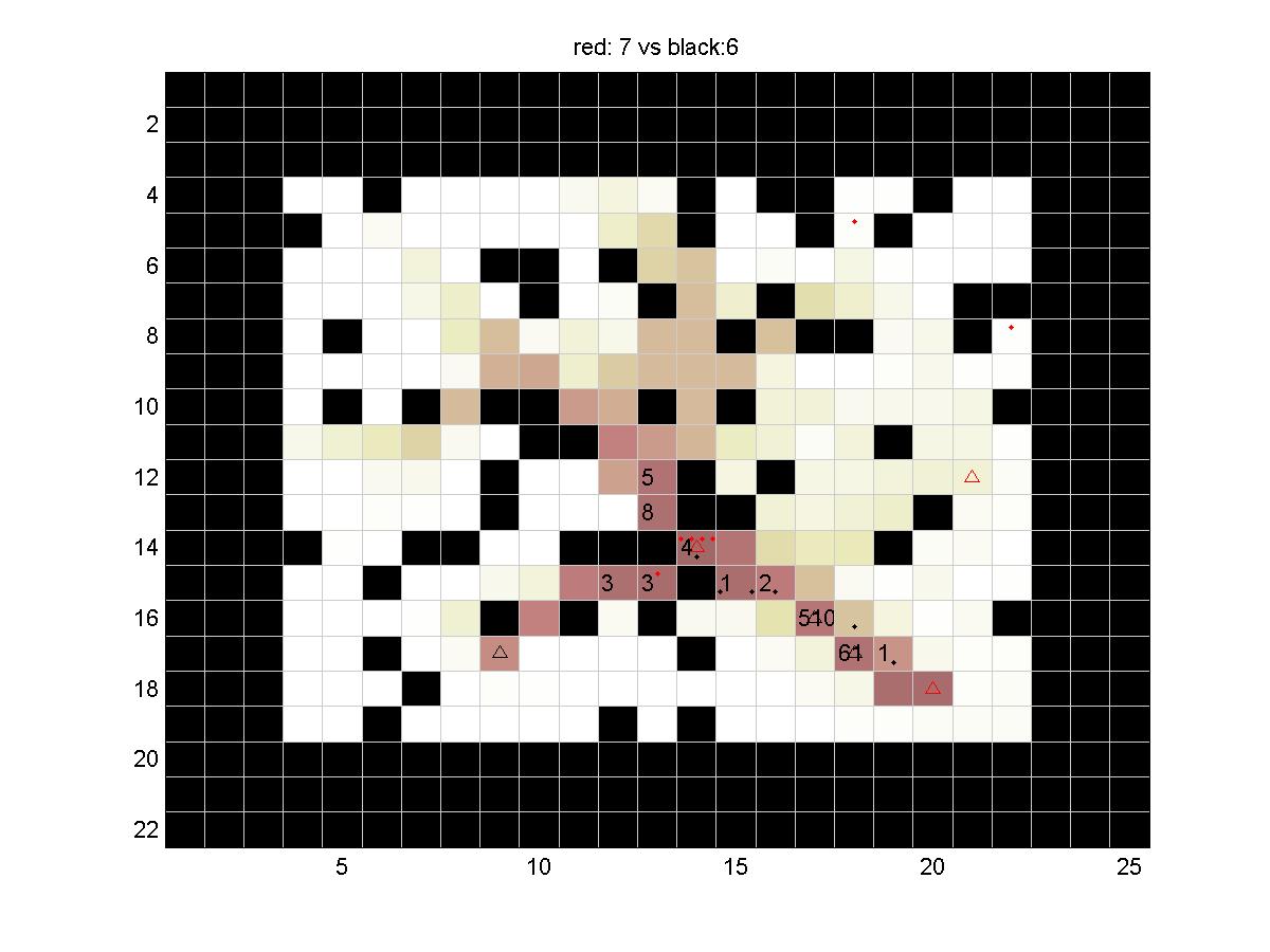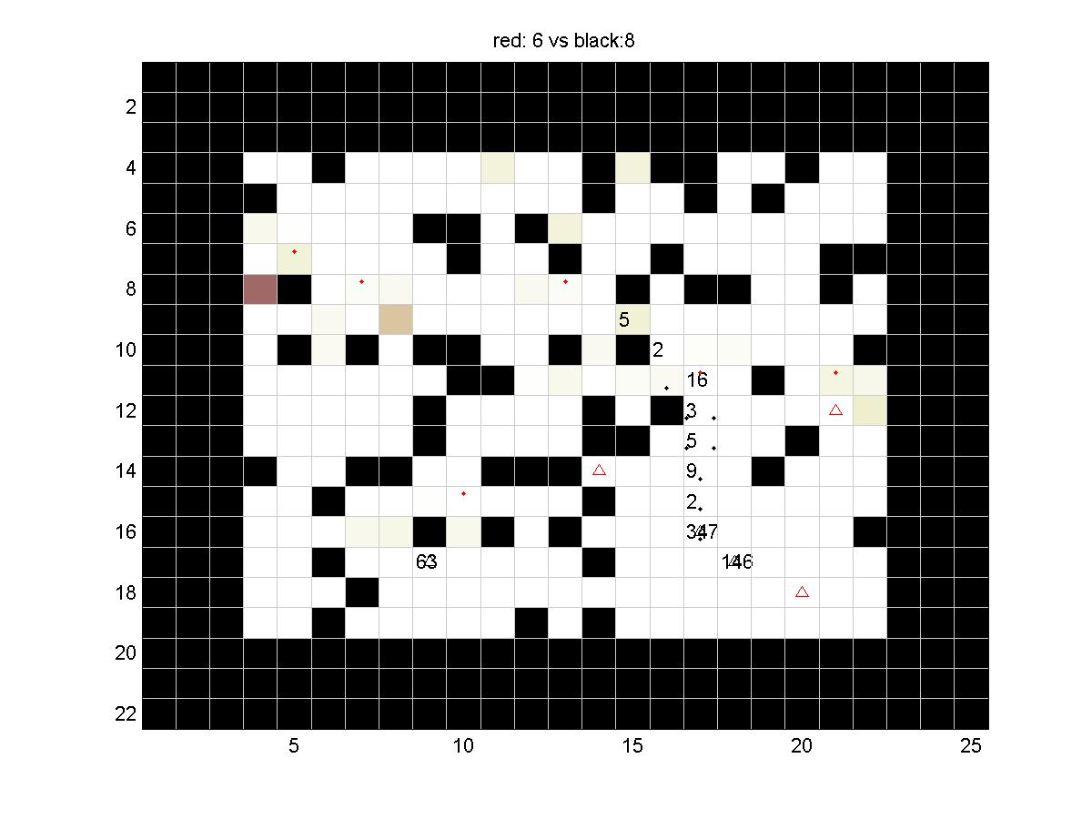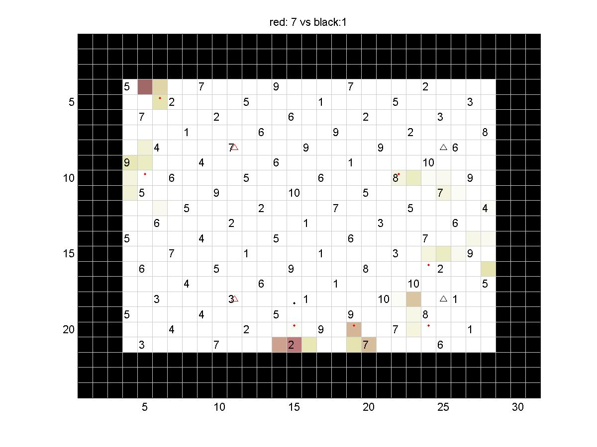 Board: 6 This board is particularly tricky because the goals of the two ants armies are nearly aligned. Also, there are a couple of dead ends that many ants got stuck in.