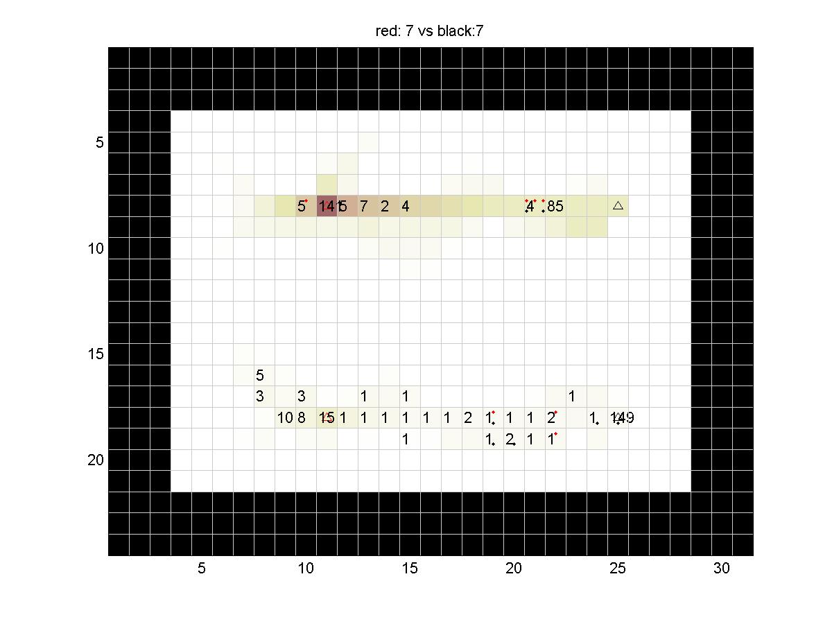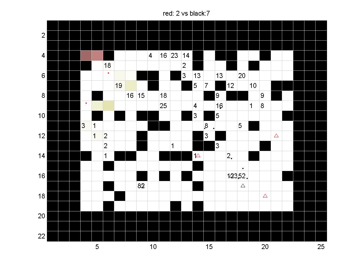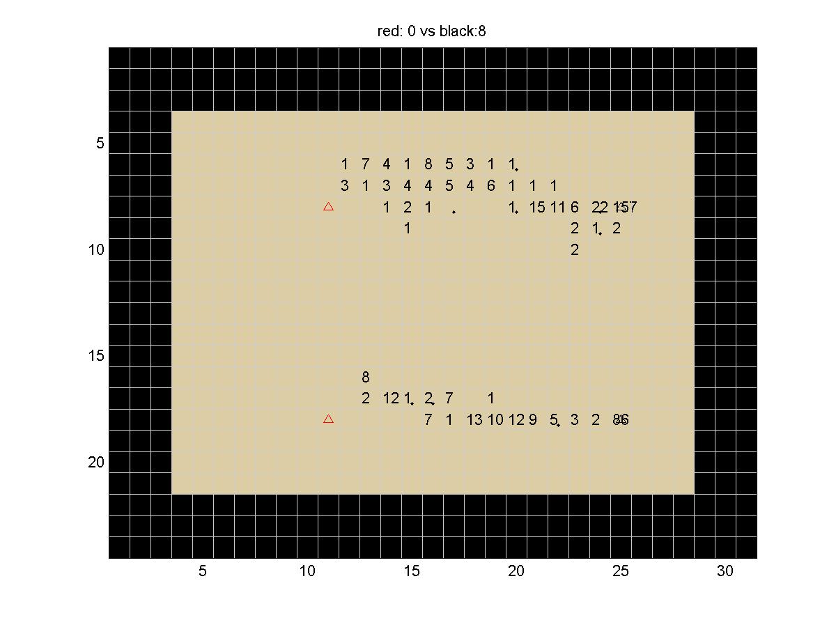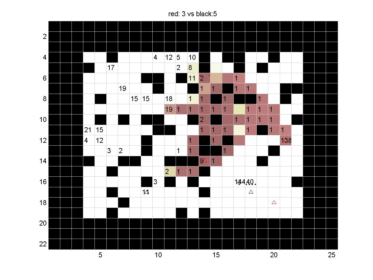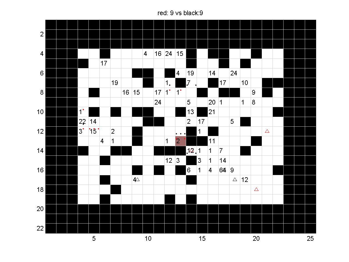 Board: 6 This board is particularly tricky because the goals of the two ants armies are nearly aligned. Also, there are a couple of dead ends that many ants got stuck in.