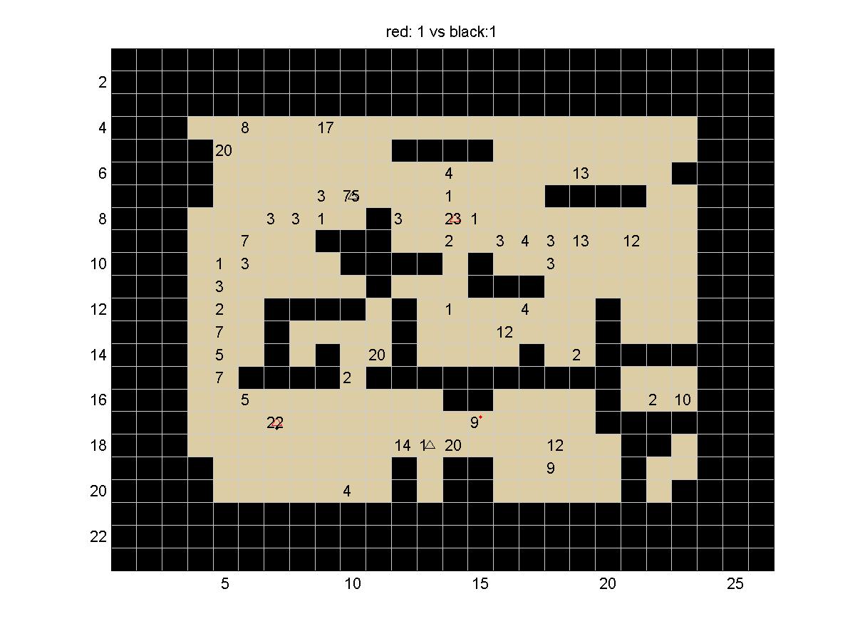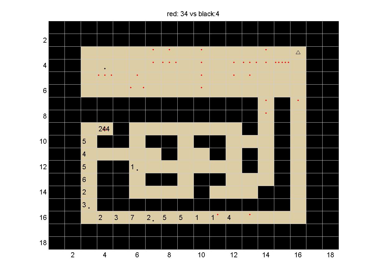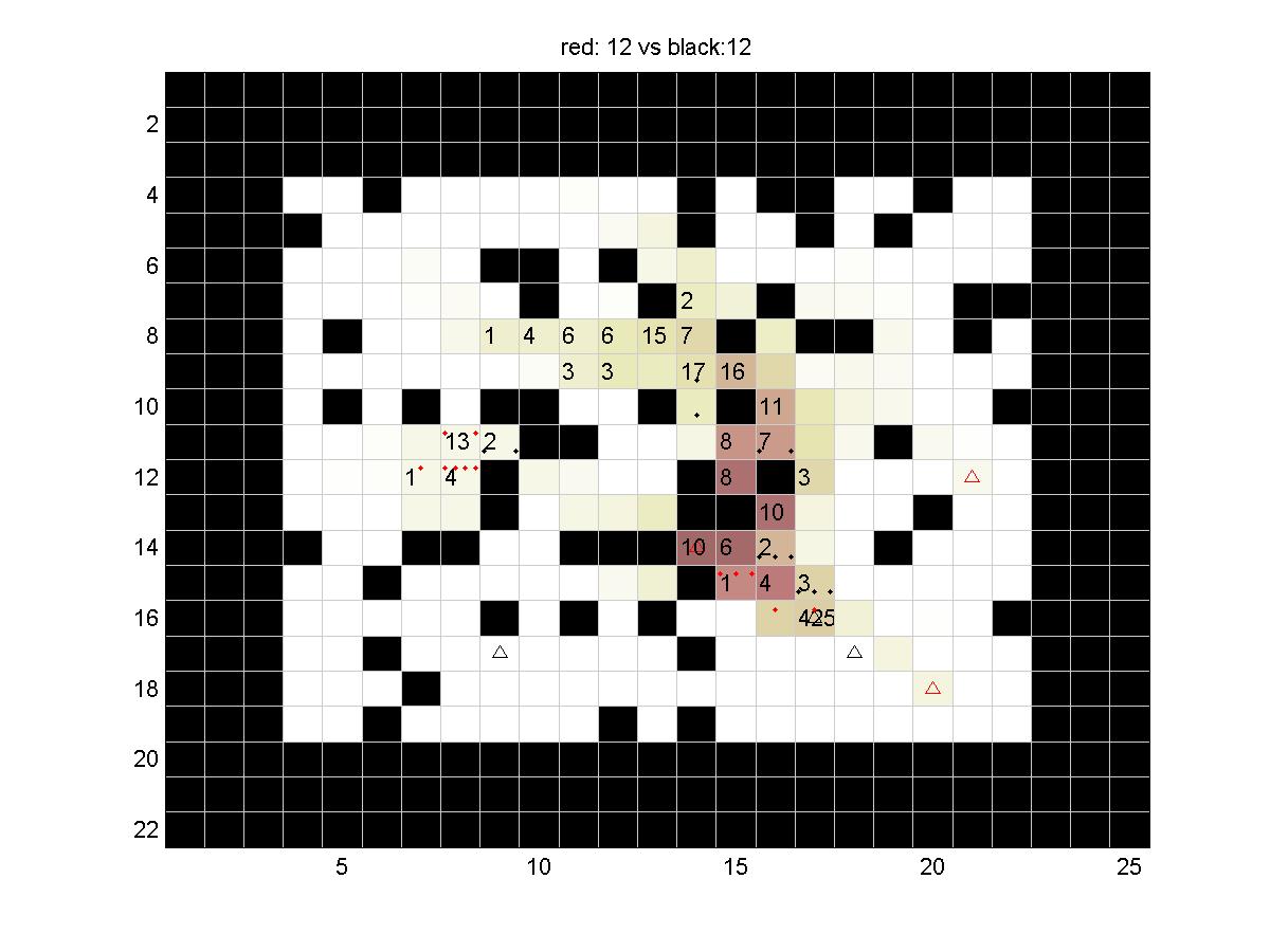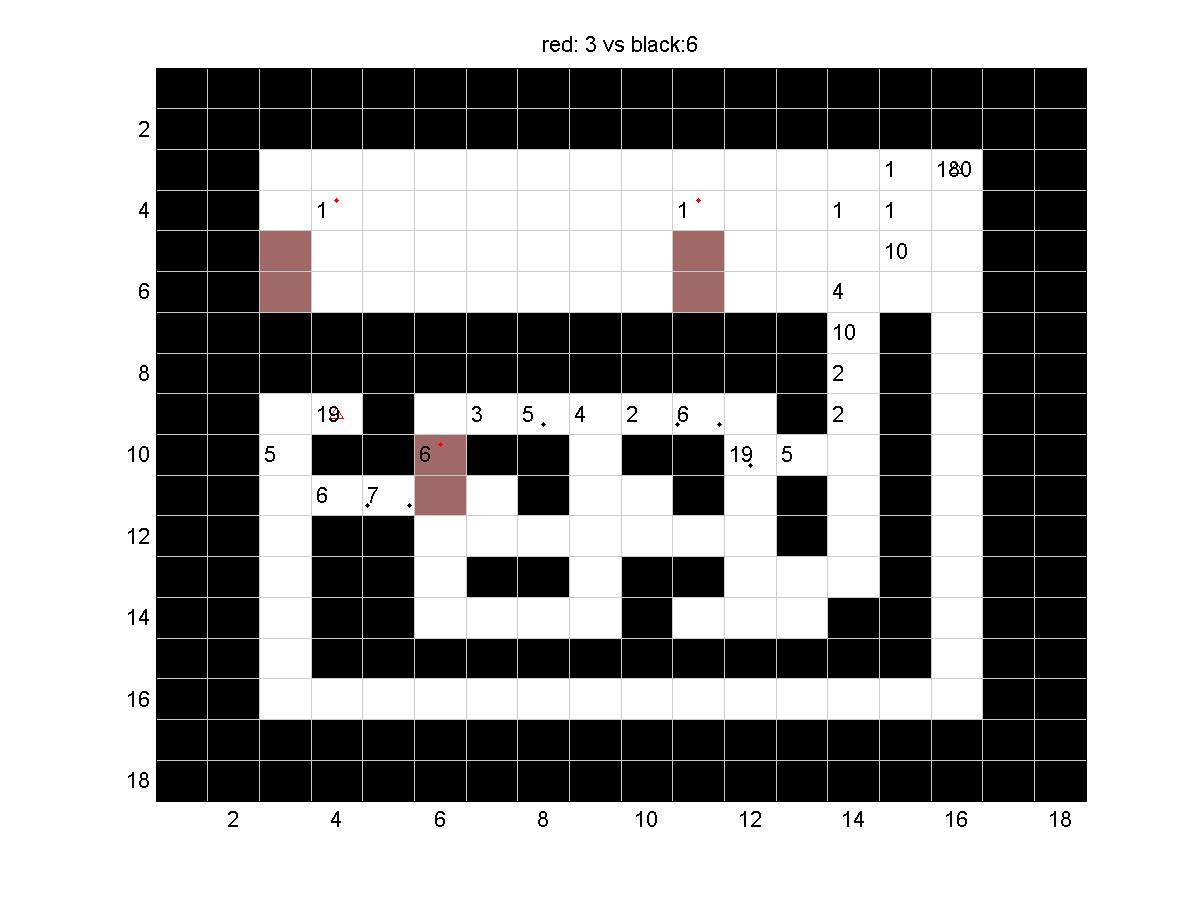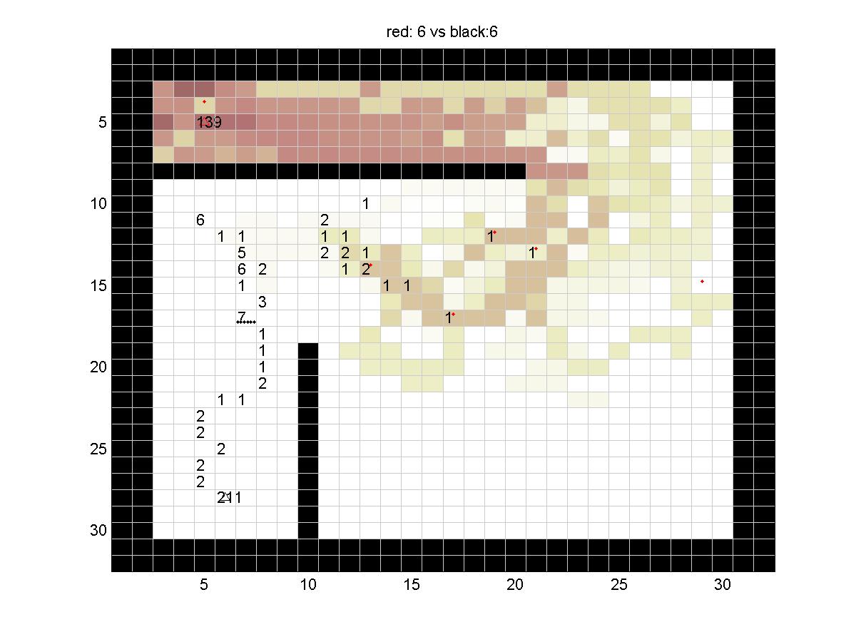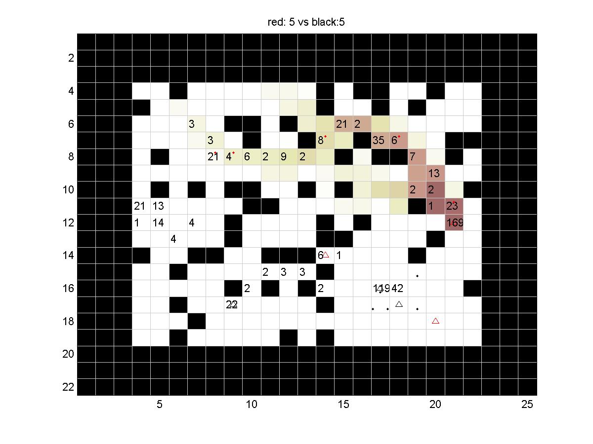 Board: 6 This board is particularly tricky because the goals of the two ants armies are nearly aligned. Also, there are a couple of dead ends that many ants got stuck in.