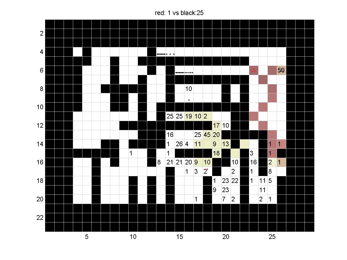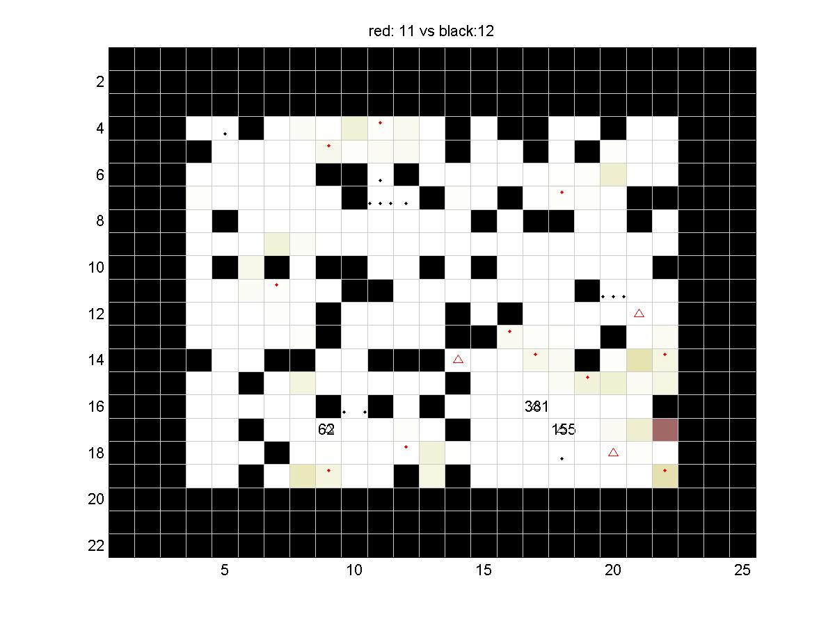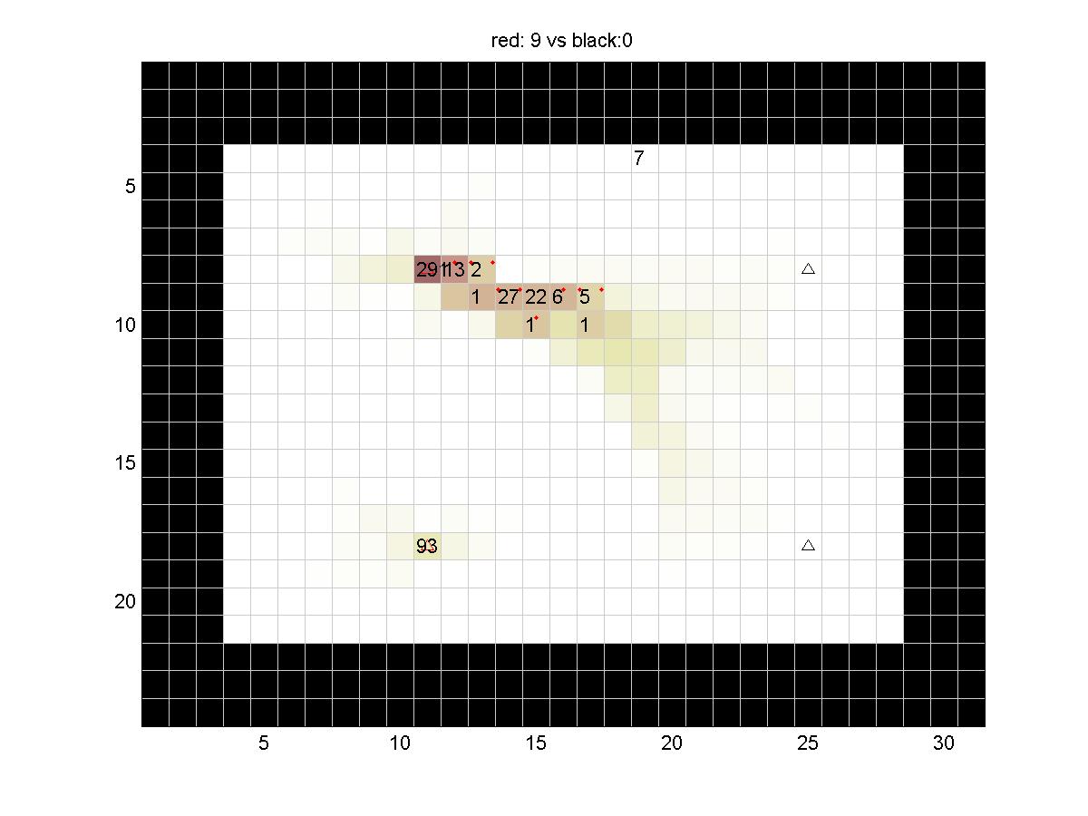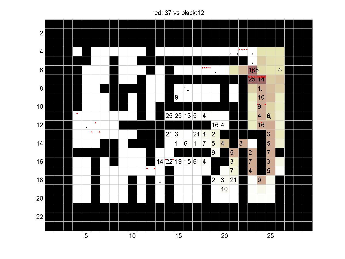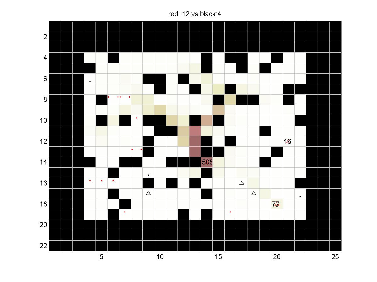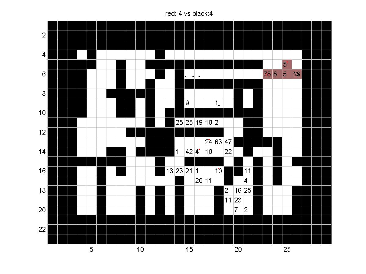 Board: 6 This board is particularly tricky because the goals of the two ants armies are nearly aligned. Also, there are a couple of dead ends that many ants got stuck in.