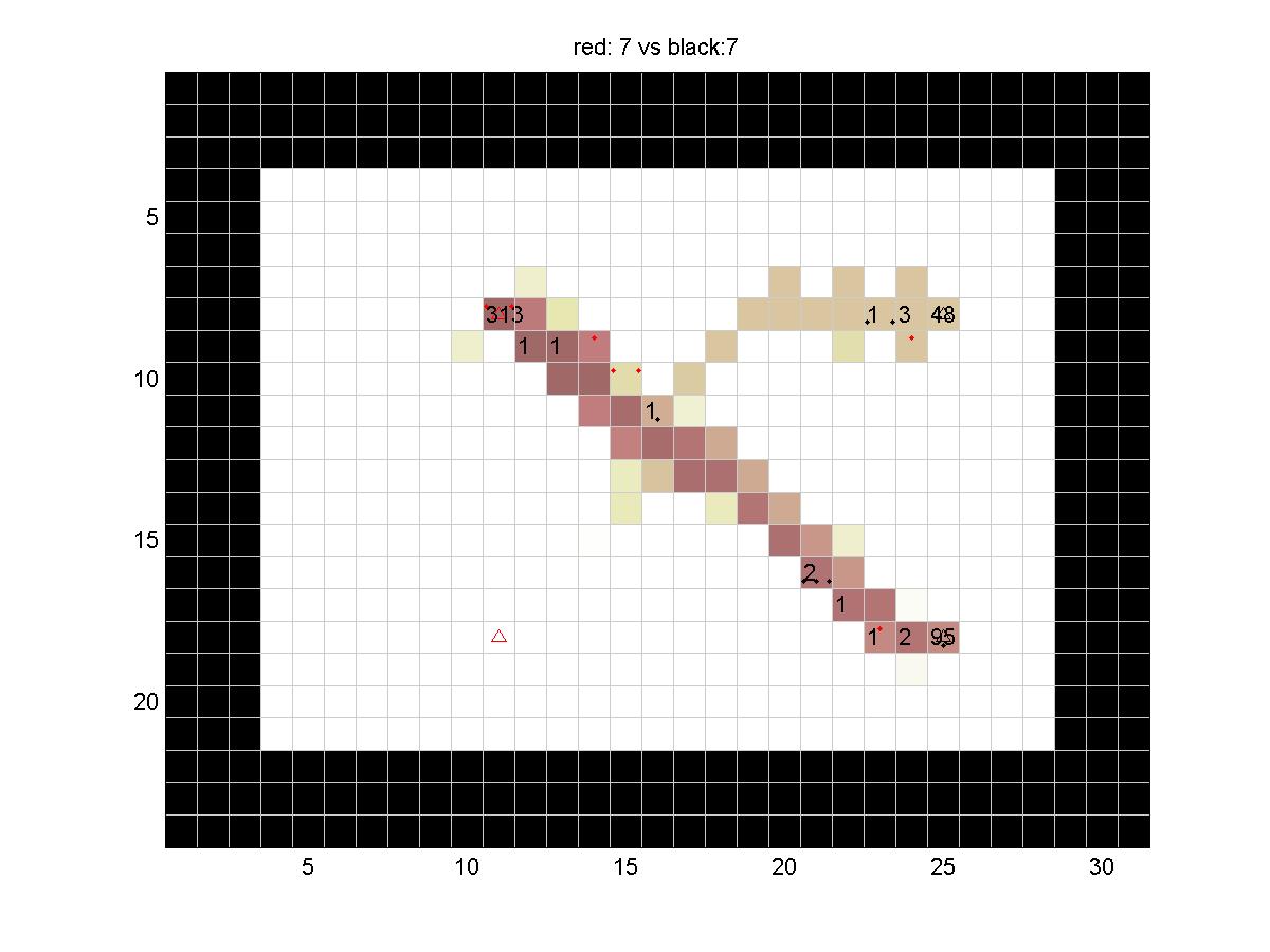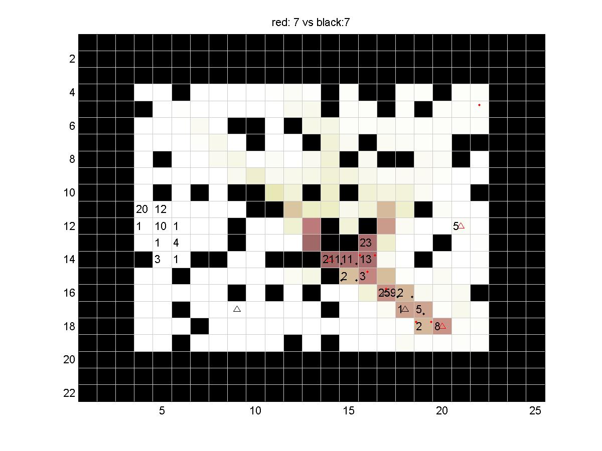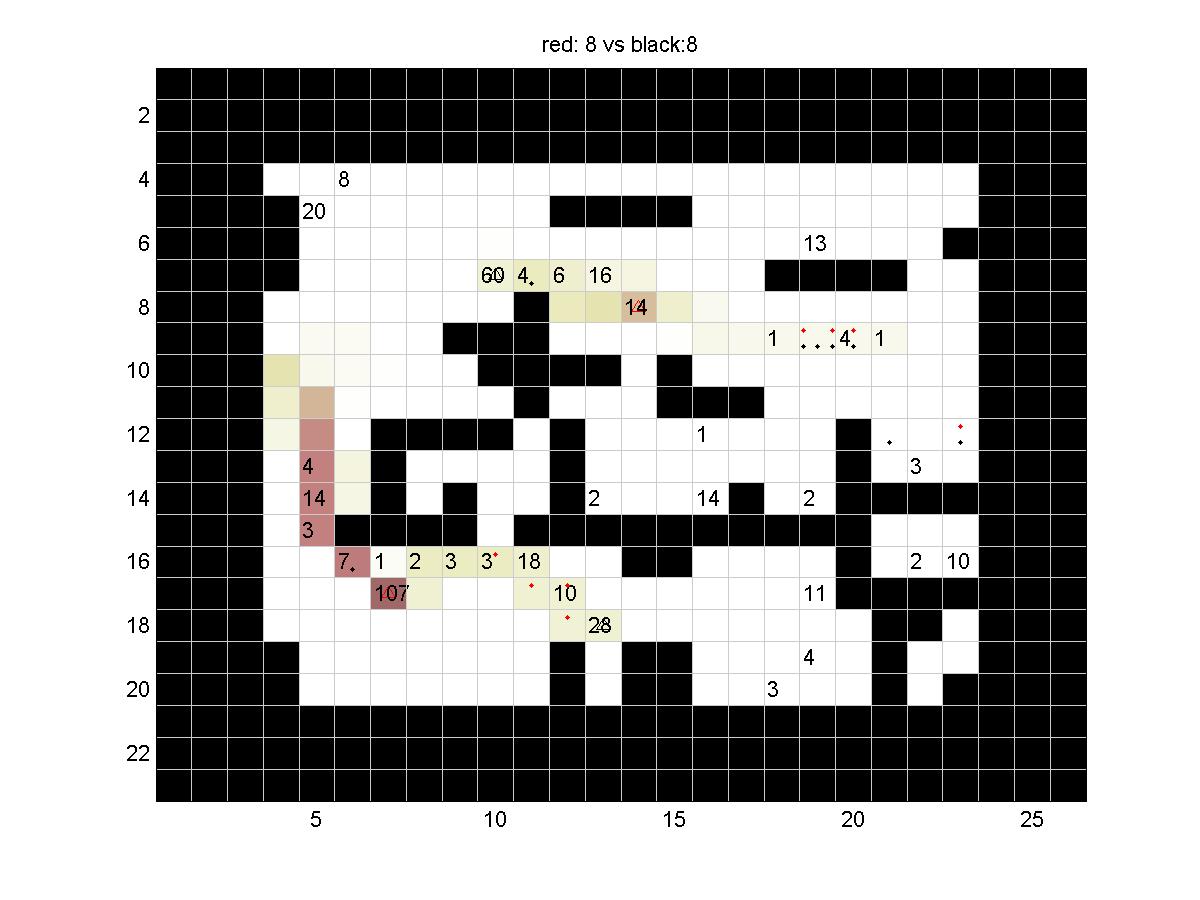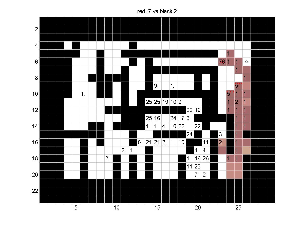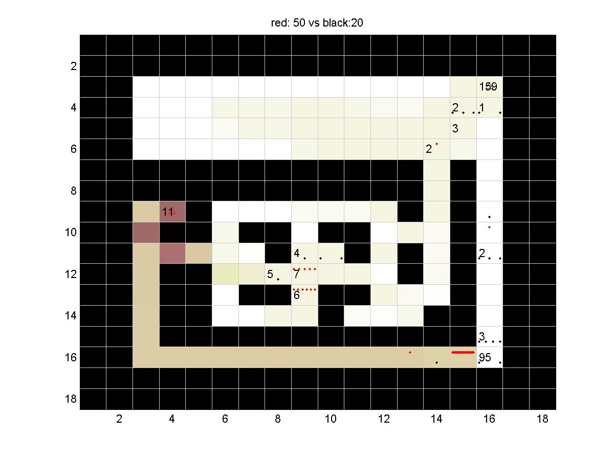 Board: 6 This board is particularly tricky because the goals of the two ants armies are nearly aligned. Also, there are a couple of dead ends that many ants got stuck in.