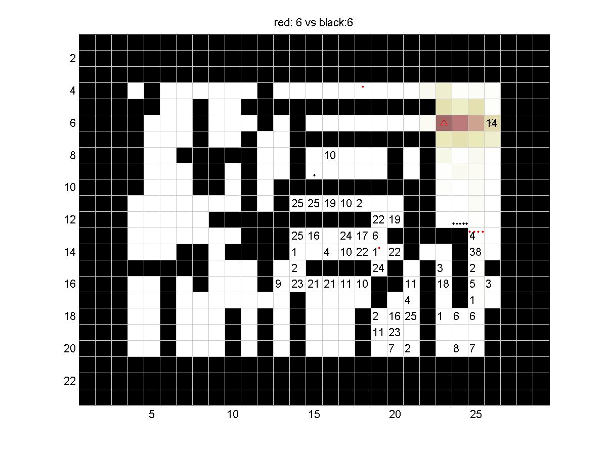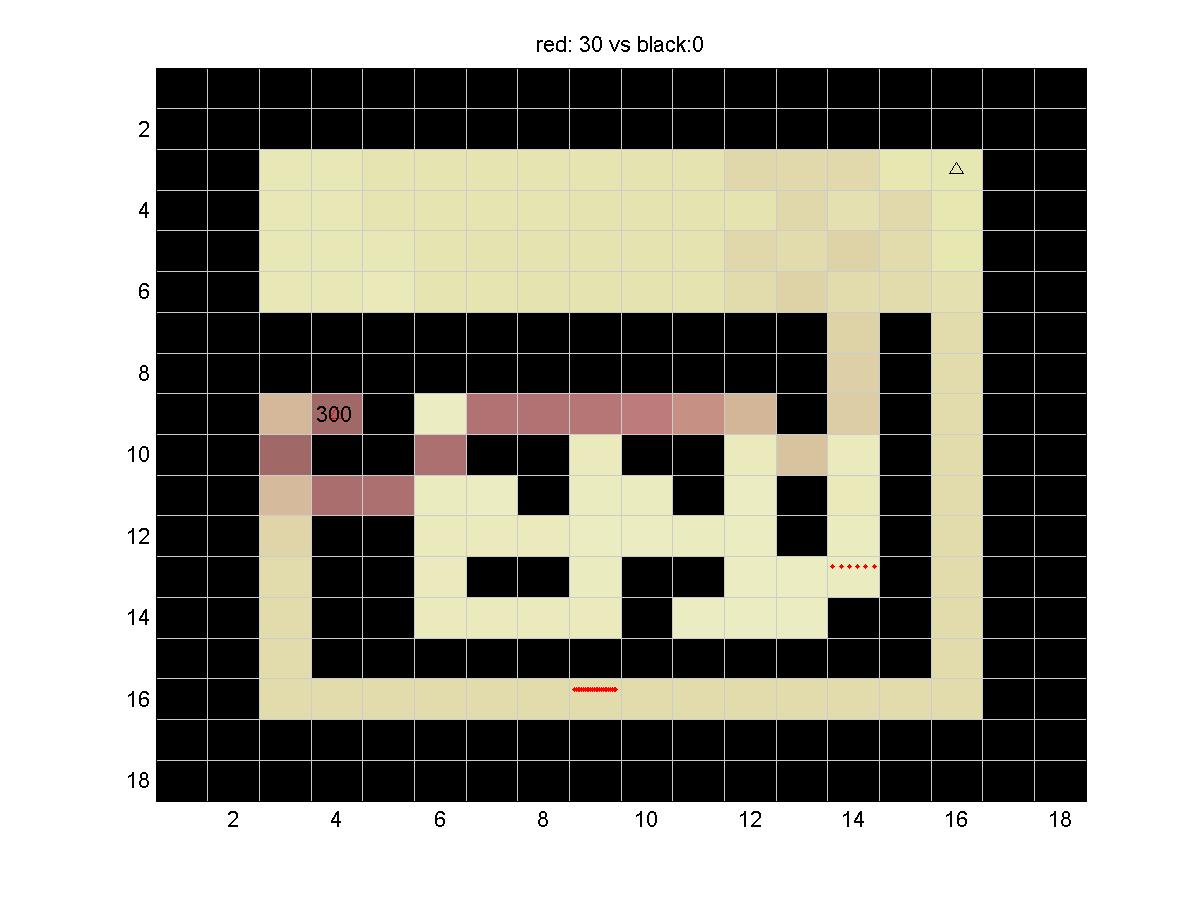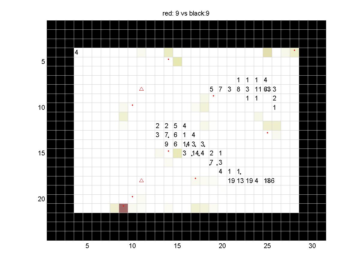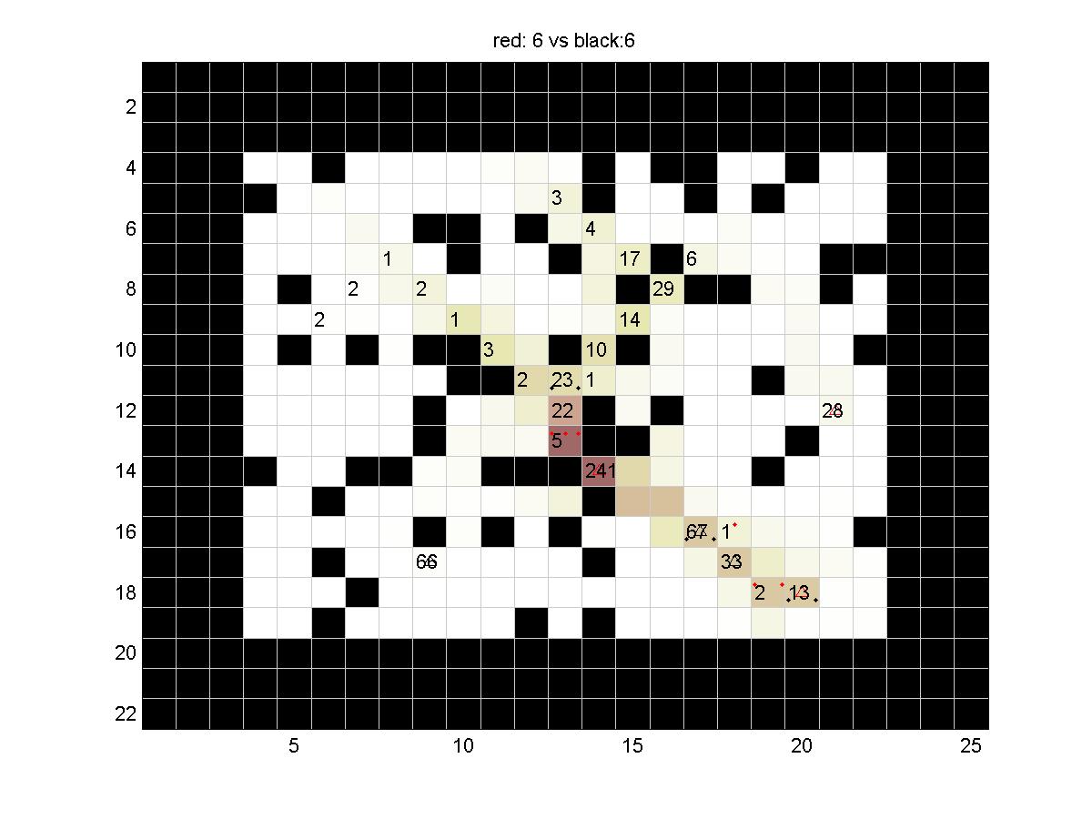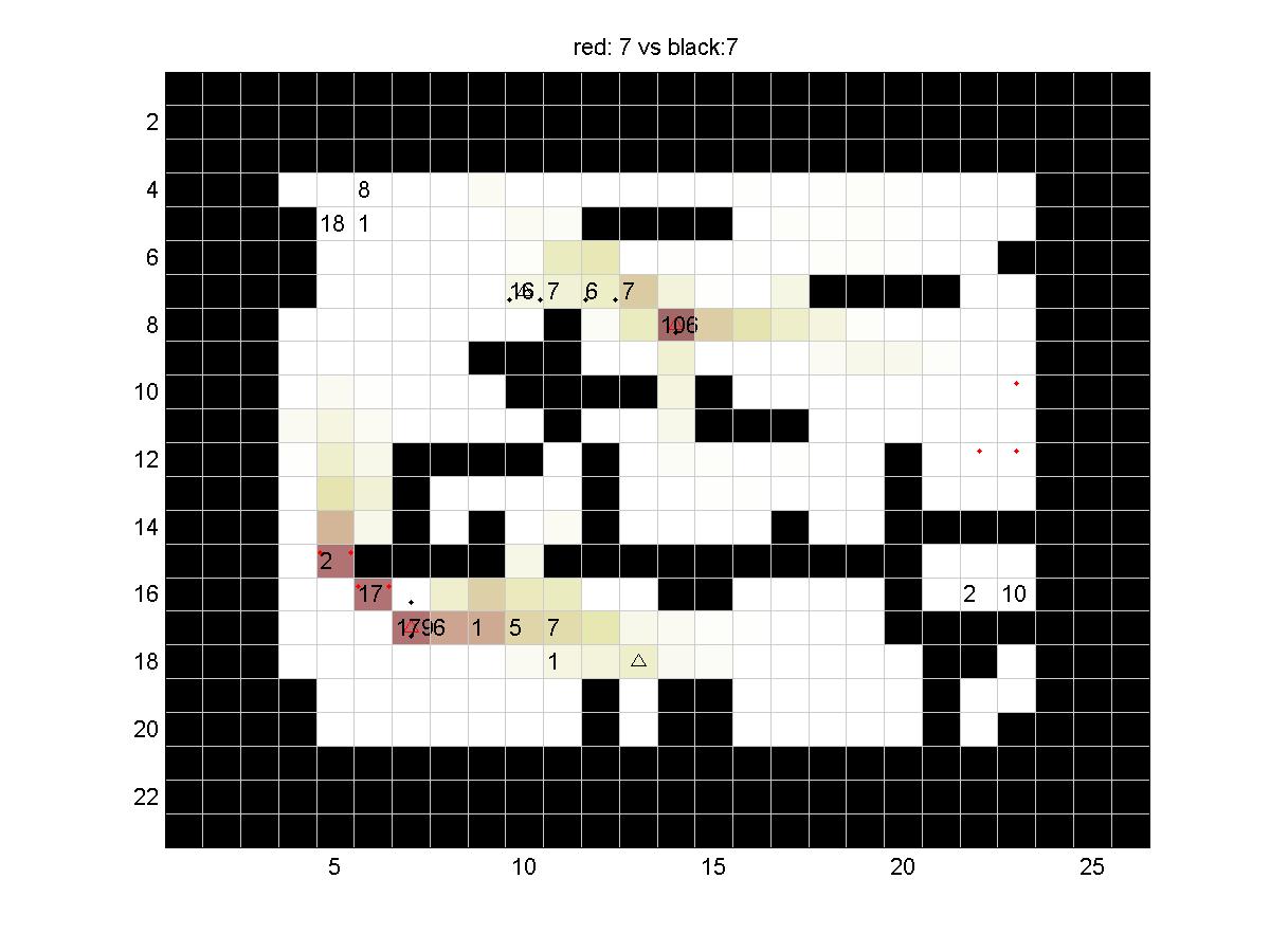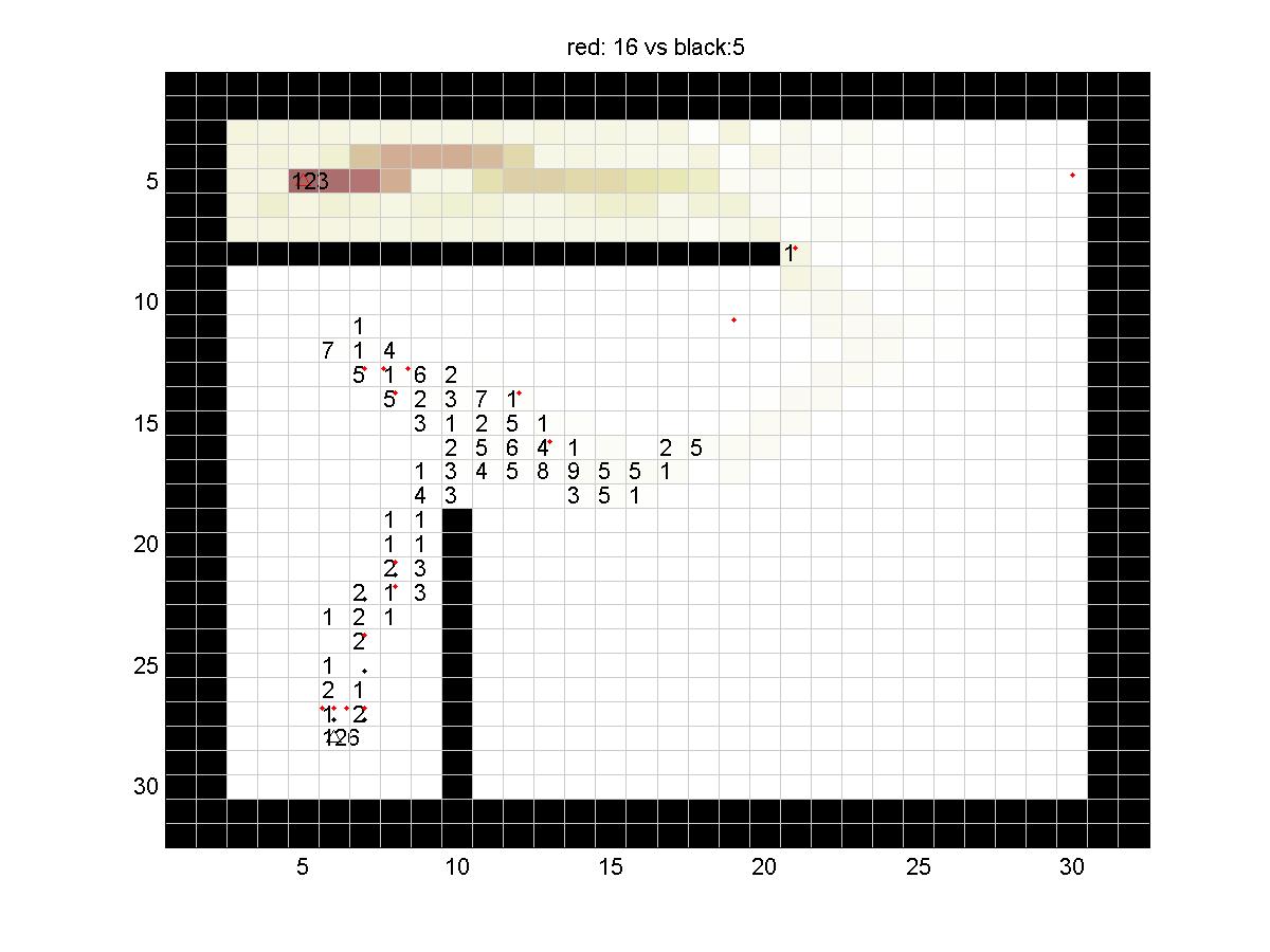 Board: 6 This board is particularly tricky because the goals of the two ants armies are nearly aligned. Also, there are a couple of dead ends that many ants got stuck in.