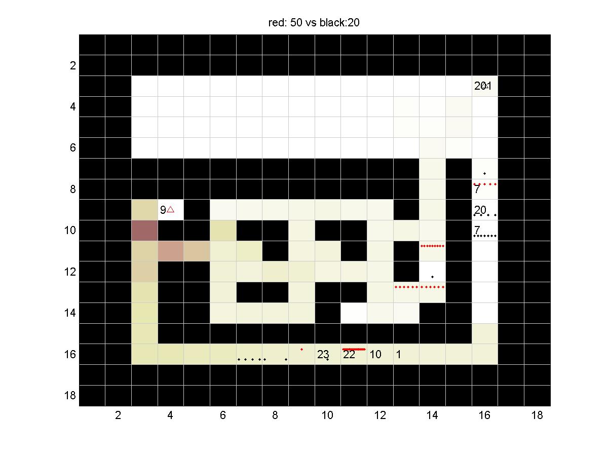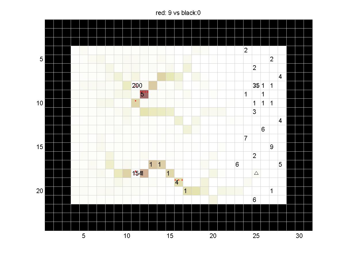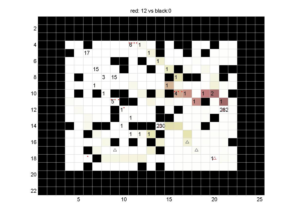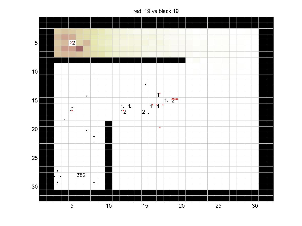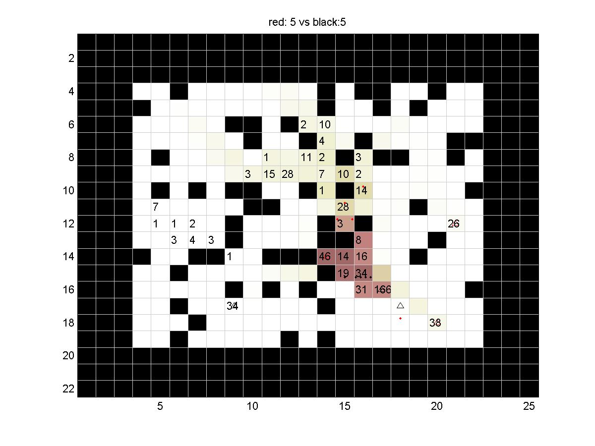 Board: 6 This board is particularly tricky because the goals of the two ants armies are nearly aligned. Also, there are a couple of dead ends that many ants got stuck in.