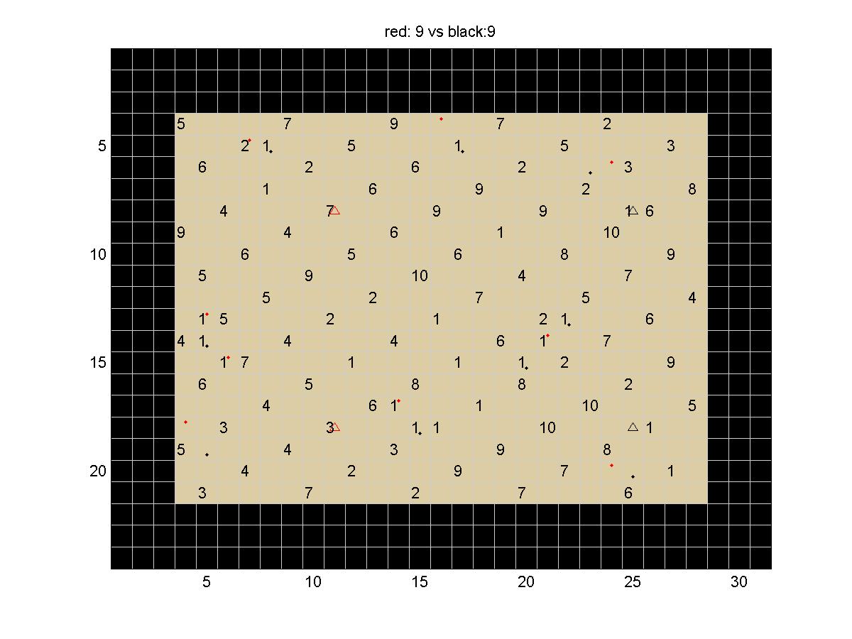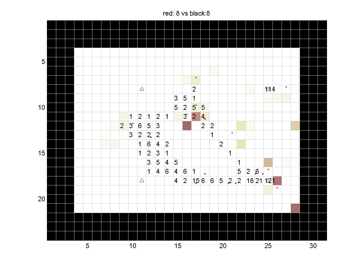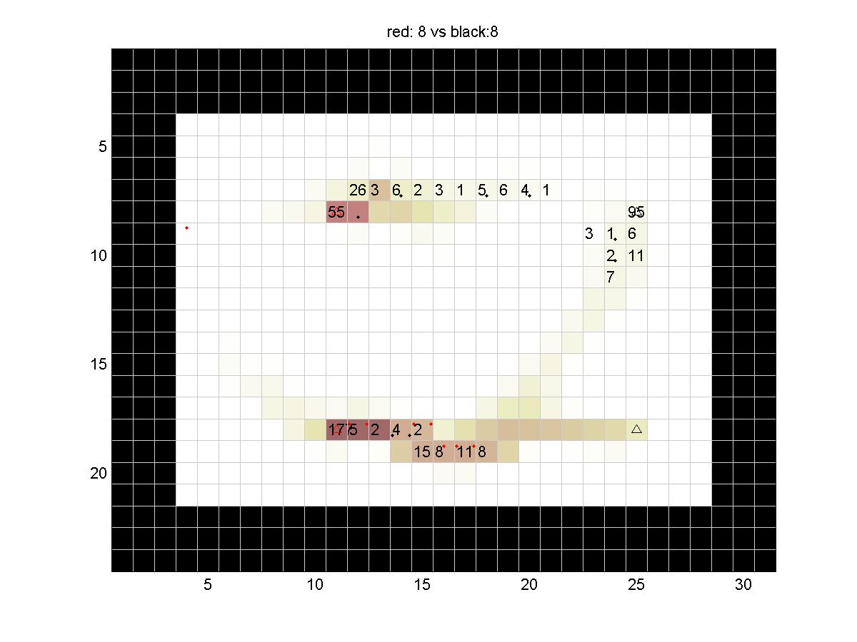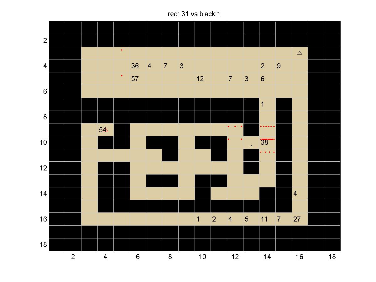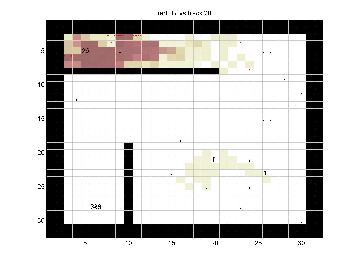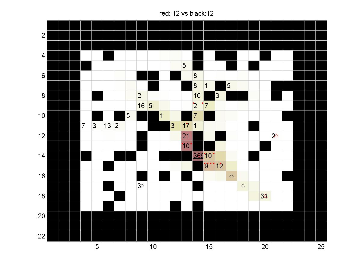 Board: 6 This board is particularly tricky because the goals of the two ants armies are nearly aligned. Also, there are a couple of dead ends that many ants got stuck in.