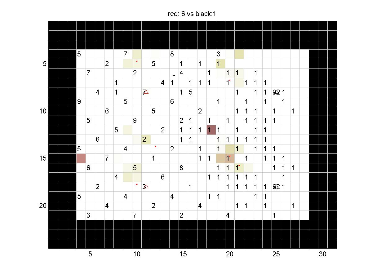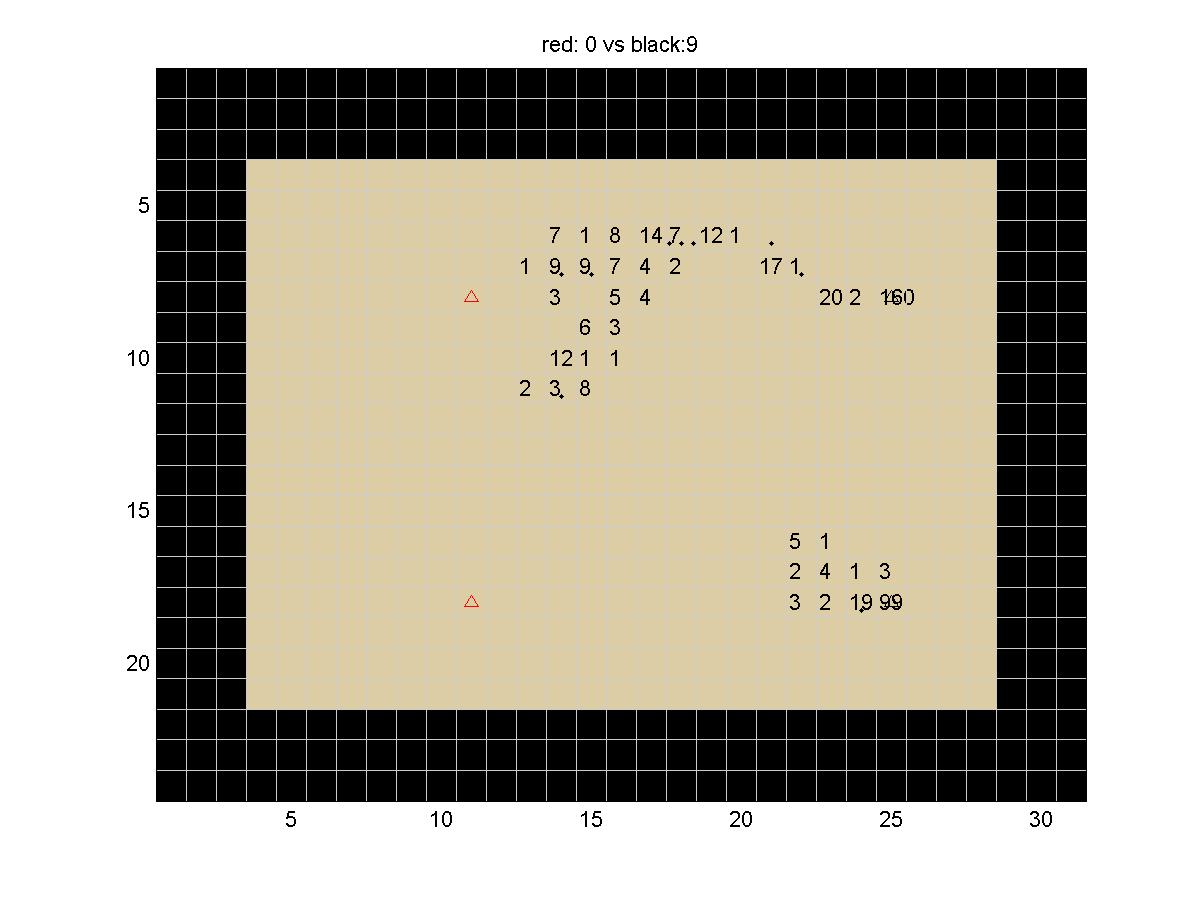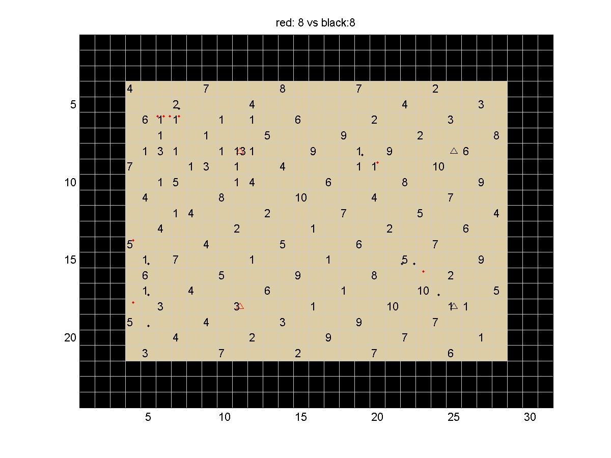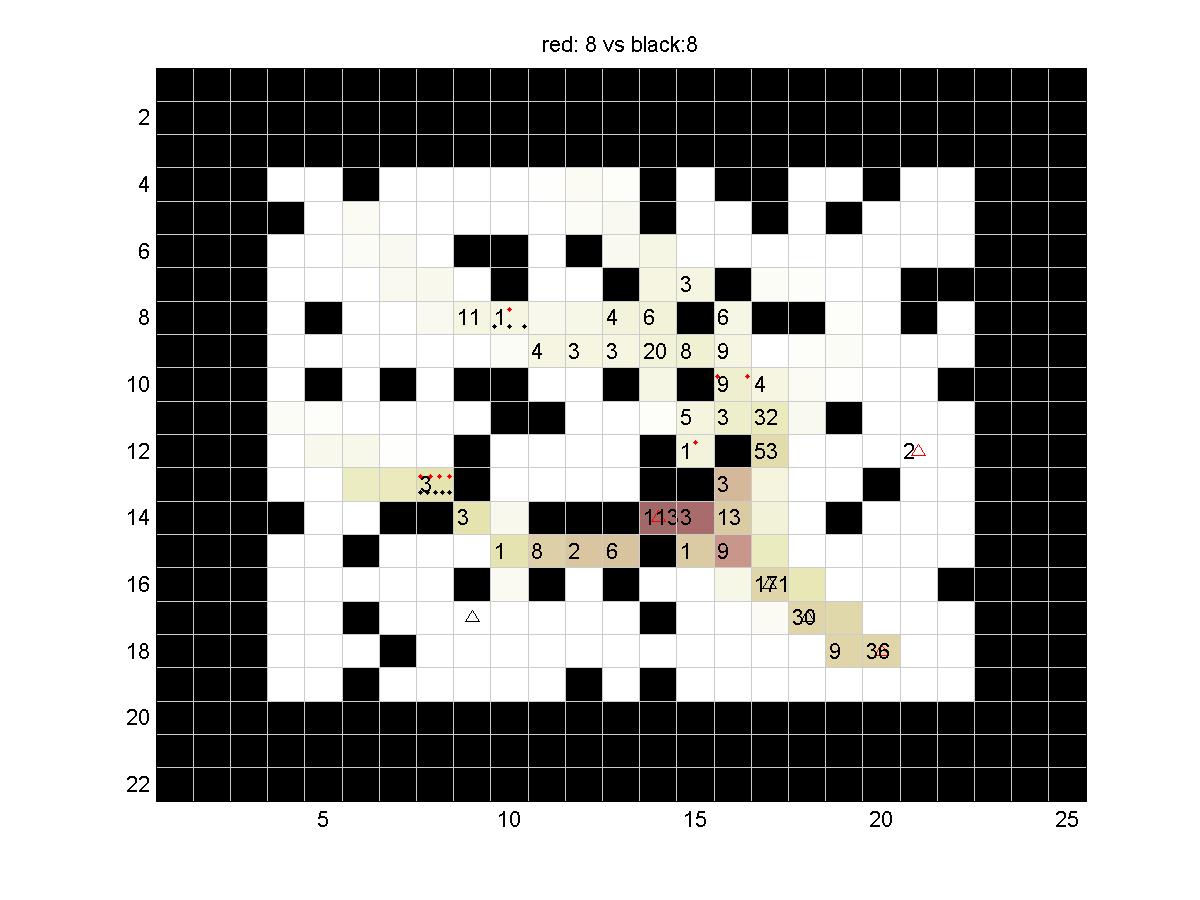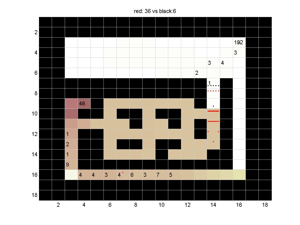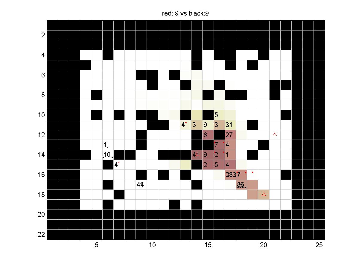 Board: 6 This board is particularly tricky because the goals of the two ants armies are nearly aligned. Also, there are a couple of dead ends that many ants got stuck in.