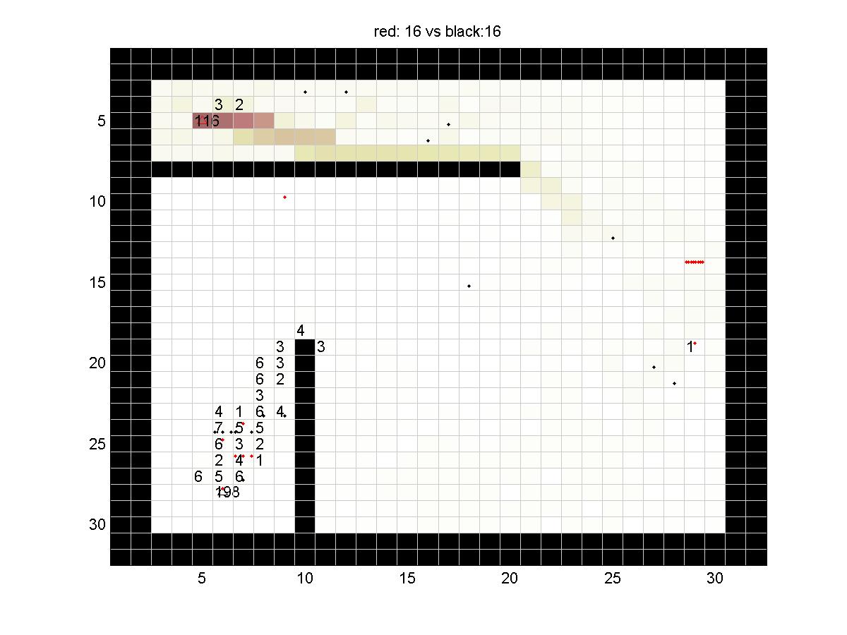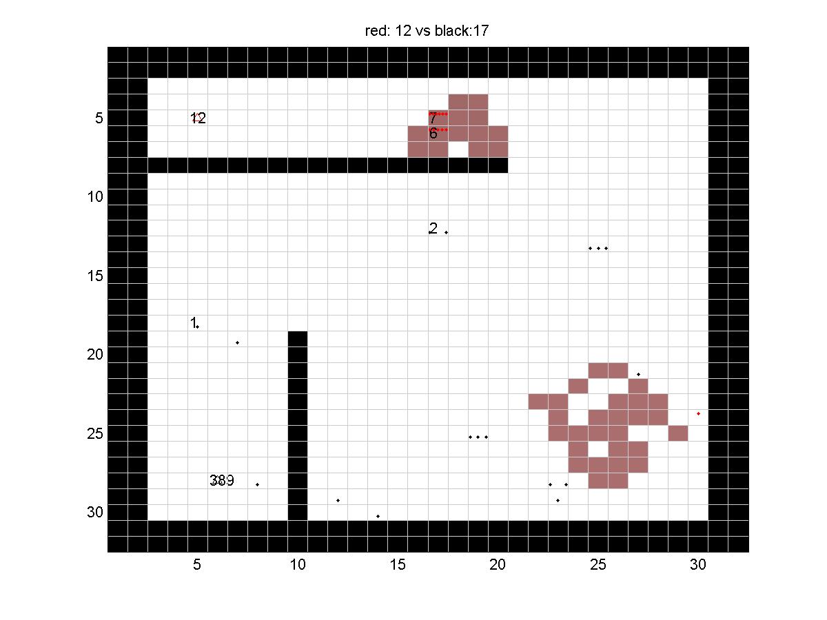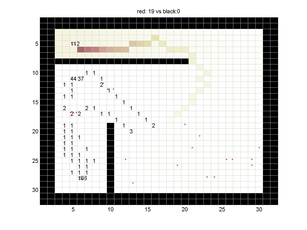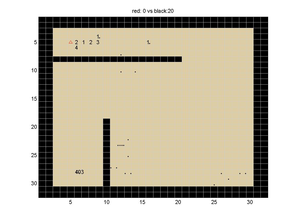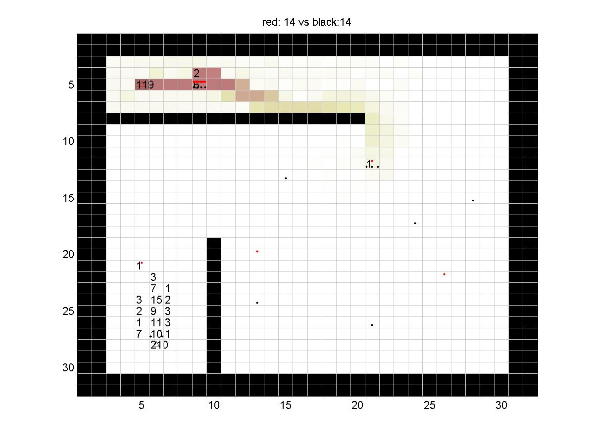 Board: 6 This board is particularly tricky because the goals of the two ants armies are nearly aligned. Also, there are a couple of dead ends that many ants got stuck in.