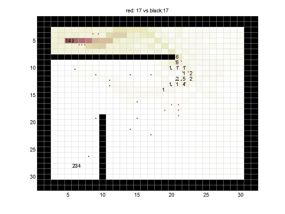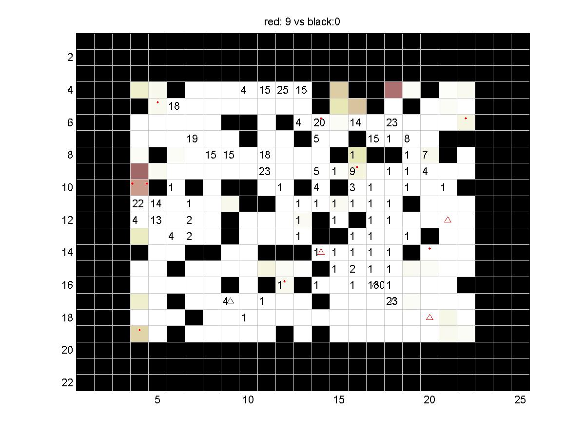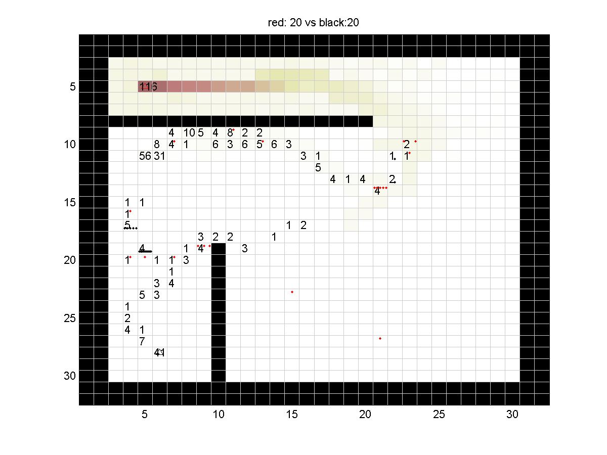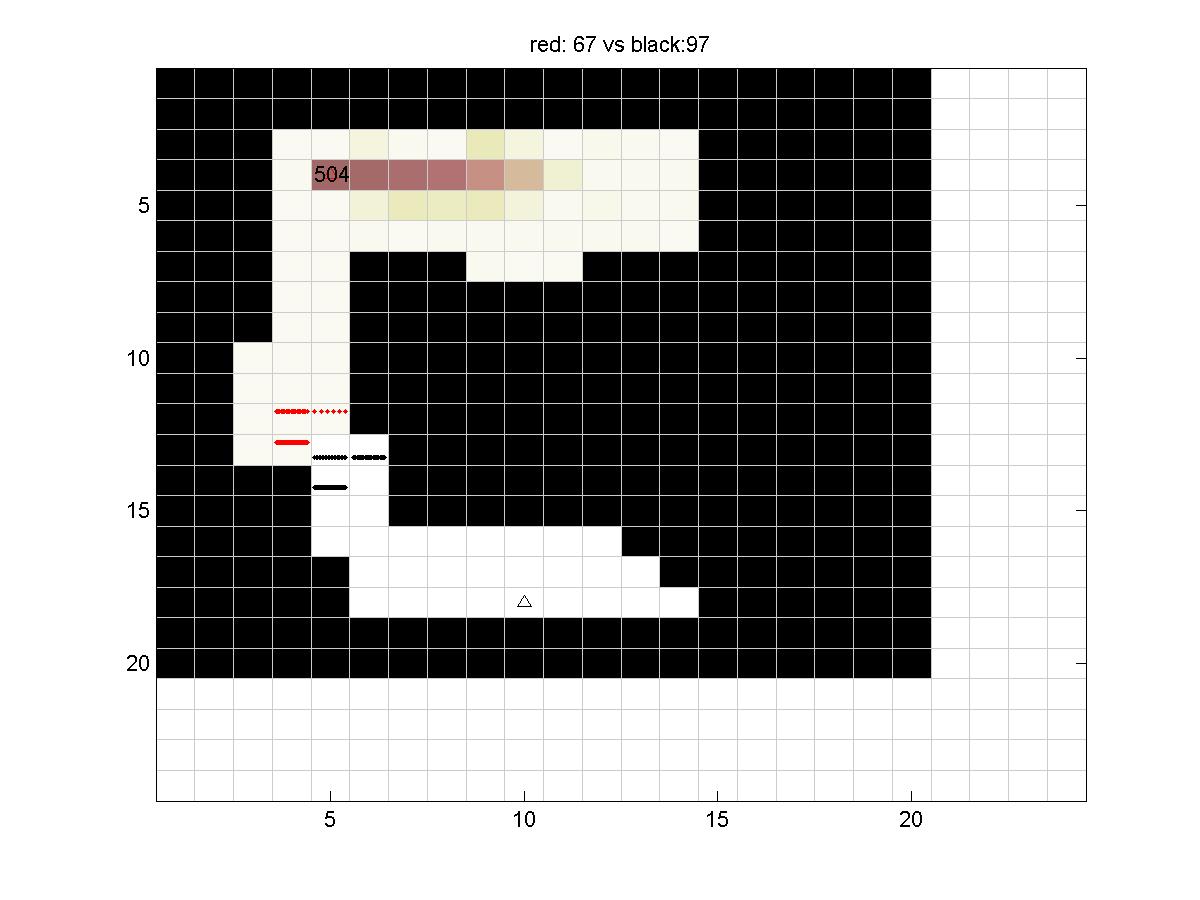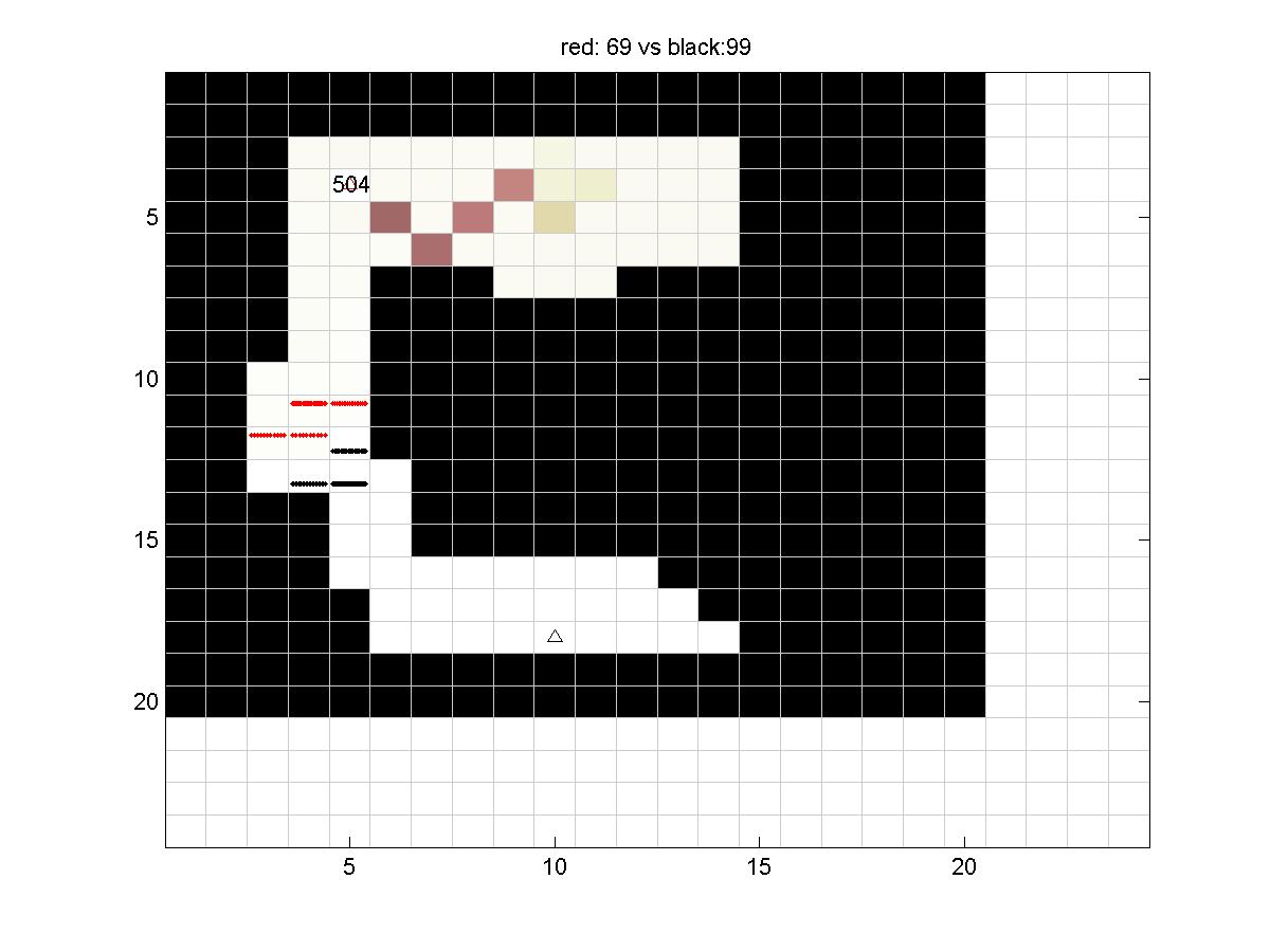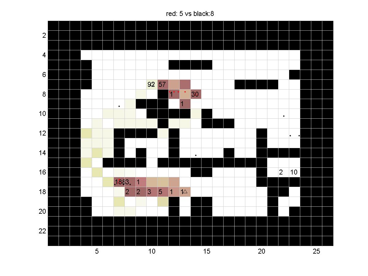 Board: 6 This board is particularly tricky because the goals of the two ants armies are nearly aligned. Also, there are a couple of dead ends that many ants got stuck in.