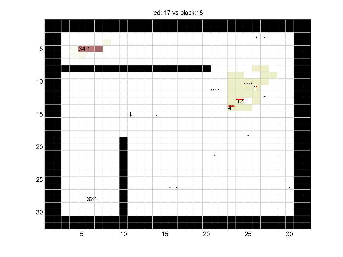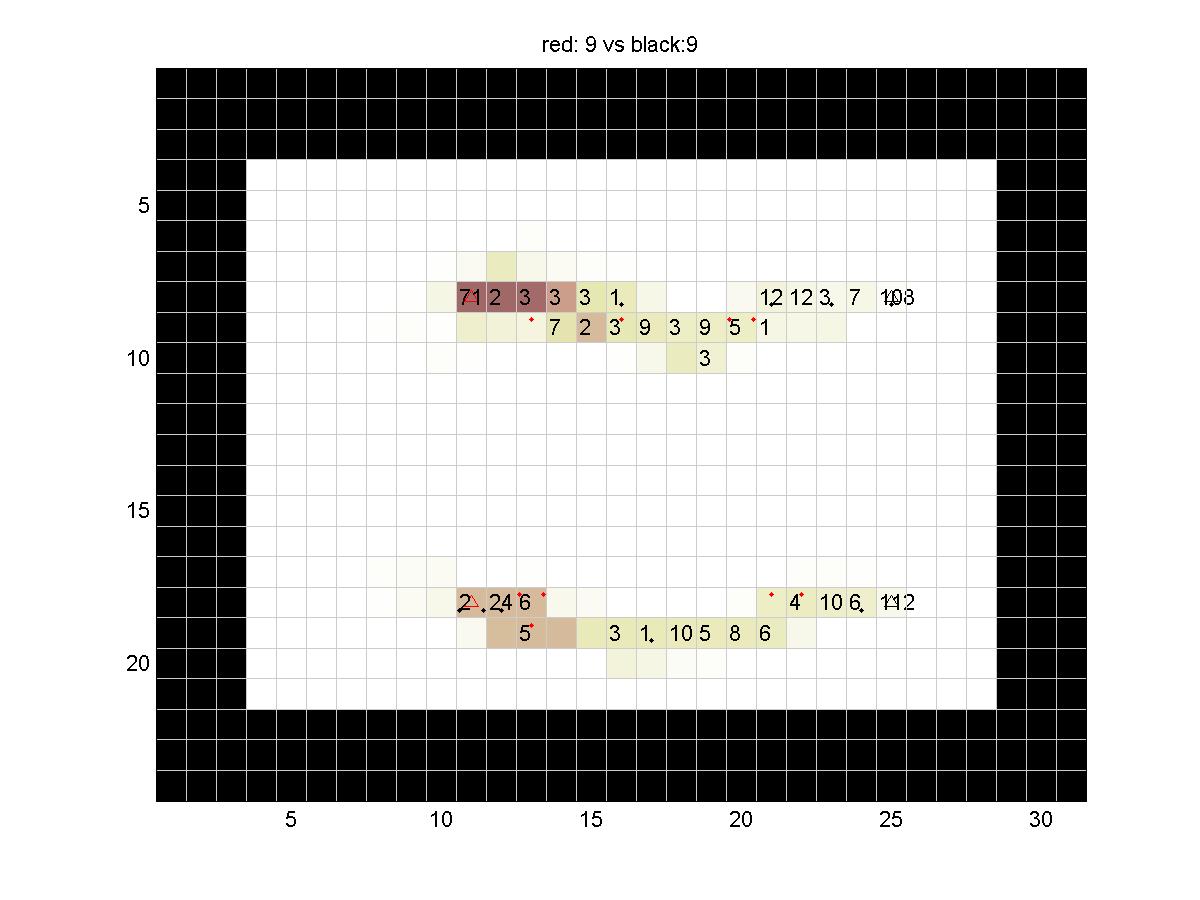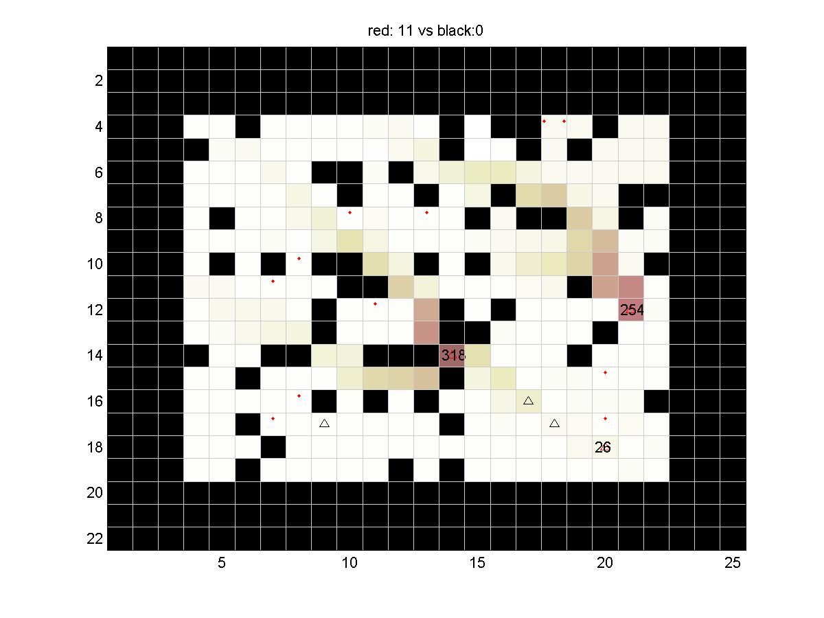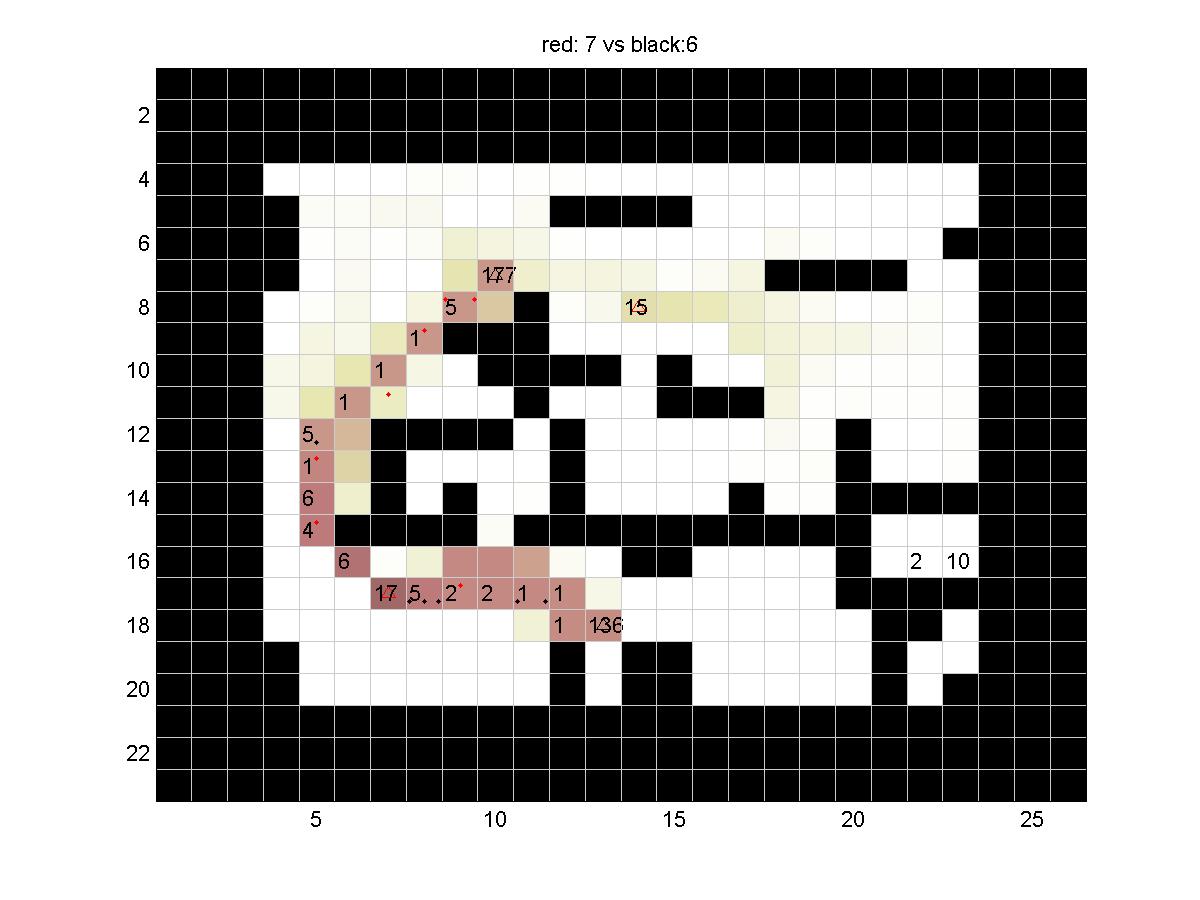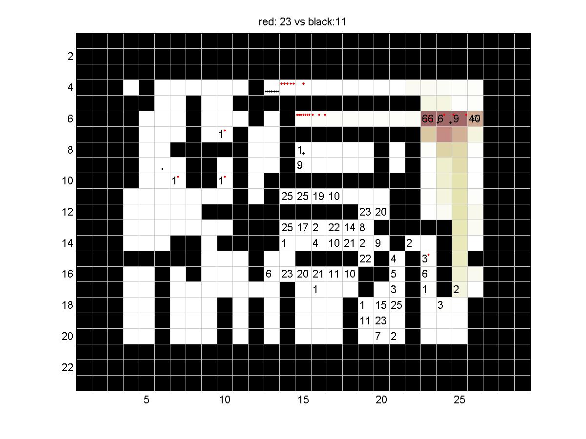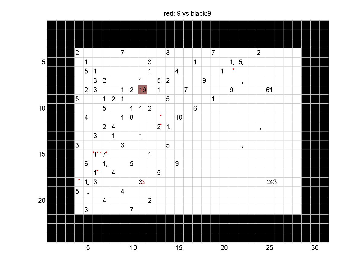 Board: 6 This board is particularly tricky because the goals of the two ants armies are nearly aligned. Also, there are a couple of dead ends that many ants got stuck in.