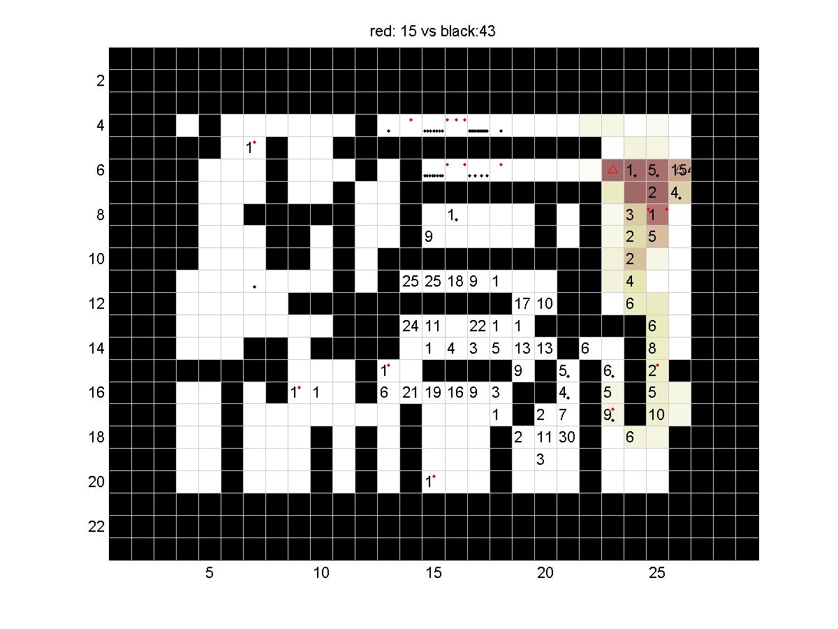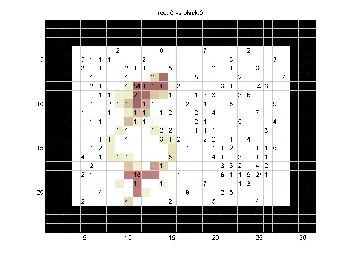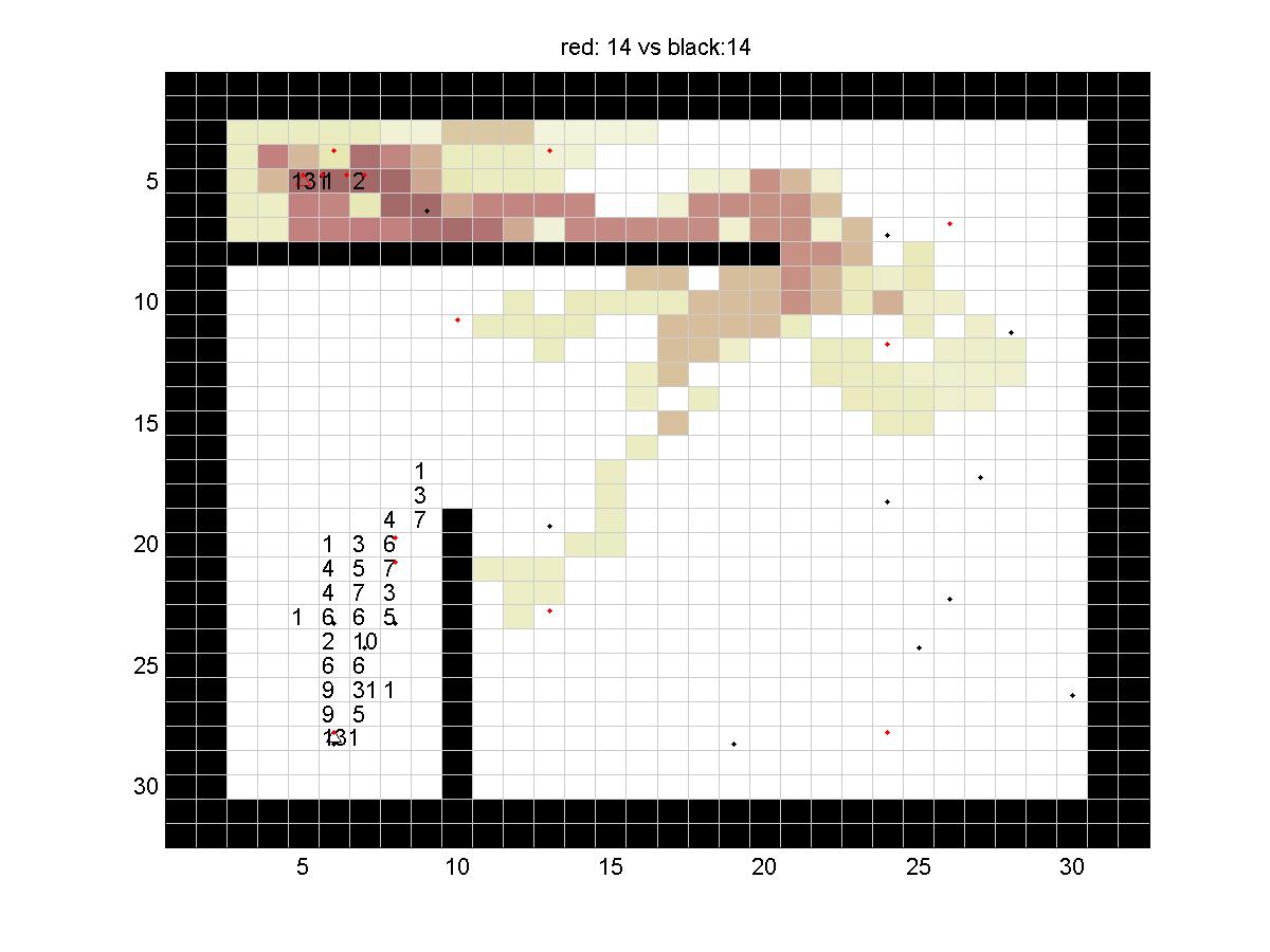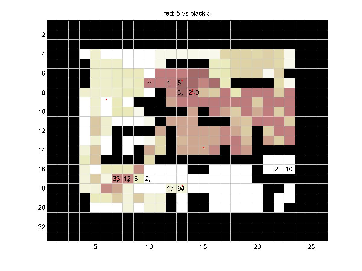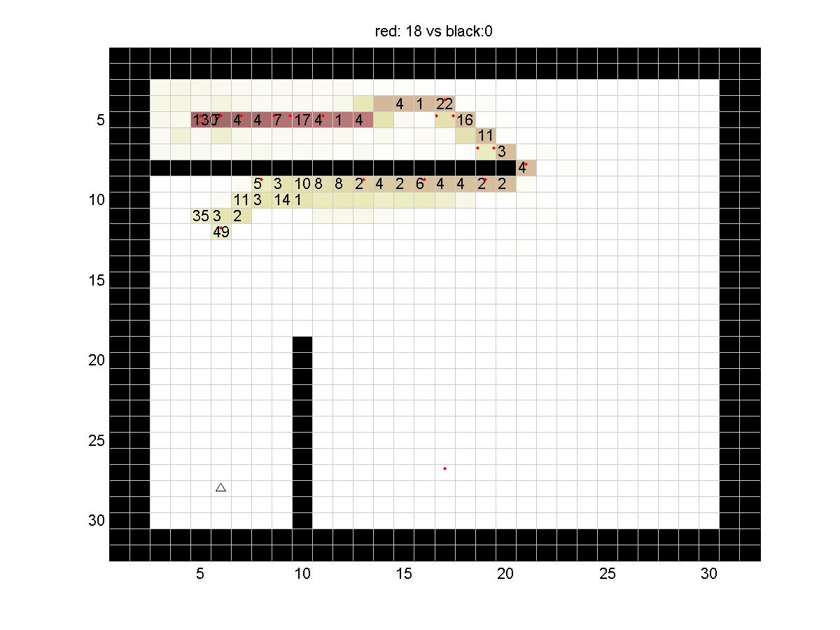 Board: 6 This board is particularly tricky because the goals of the two ants armies are nearly aligned. Also, there are a couple of dead ends that many ants got stuck in.