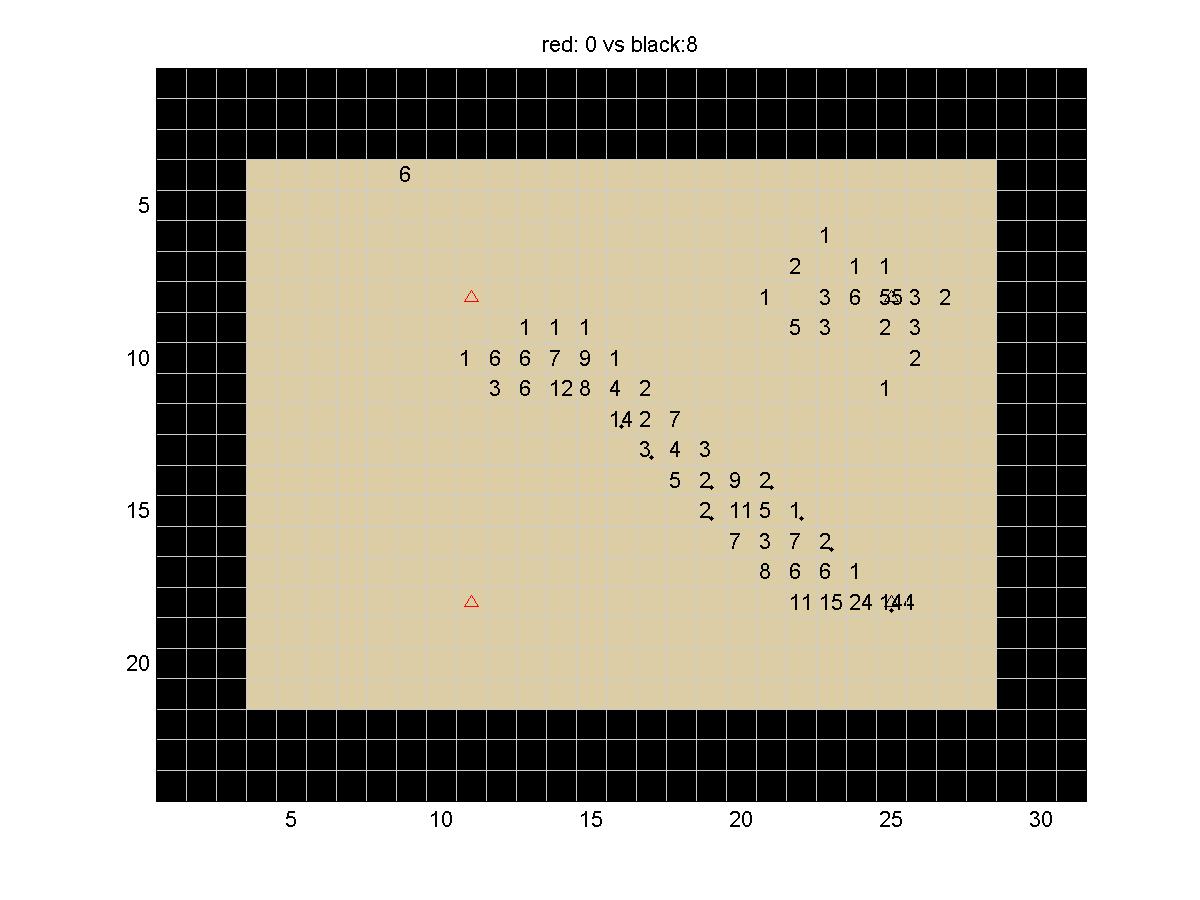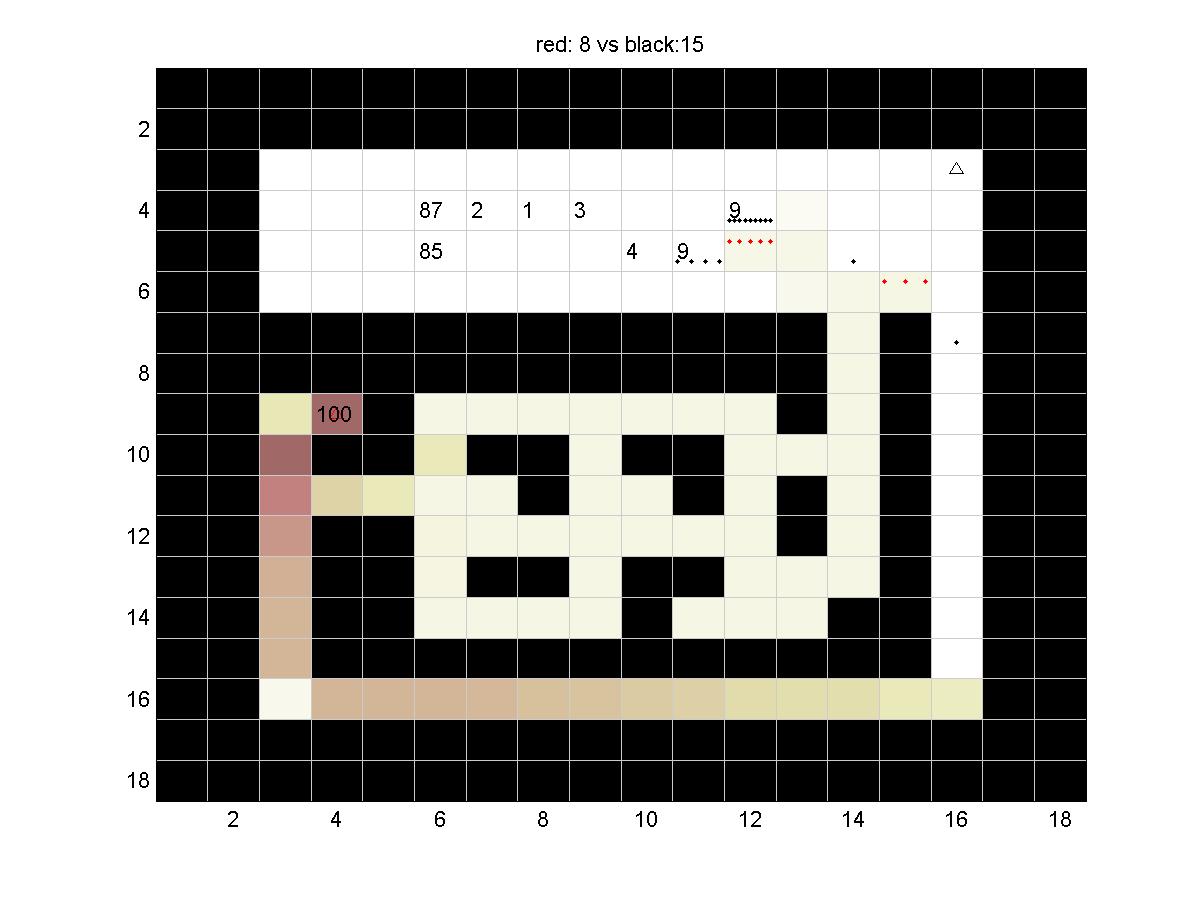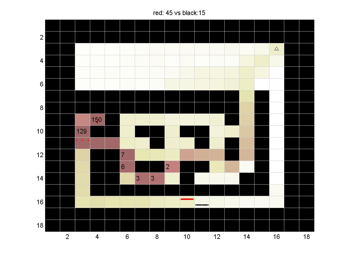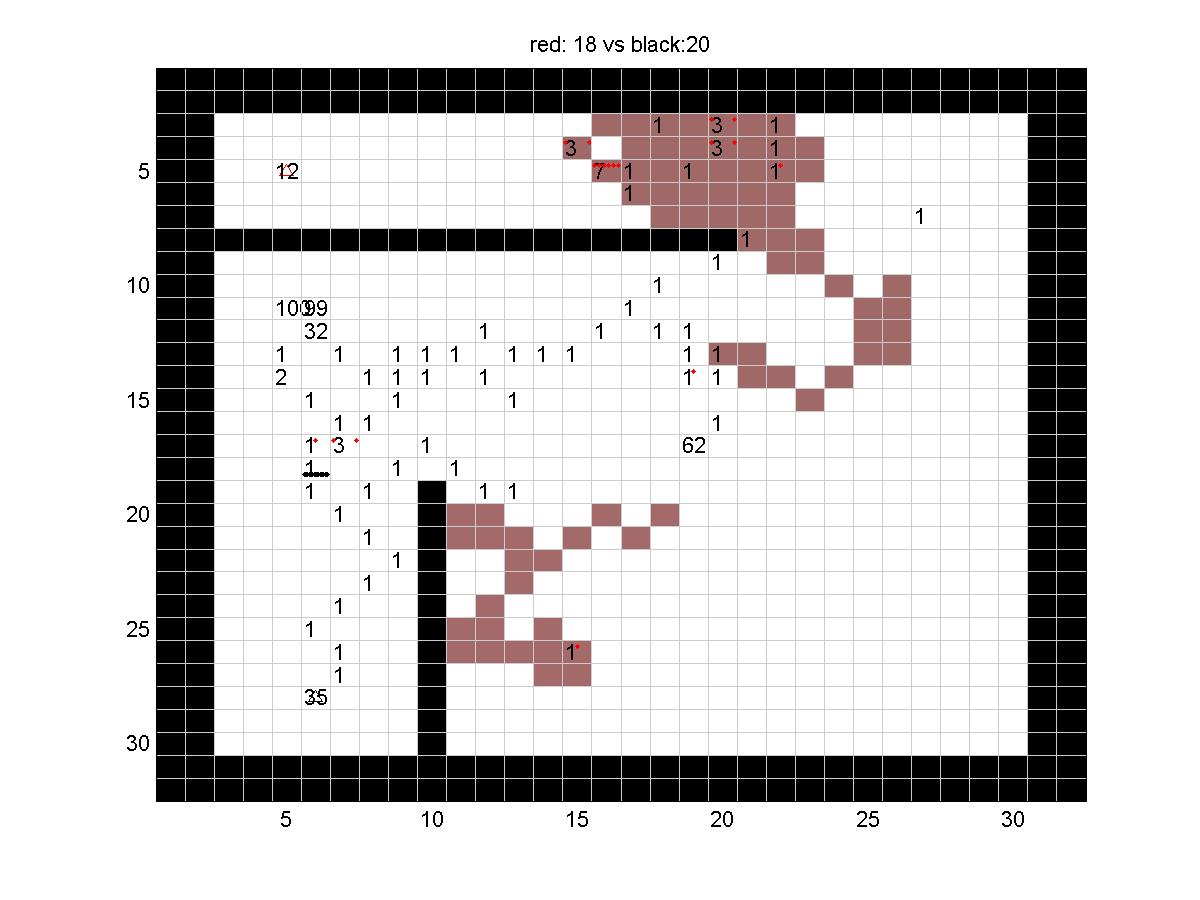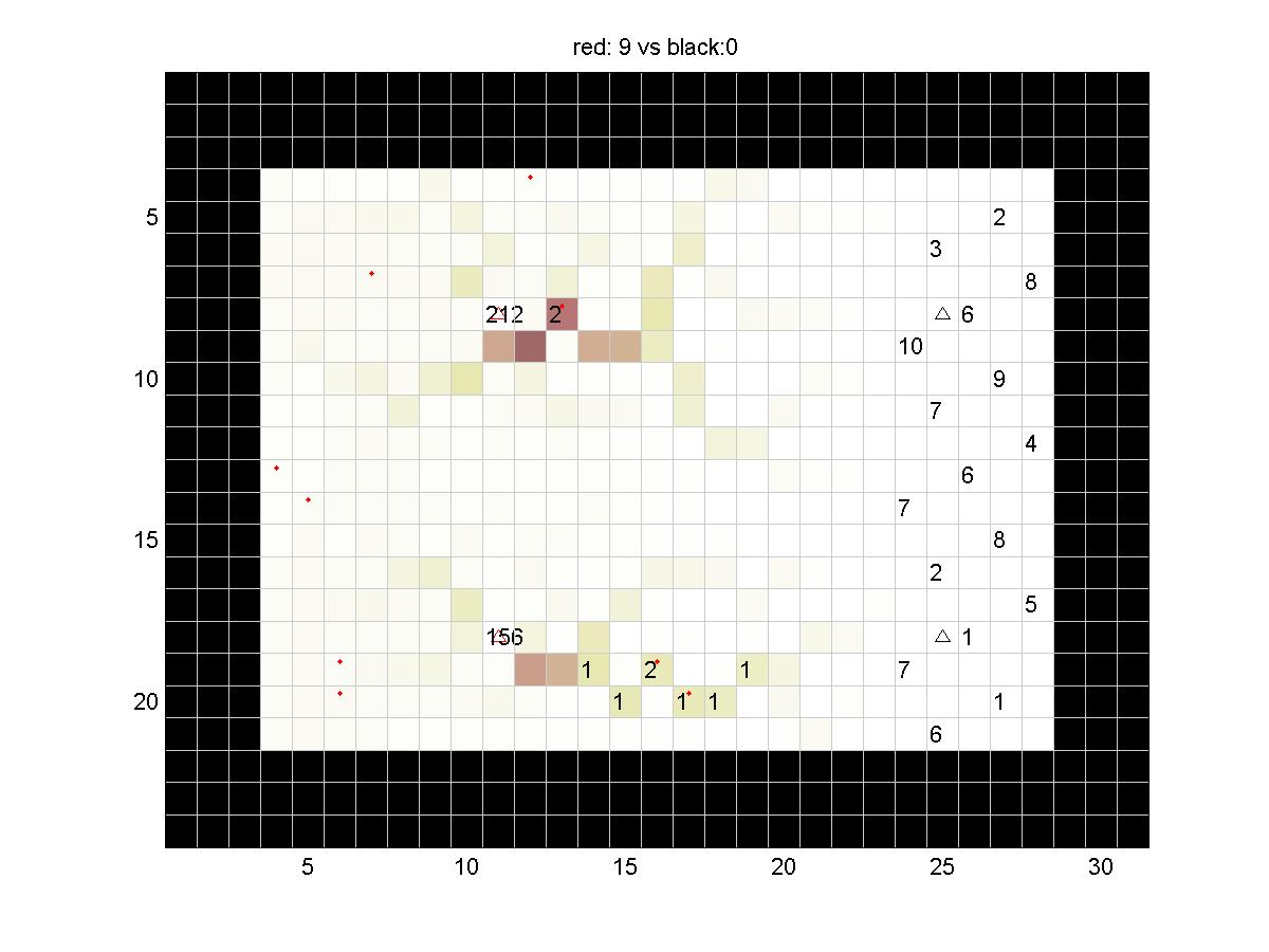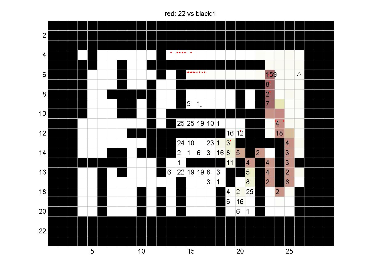 Board: 6 This board is particularly tricky because the goals of the two ants armies are nearly aligned. Also, there are a couple of dead ends that many ants got stuck in.