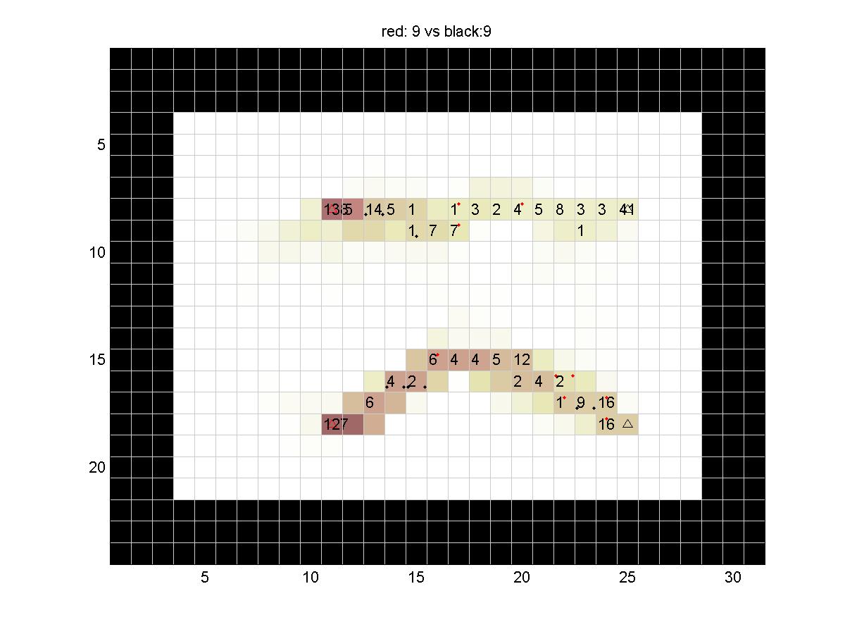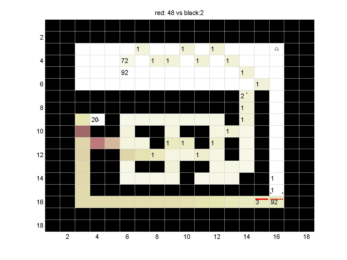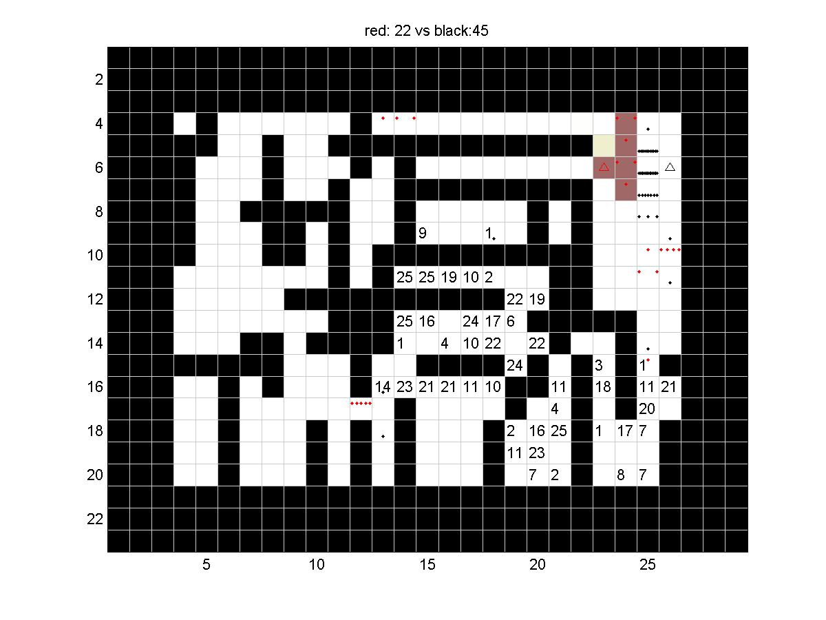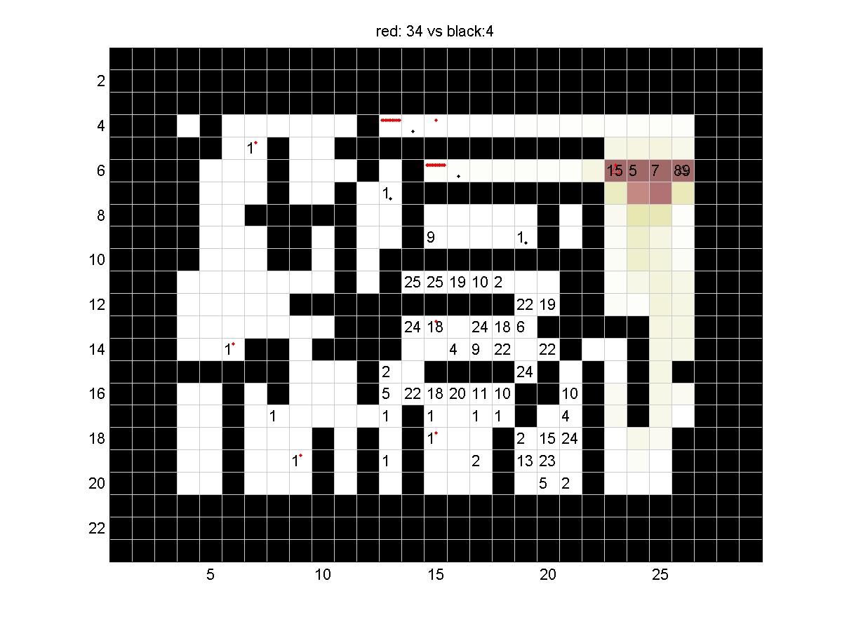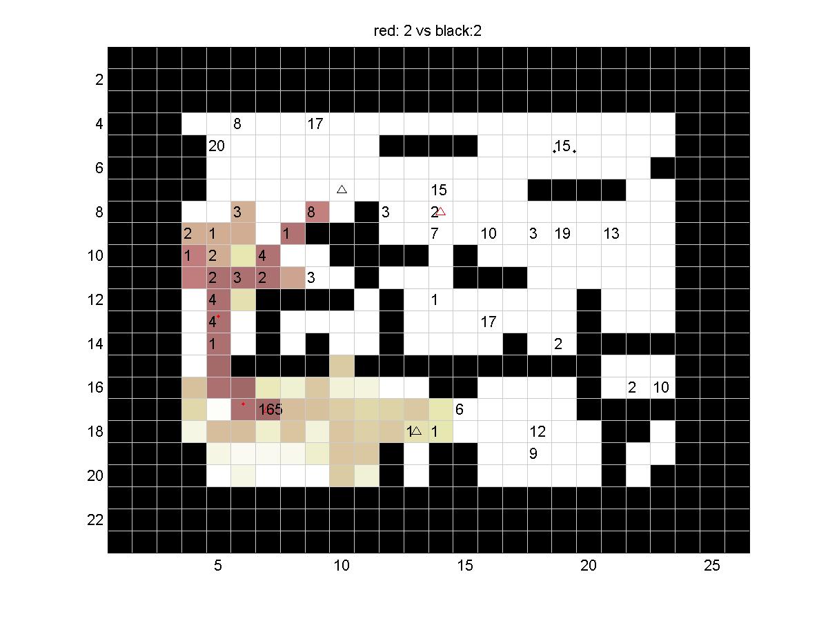 Board: 6 This board is particularly tricky because the goals of the two ants armies are nearly aligned. Also, there are a couple of dead ends that many ants got stuck in.