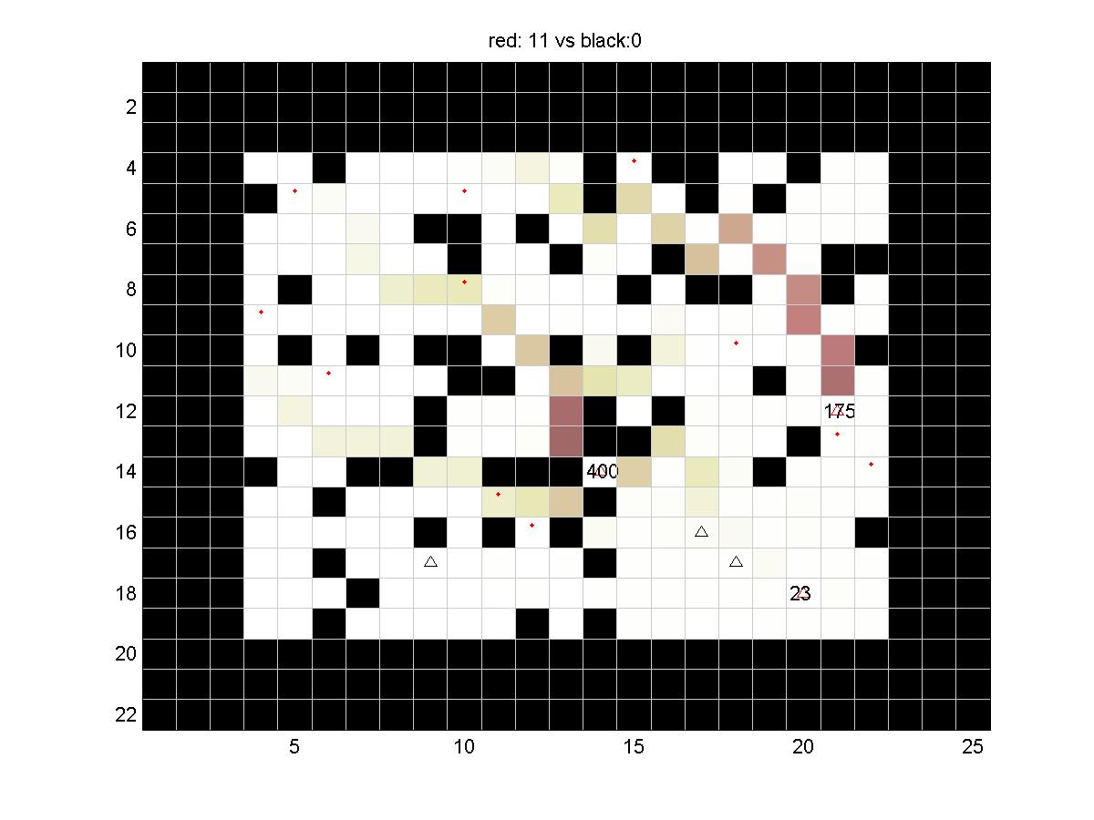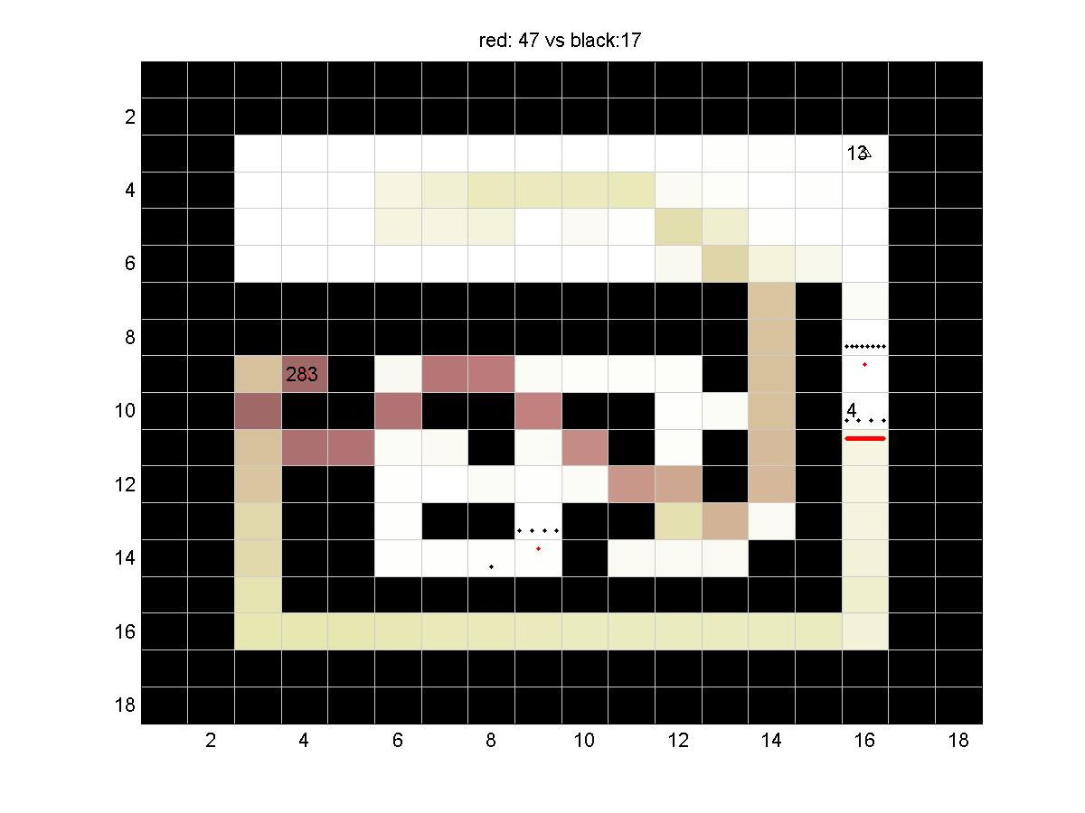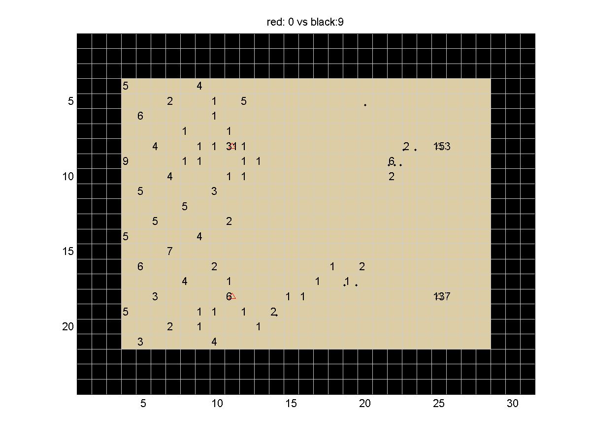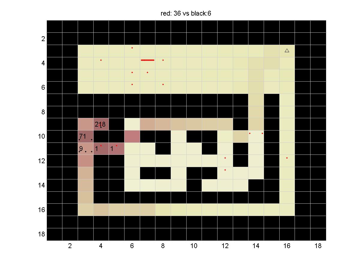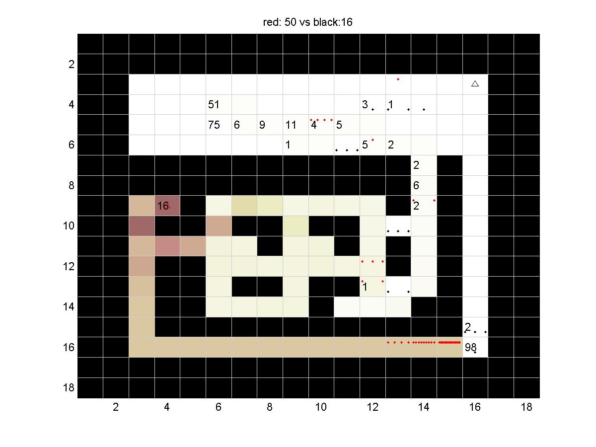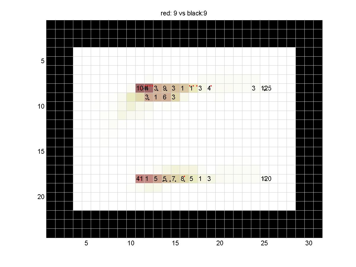 Board: 6 This board is particularly tricky because the goals of the two ants armies are nearly aligned. Also, there are a couple of dead ends that many ants got stuck in.
