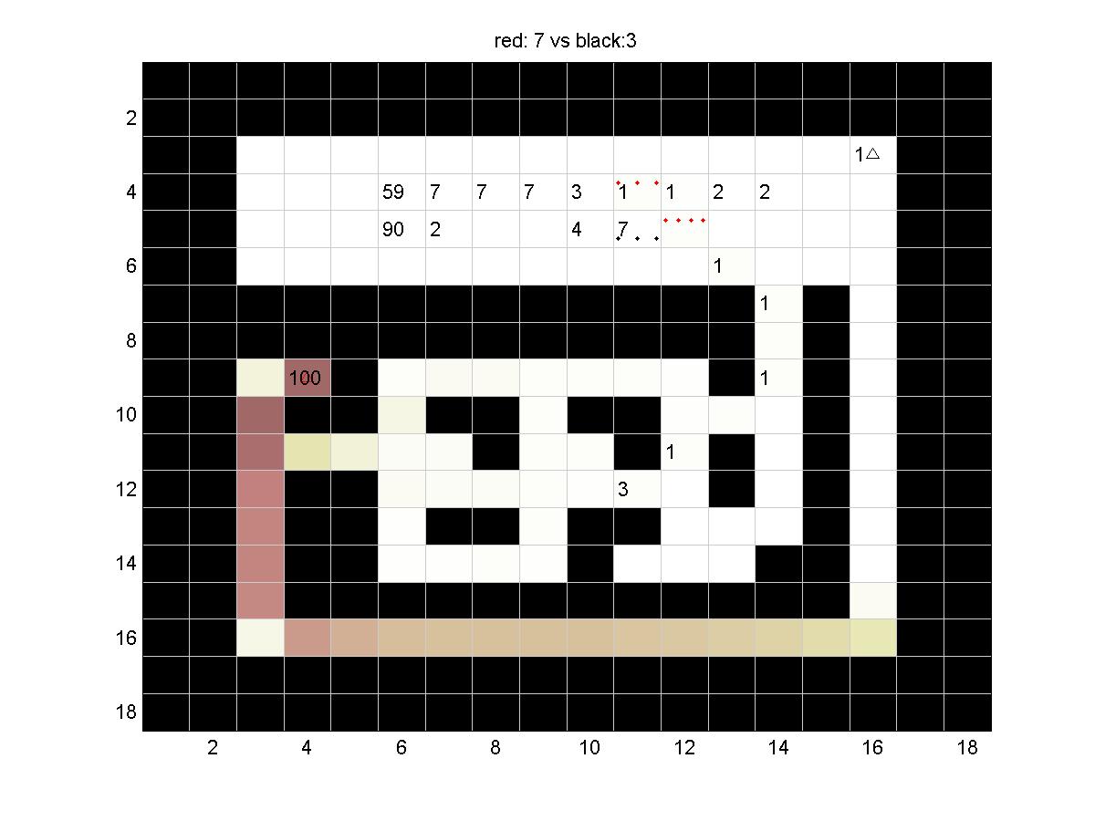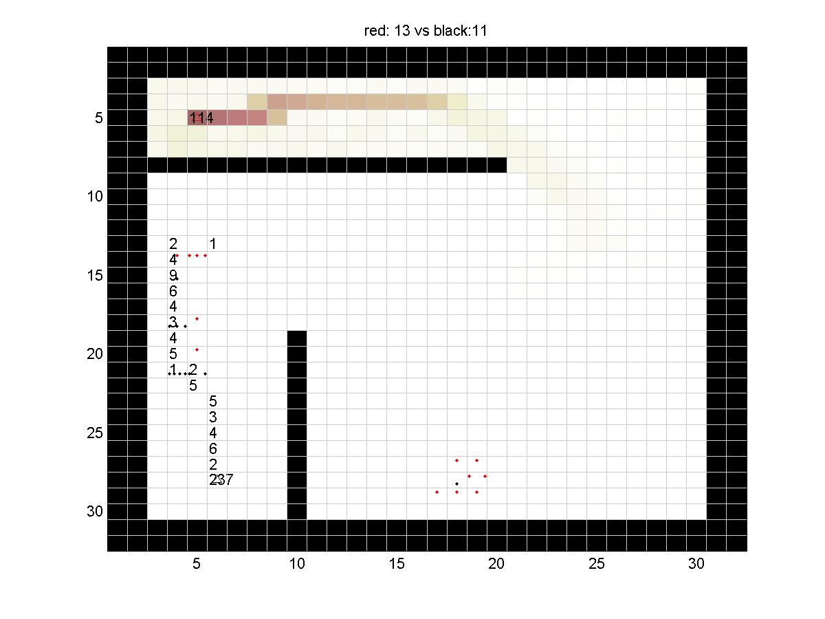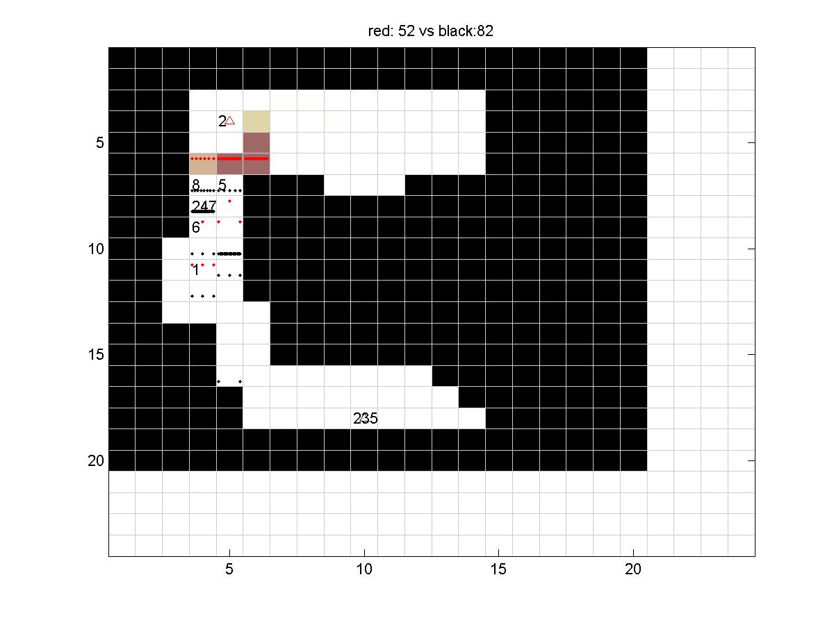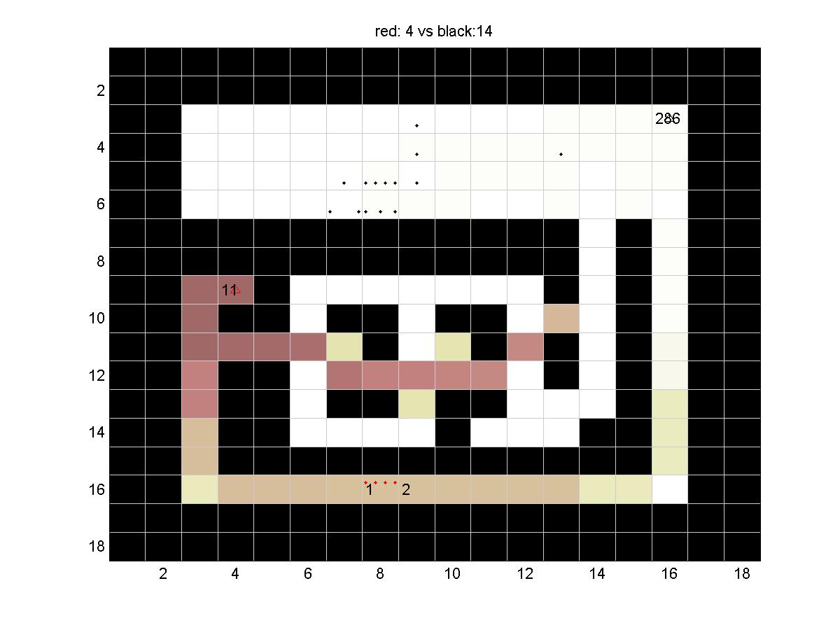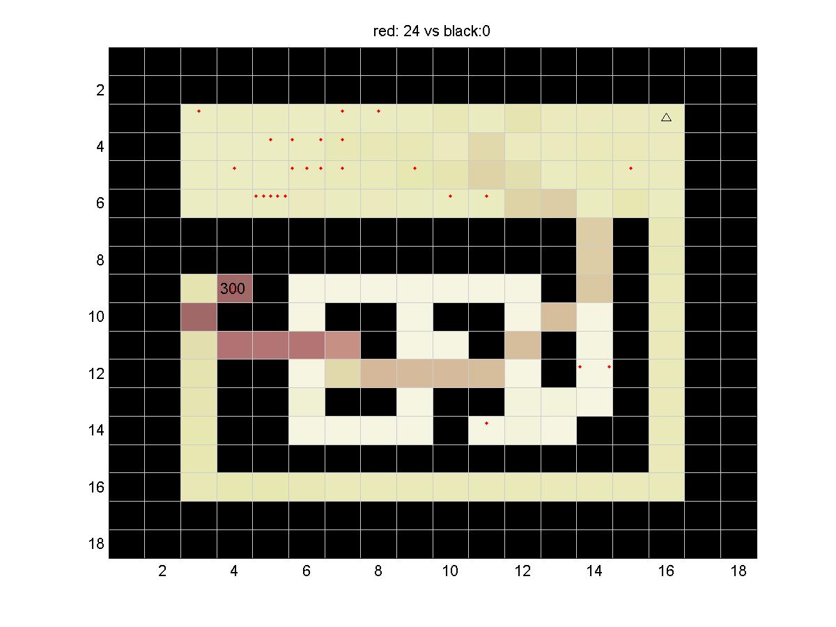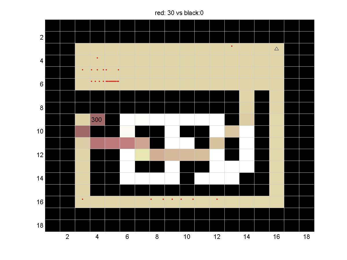 Board: 6 This board is particularly tricky because the goals of the two ants armies are nearly aligned. Also, there are a couple of dead ends that many ants got stuck in.