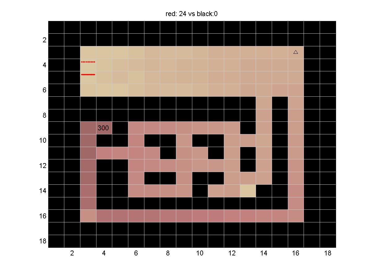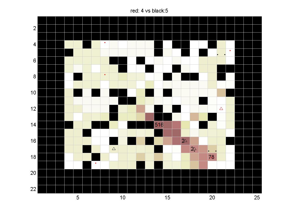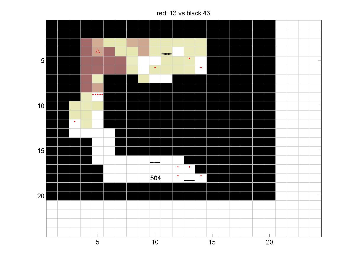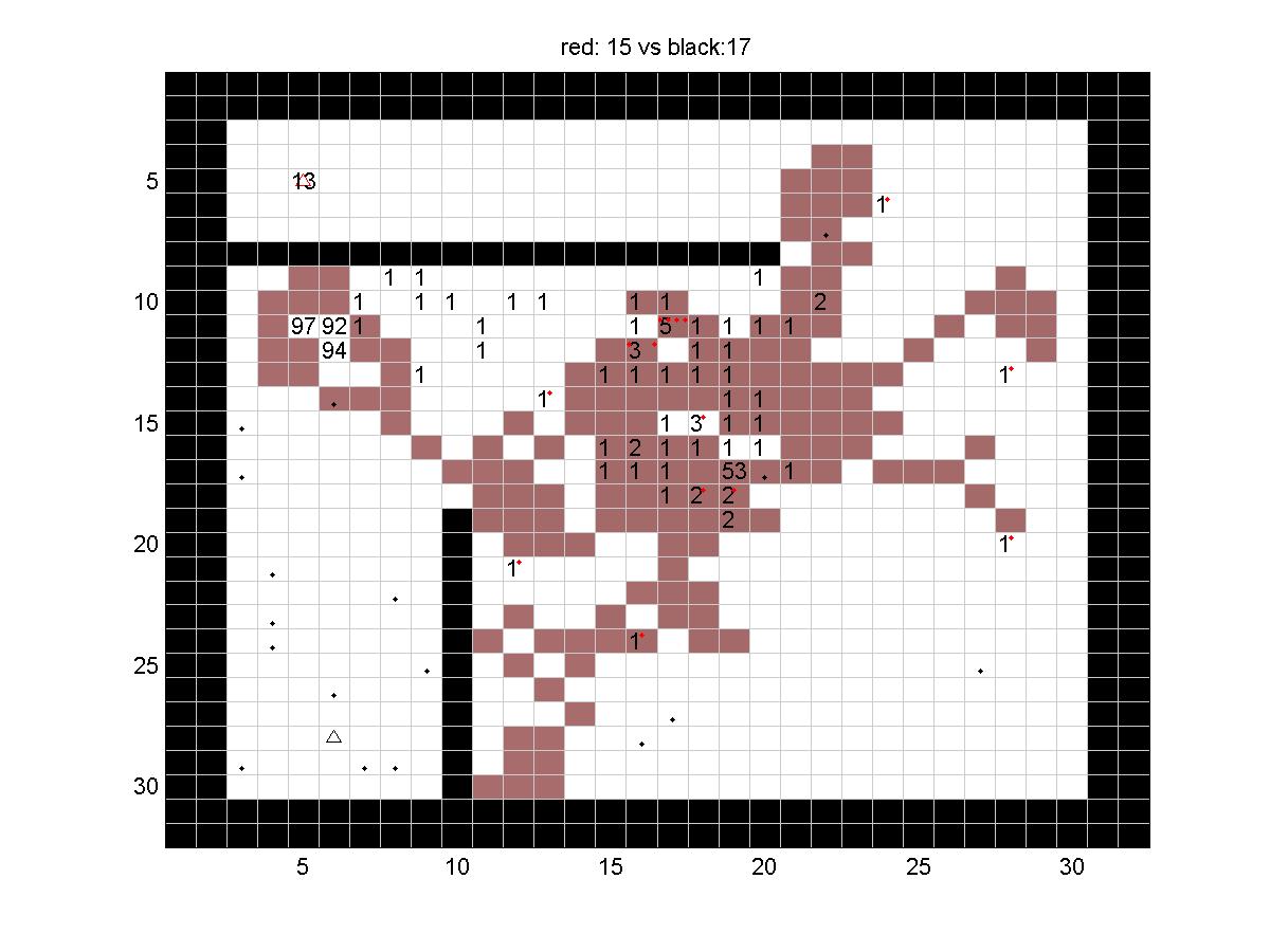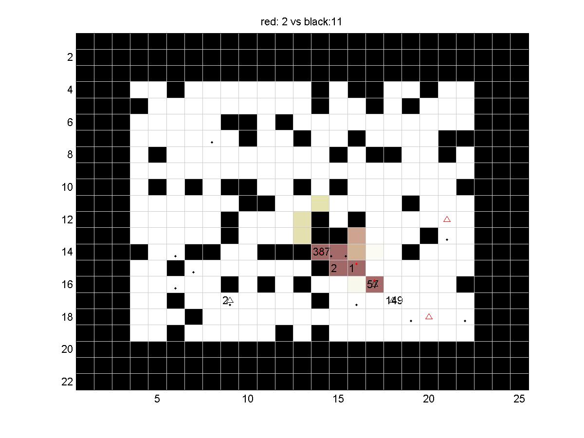 Board: 6 This board is particularly tricky because the goals of the two ants armies are nearly aligned. Also, there are a couple of dead ends that many ants got stuck in.