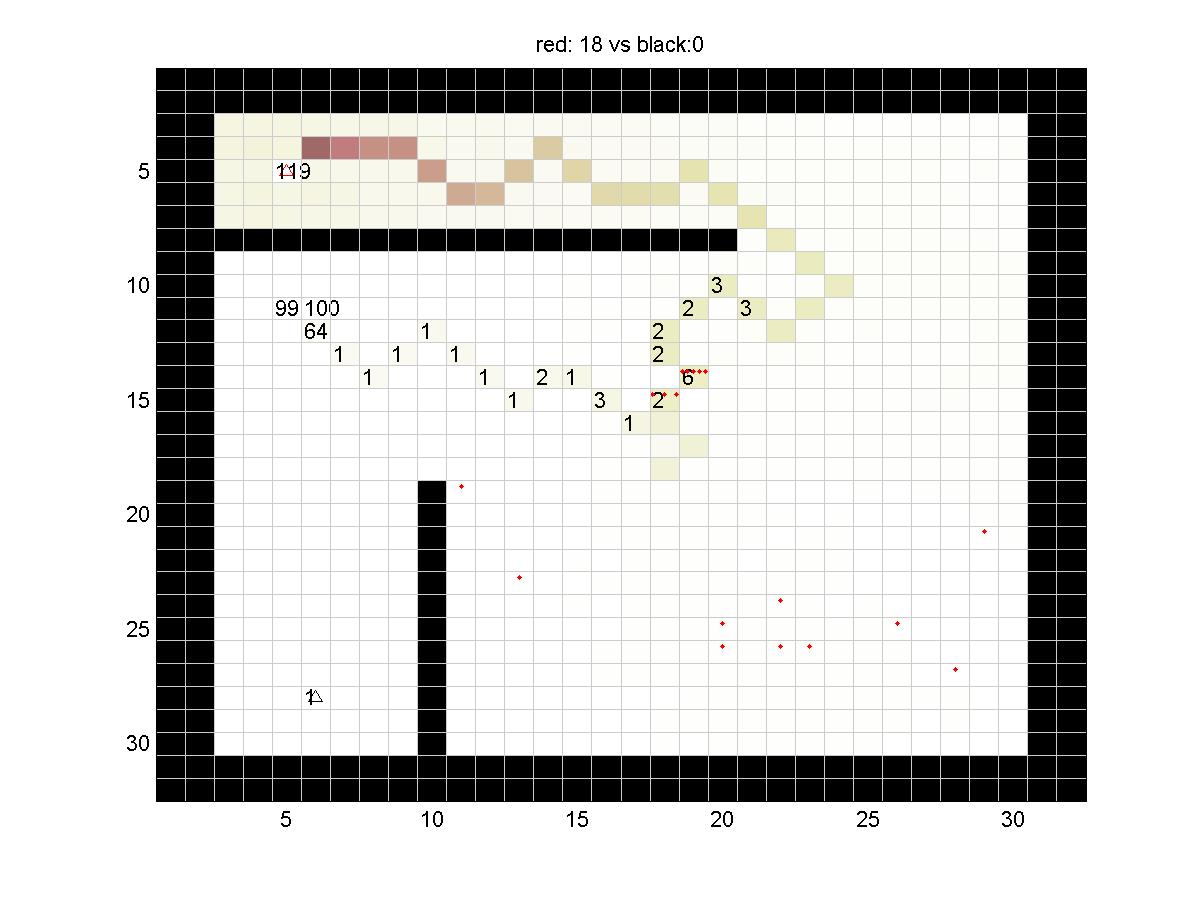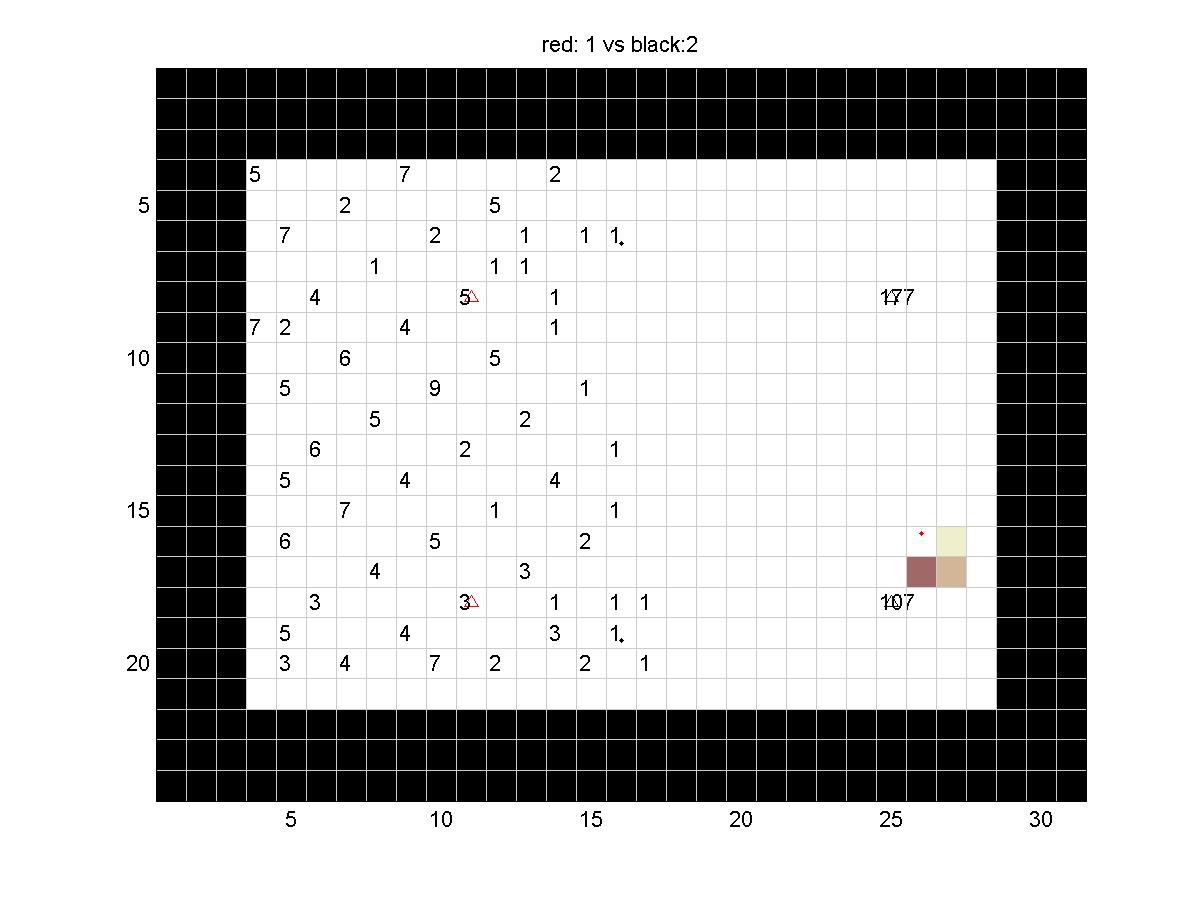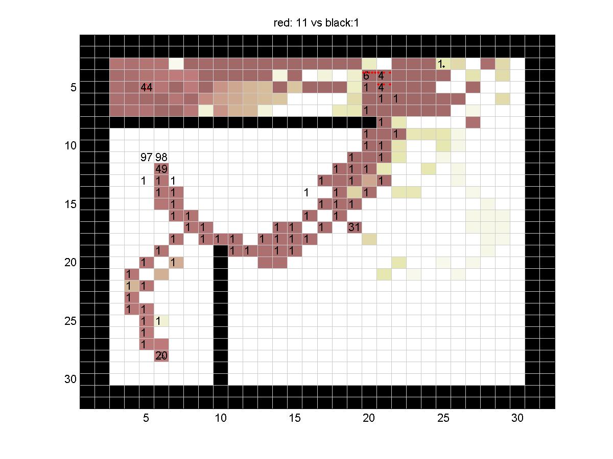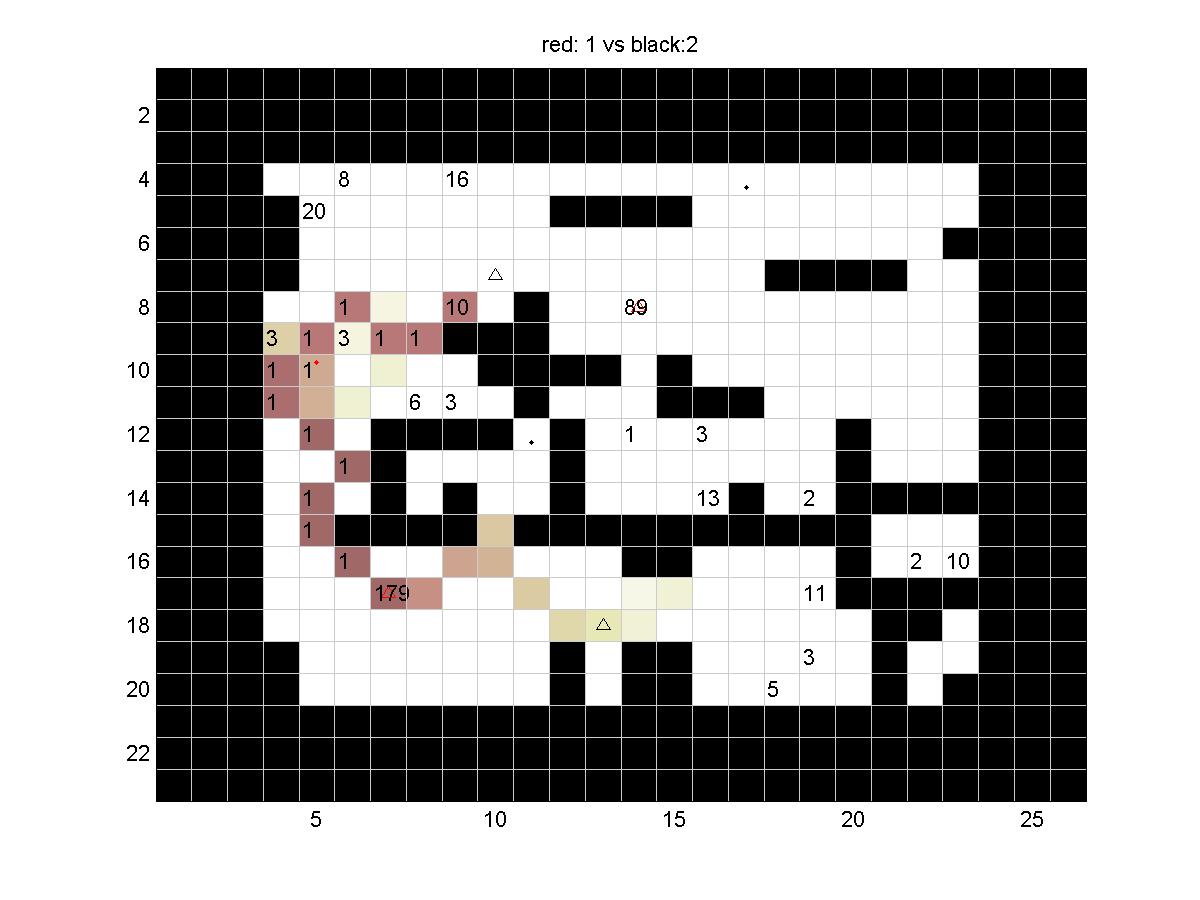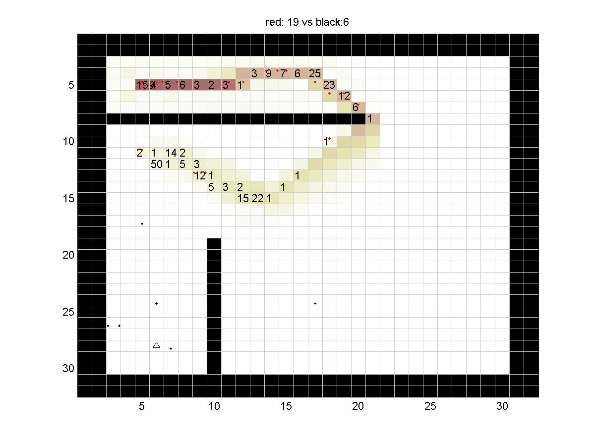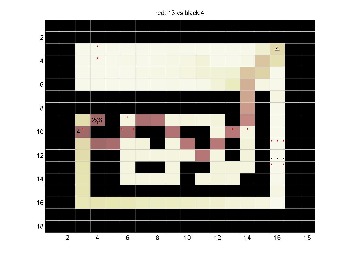 Board: 6 This board is particularly tricky because the goals of the two ants armies are nearly aligned. Also, there are a couple of dead ends that many ants got stuck in.