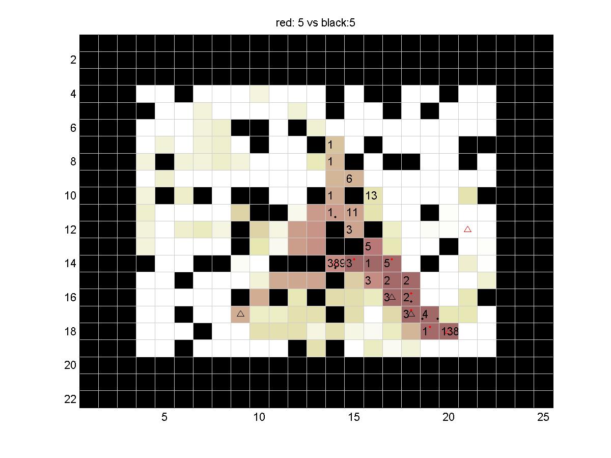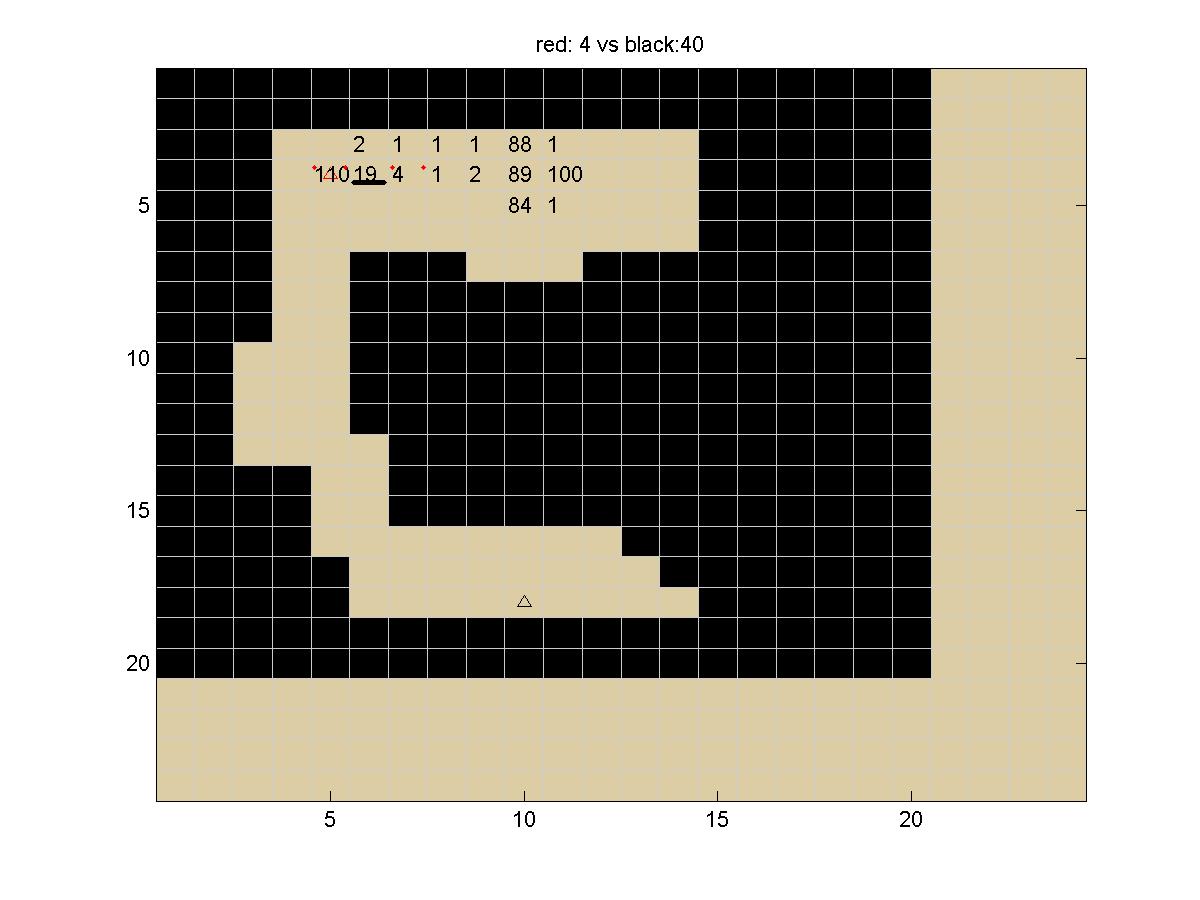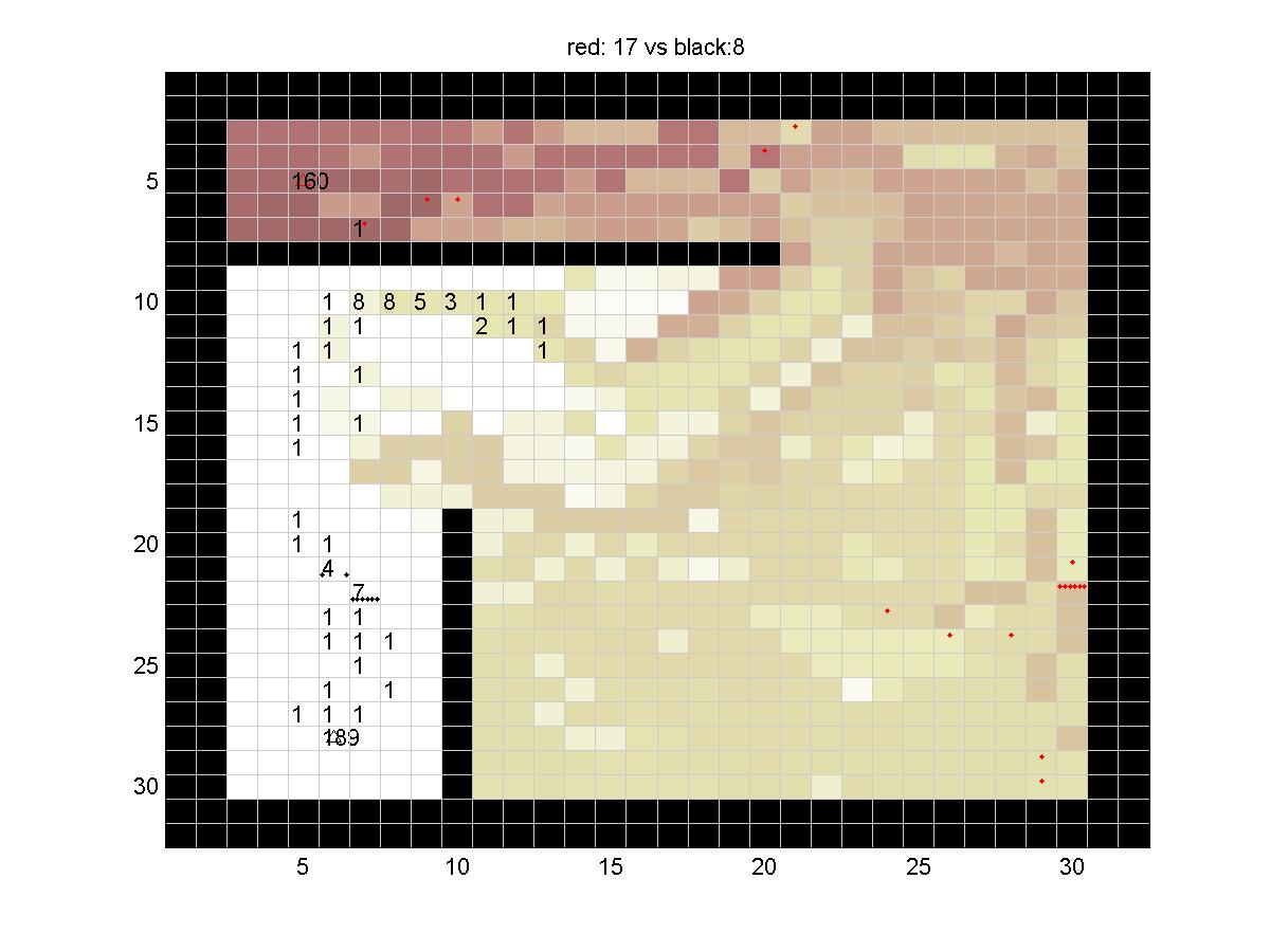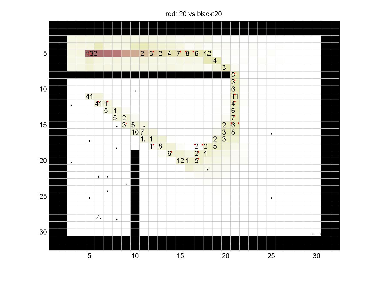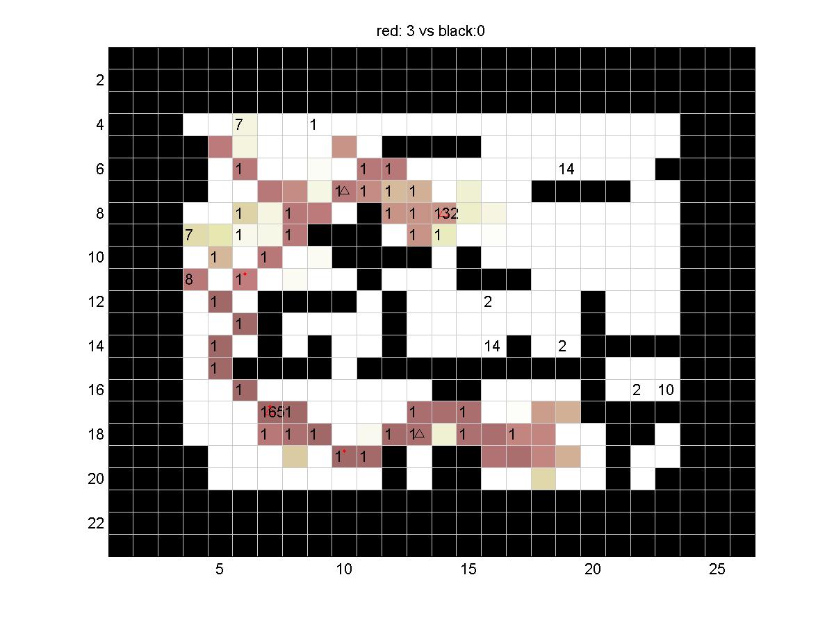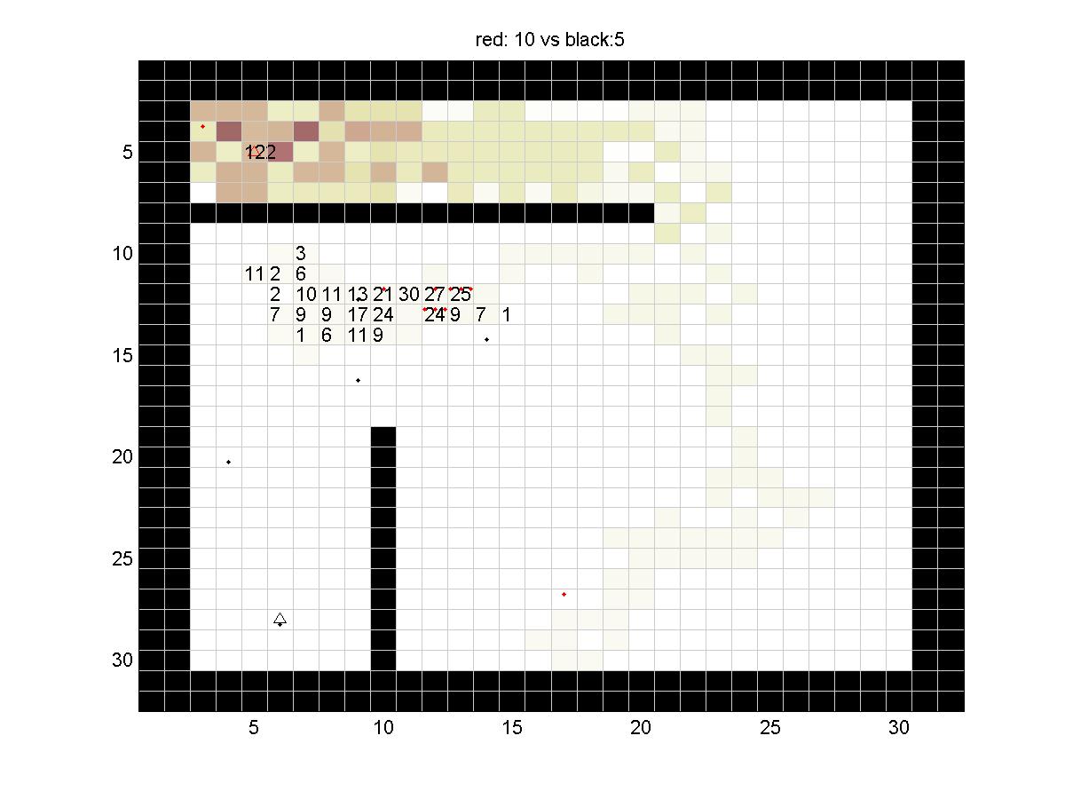 Board: 6 This board is particularly tricky because the goals of the two ants armies are nearly aligned. Also, there are a couple of dead ends that many ants got stuck in.