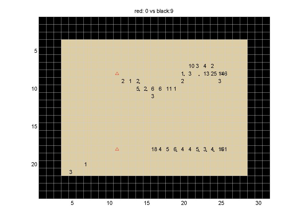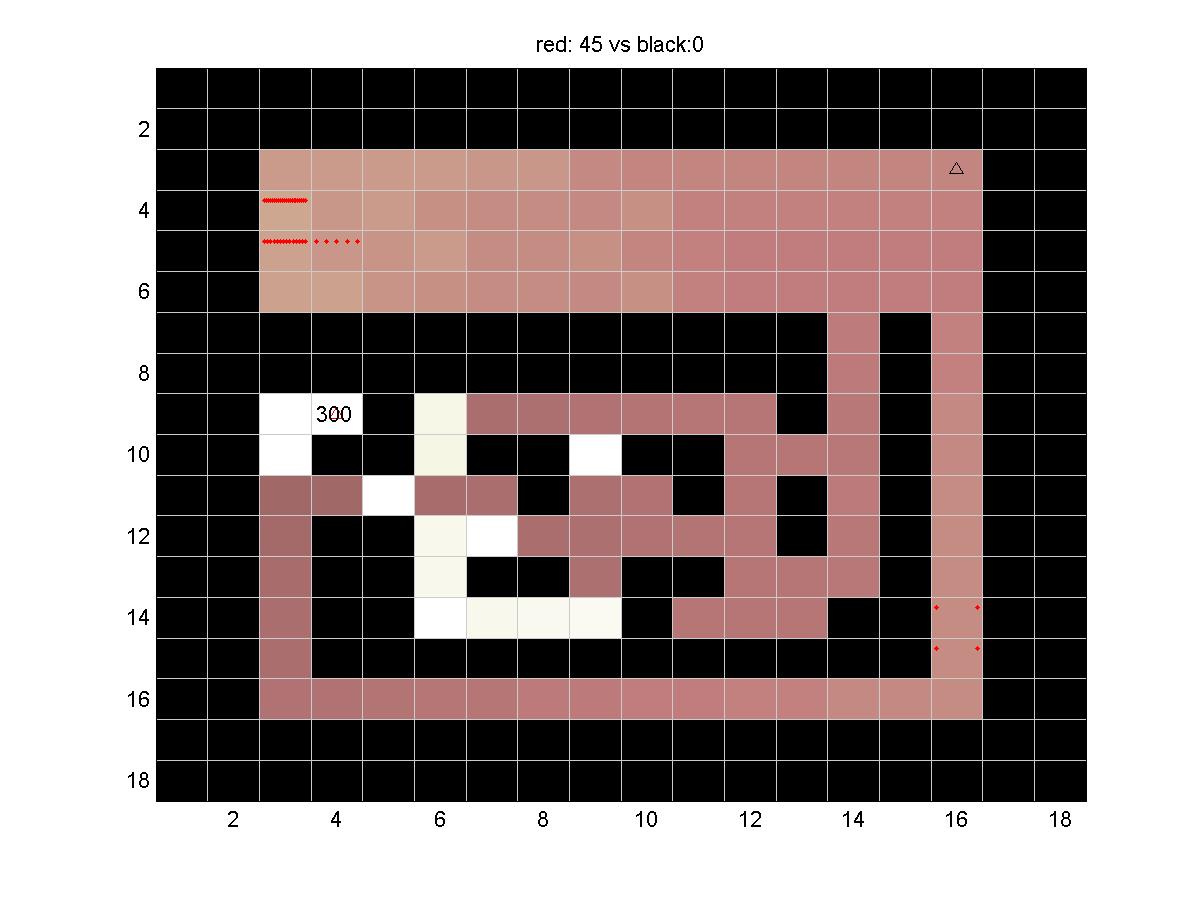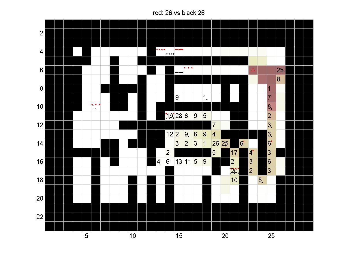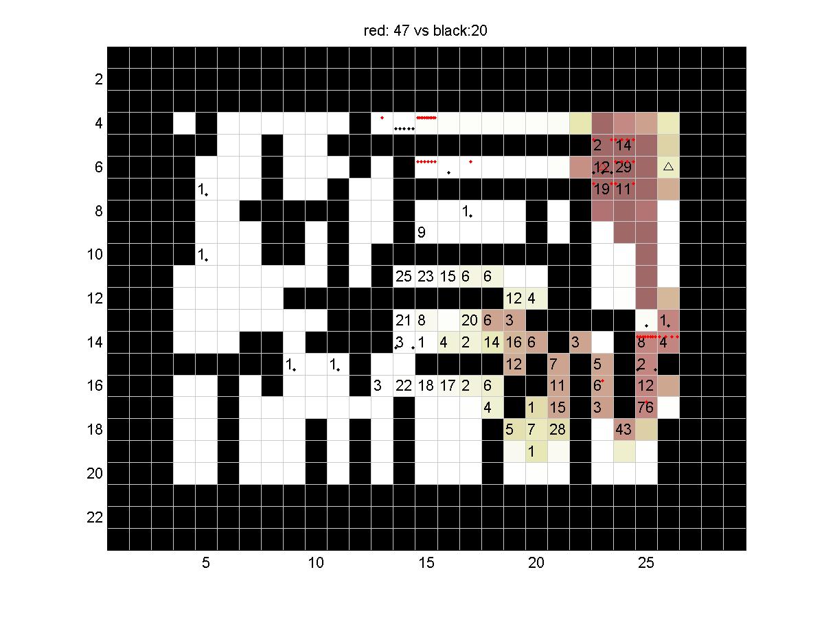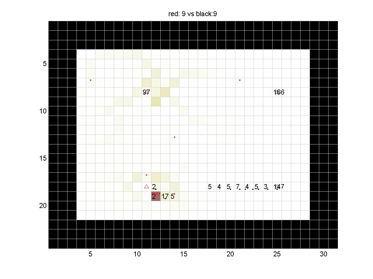 Board: 6 This board is particularly tricky because the goals of the two ants armies are nearly aligned. Also, there are a couple of dead ends that many ants got stuck in.