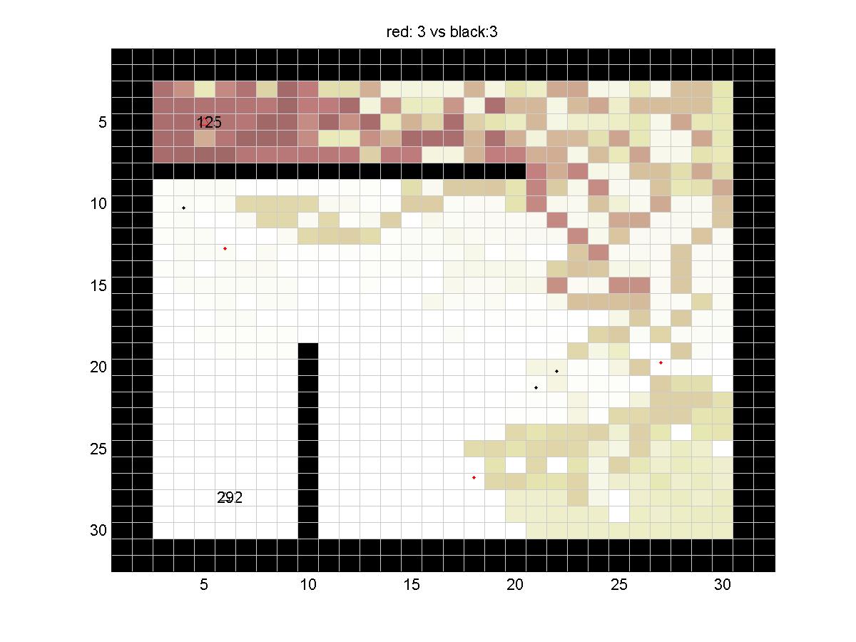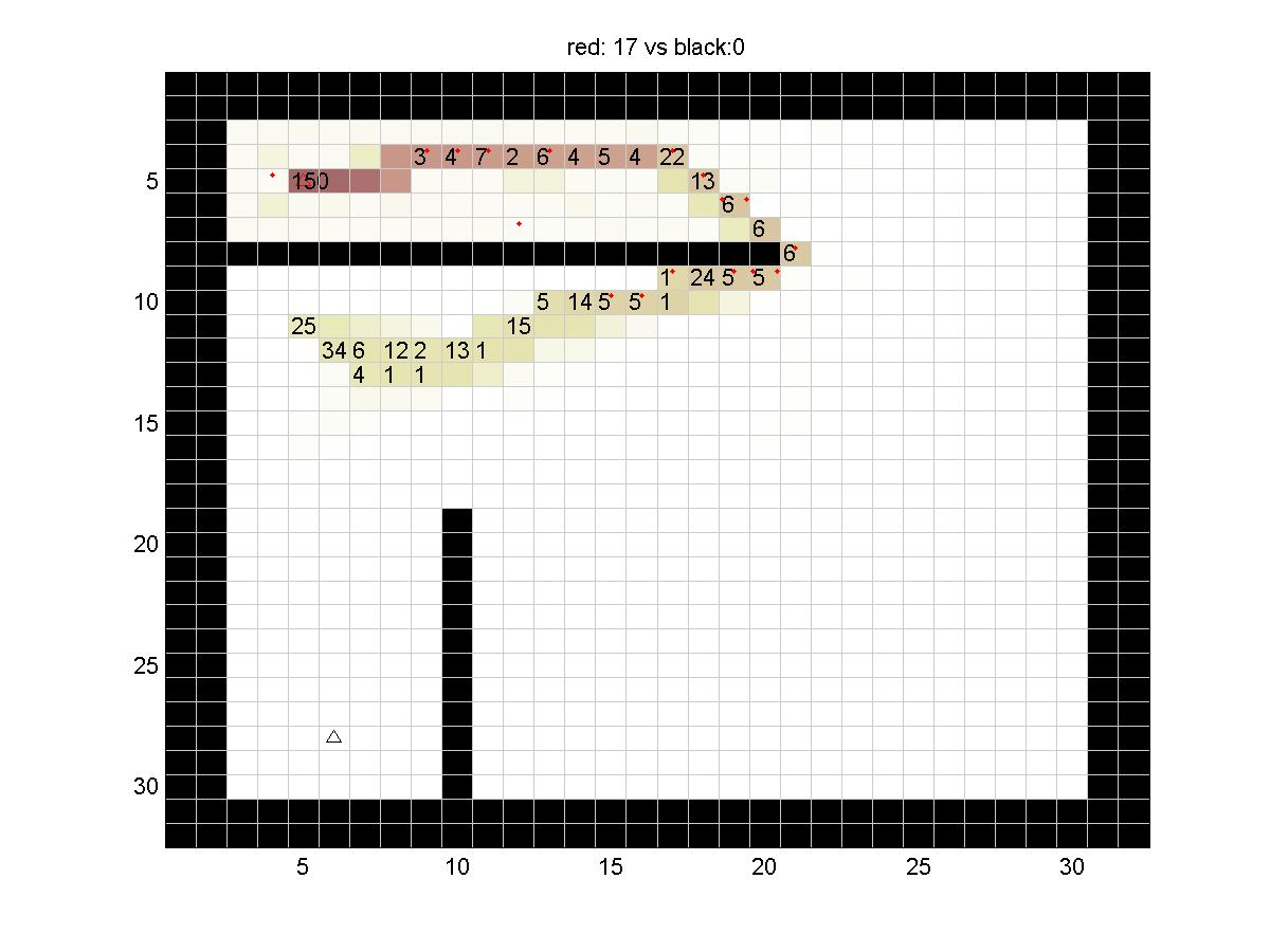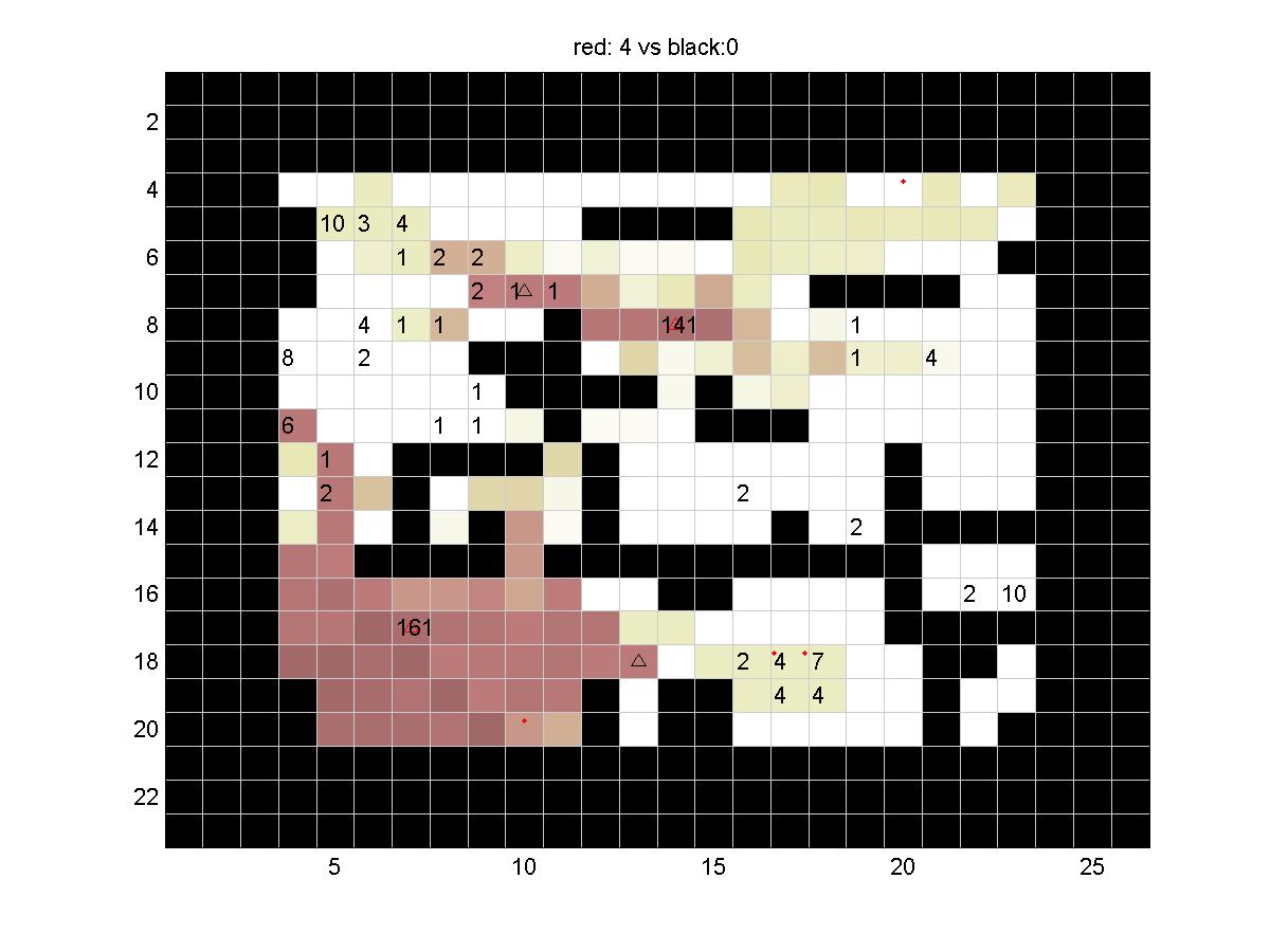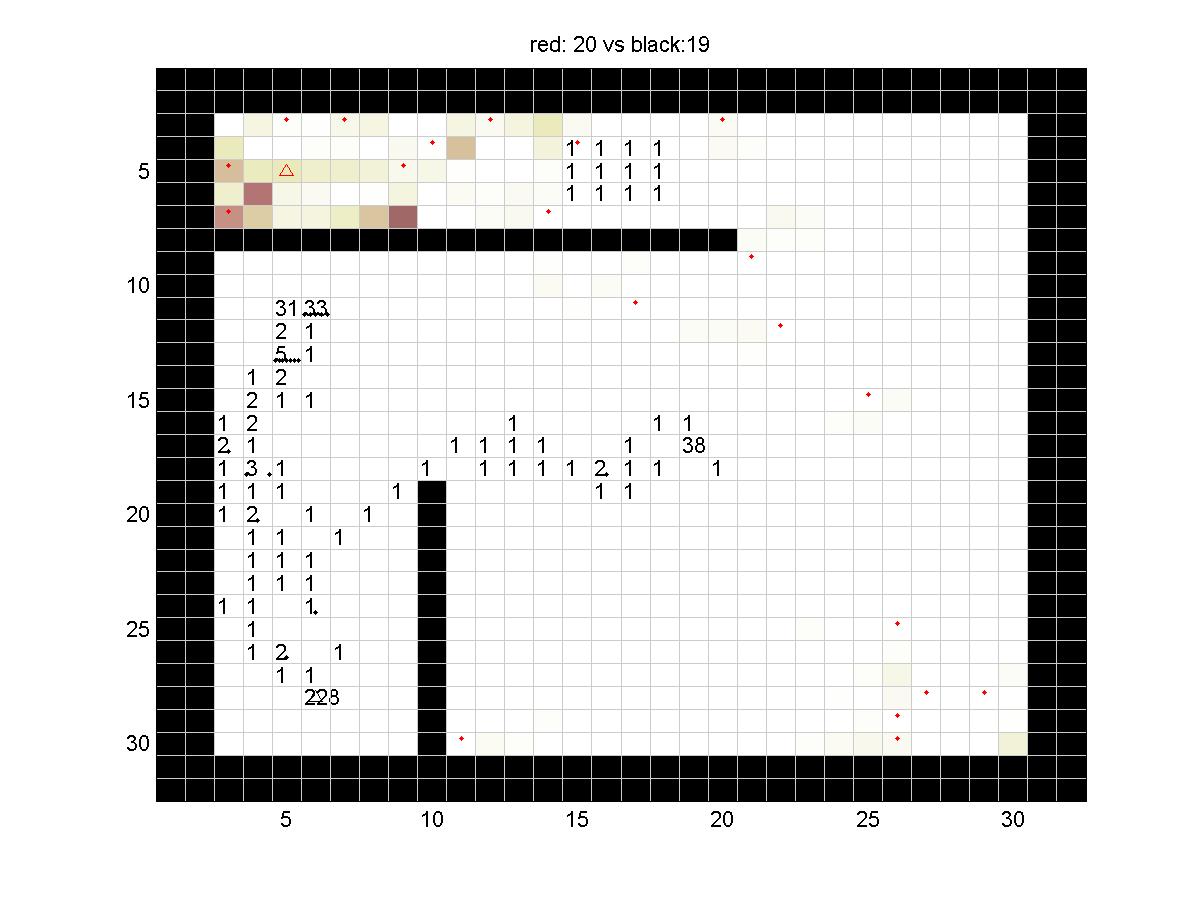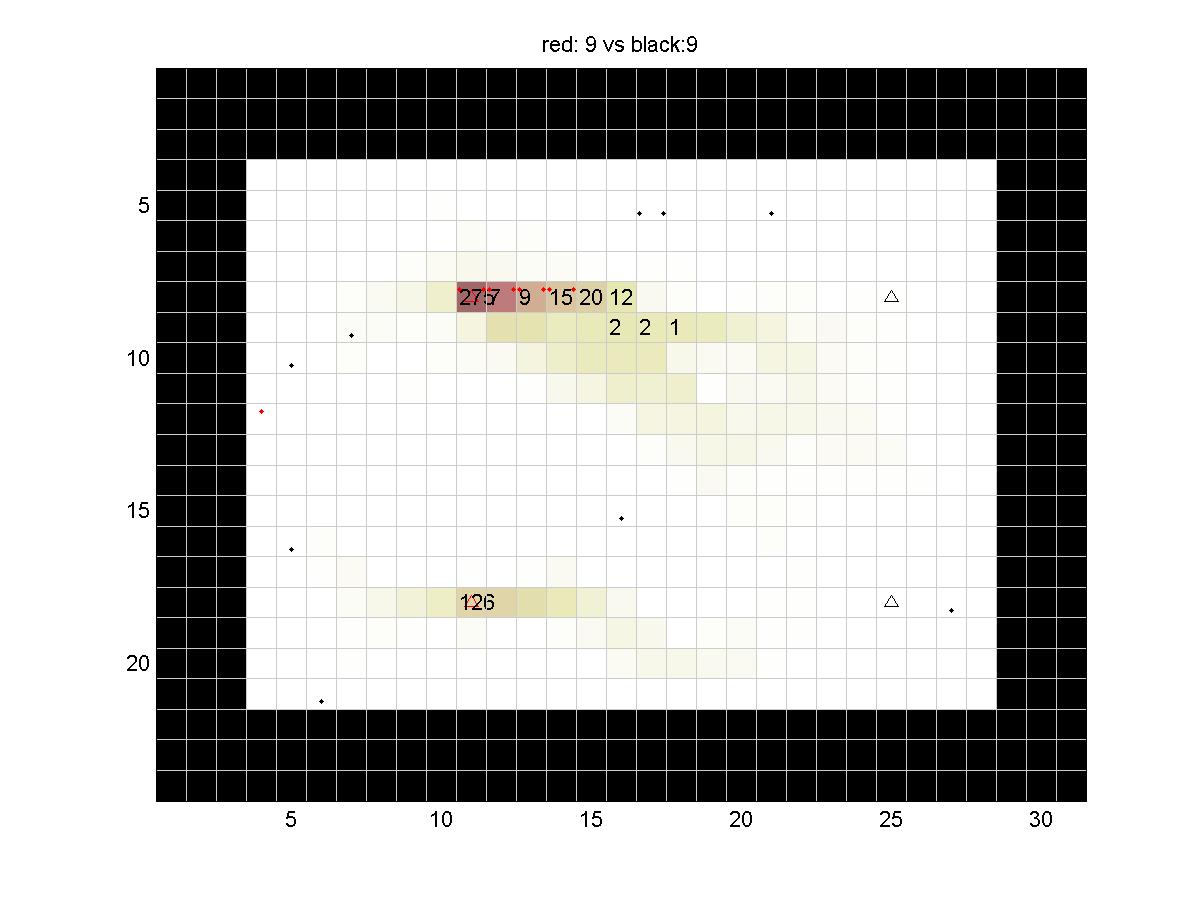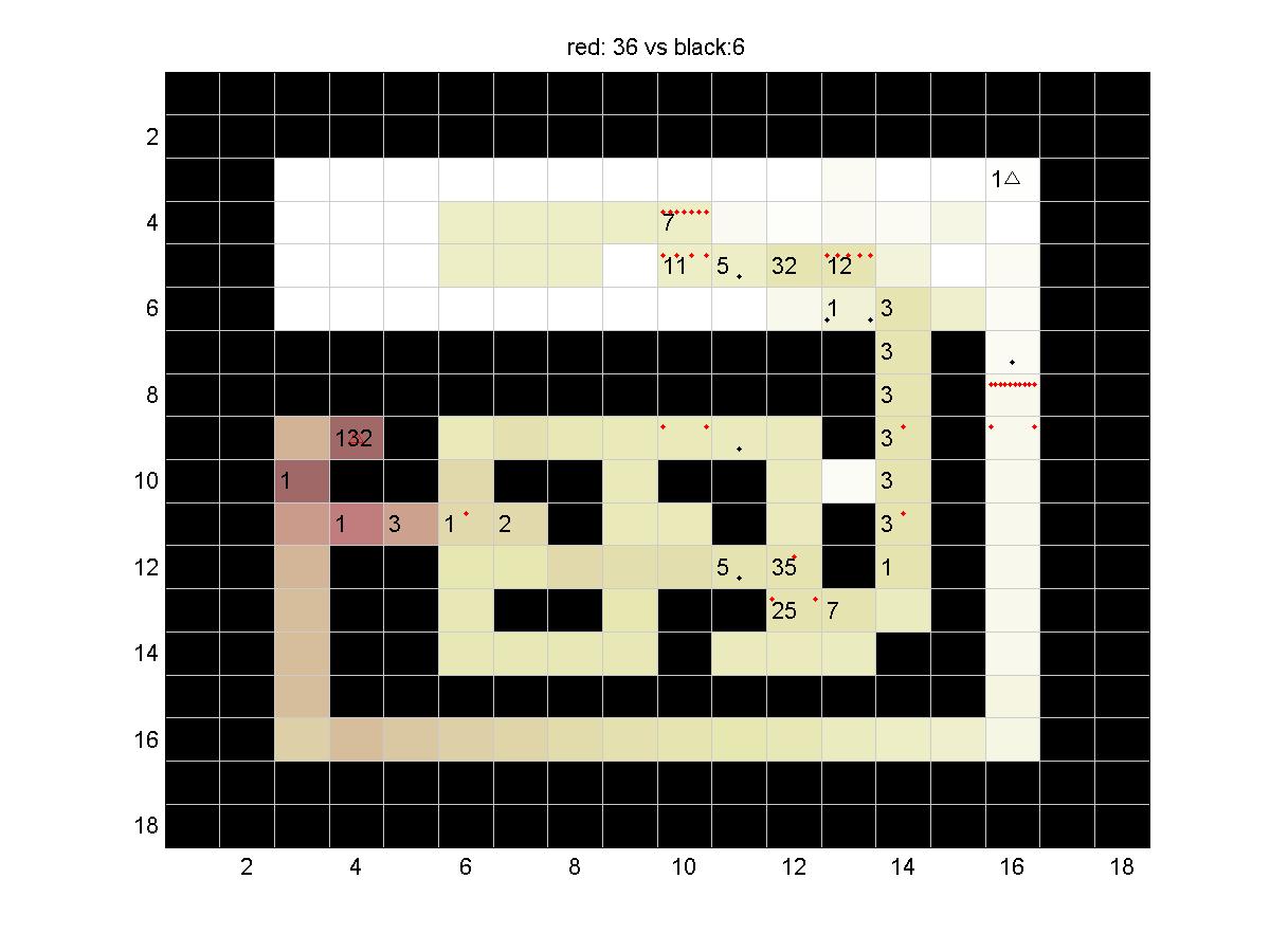 Board: 6 This board is particularly tricky because the goals of the two ants armies are nearly aligned. Also, there are a couple of dead ends that many ants got stuck in.