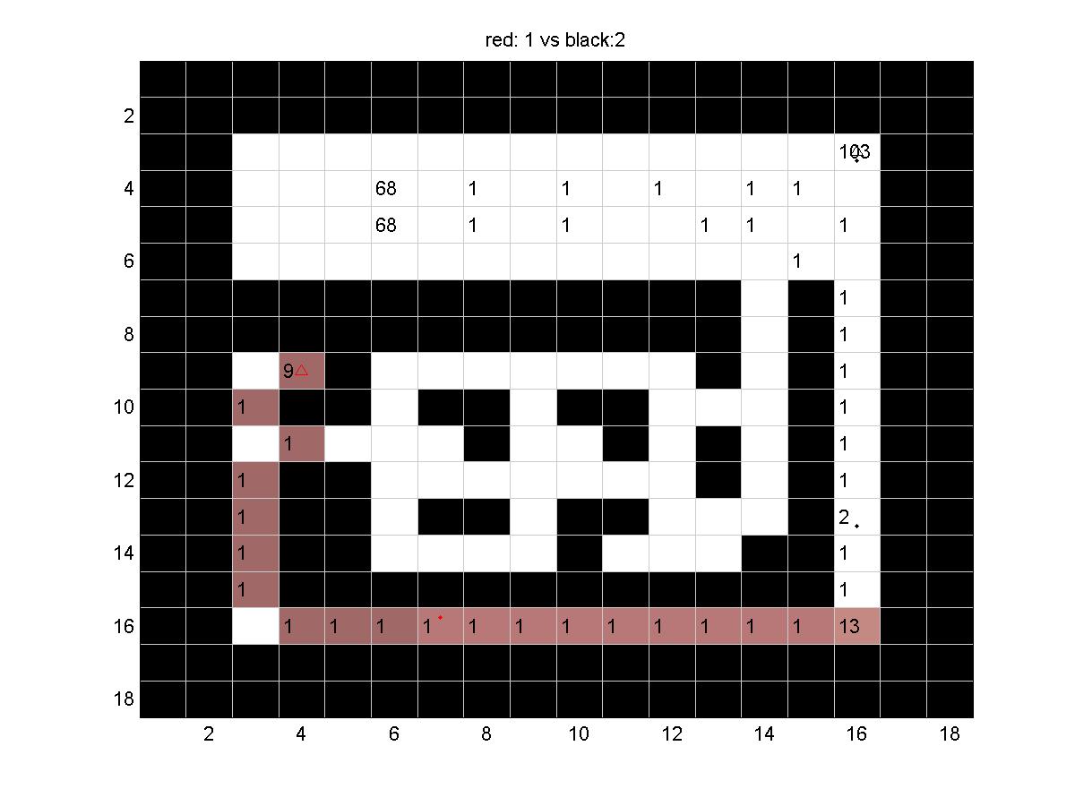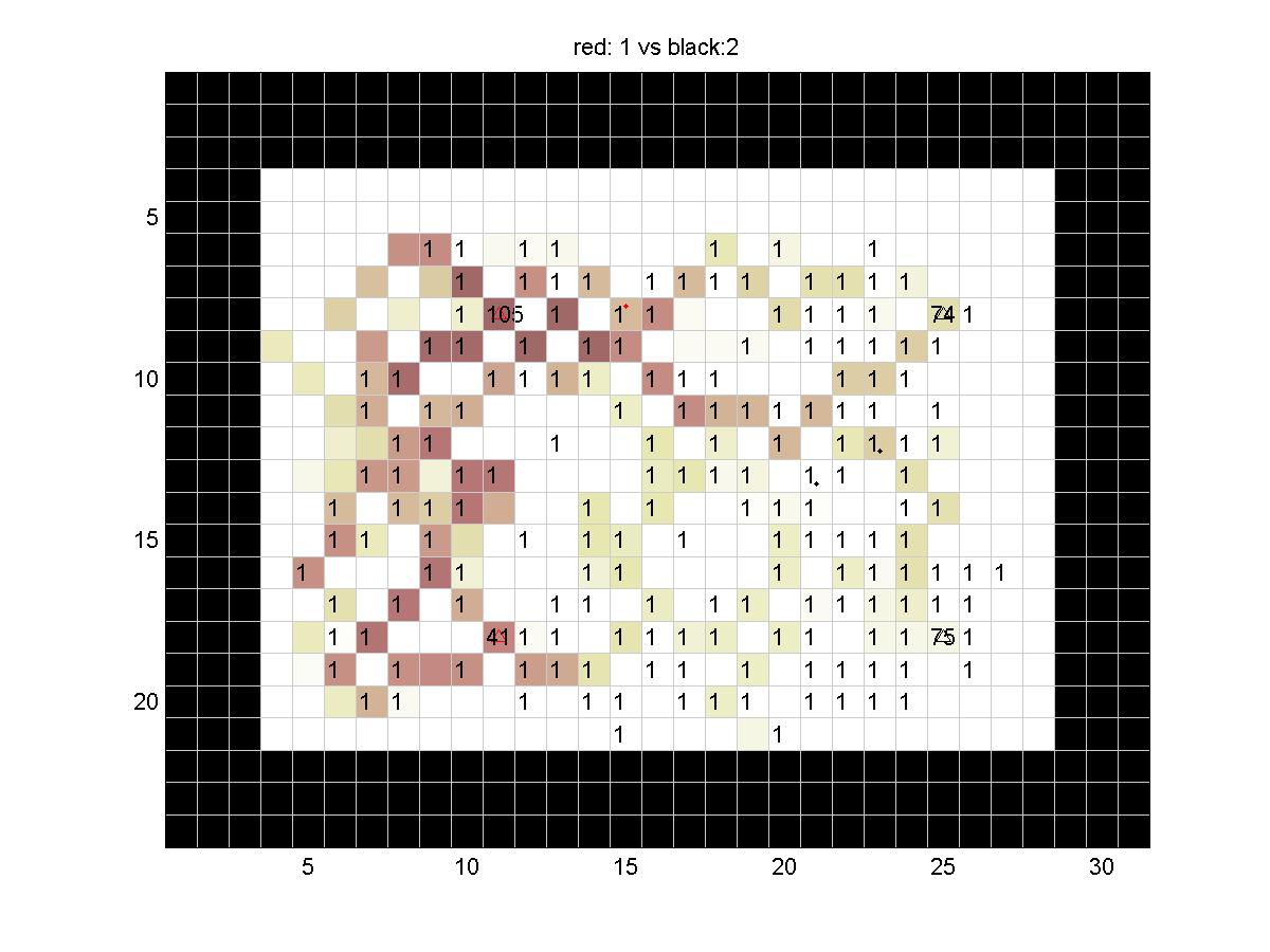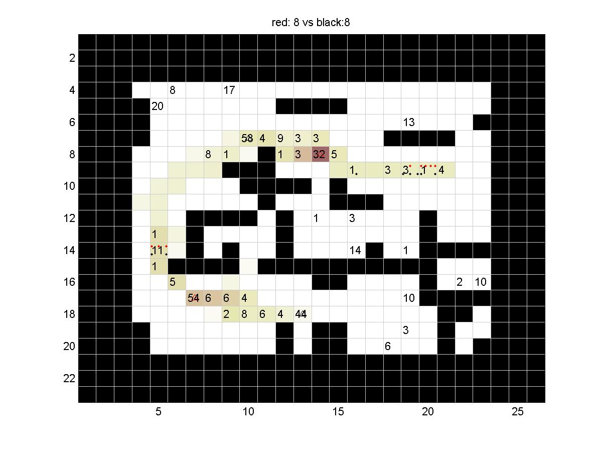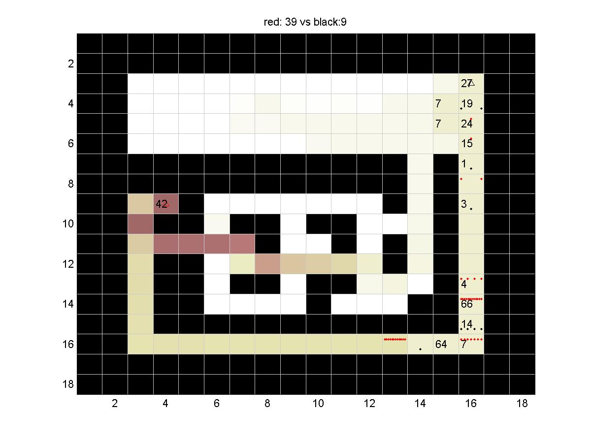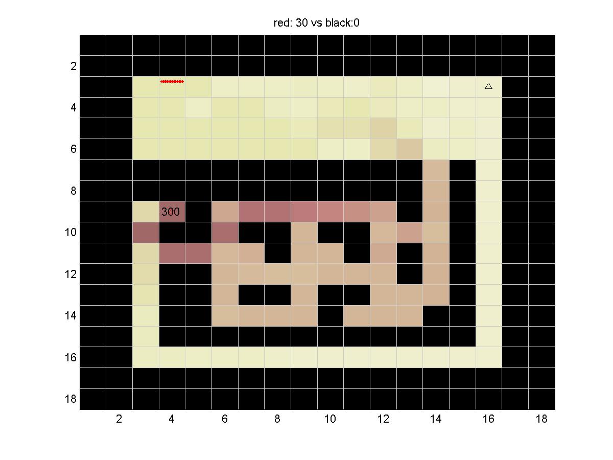 Board: 6 This board is particularly tricky because the goals of the two ants armies are nearly aligned. Also, there are a couple of dead ends that many ants got stuck in.