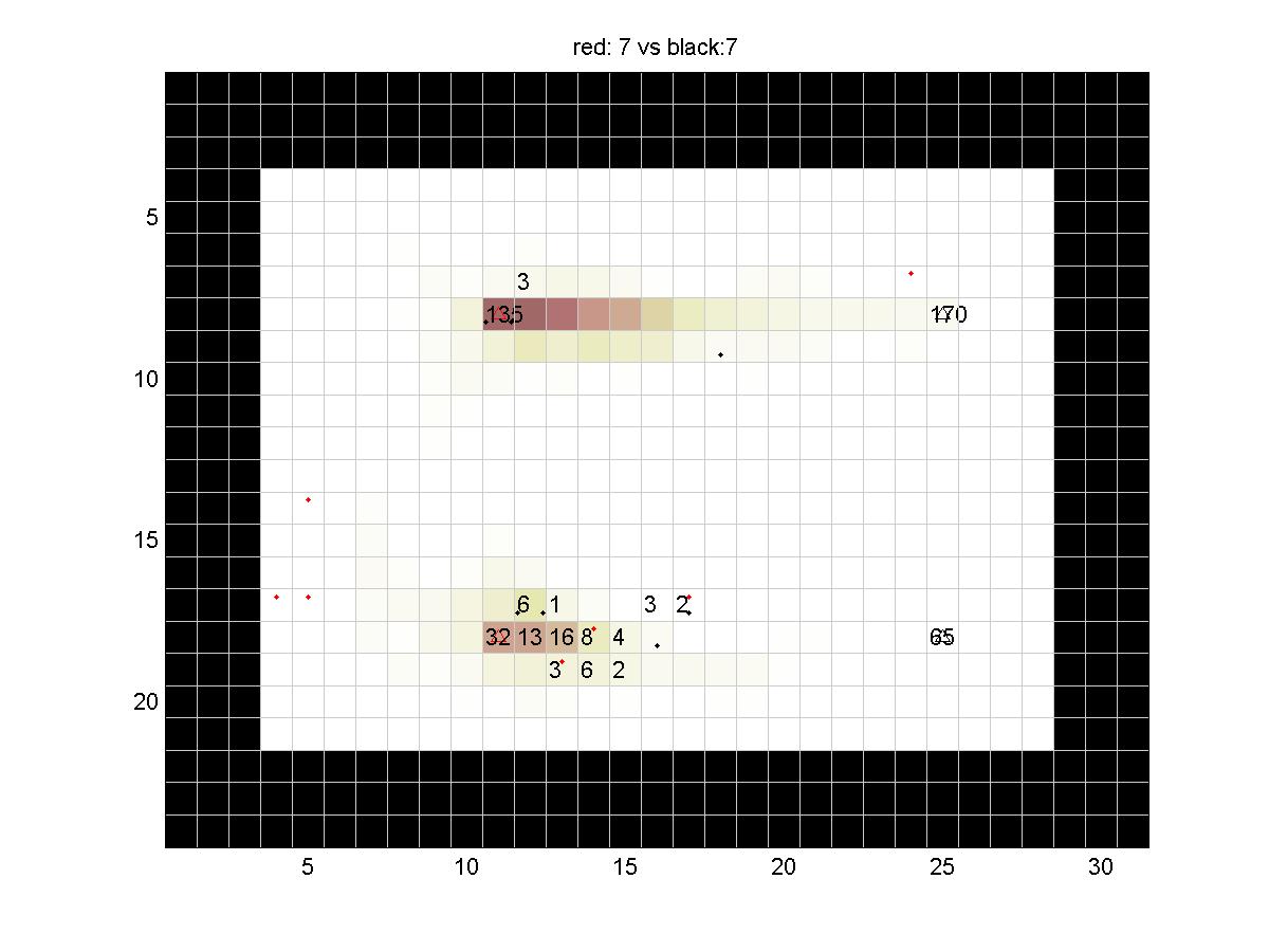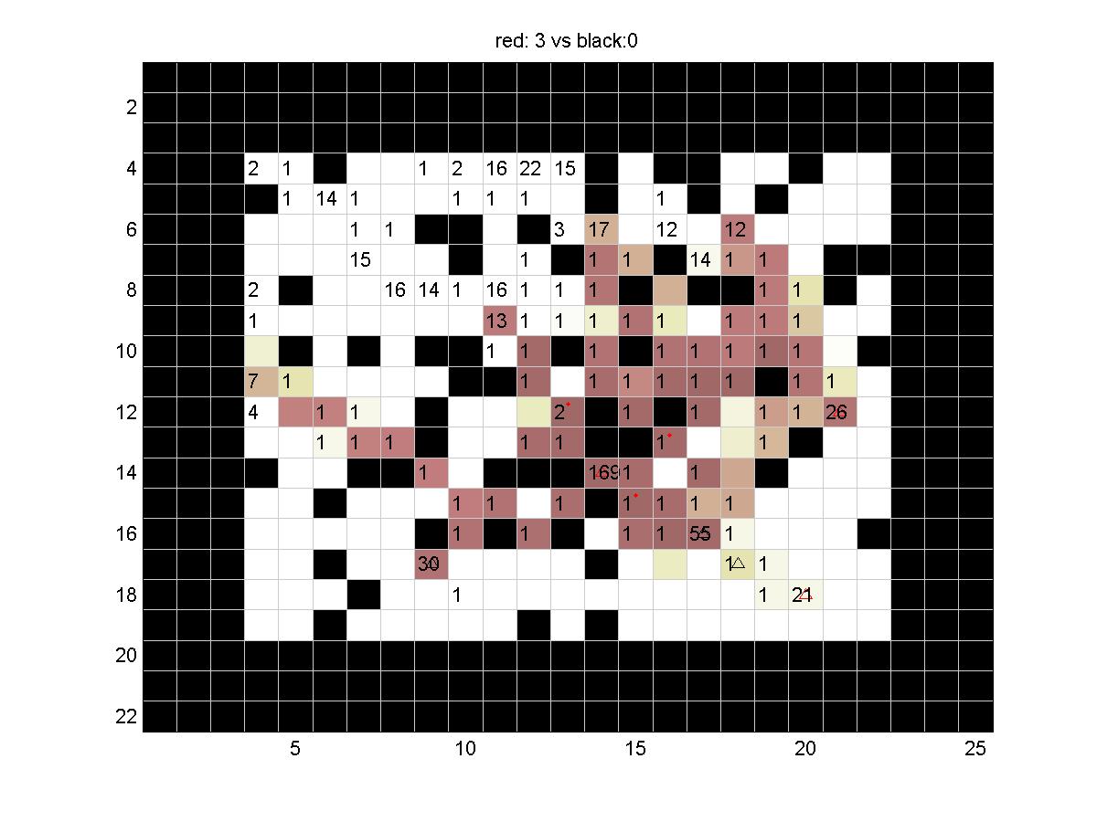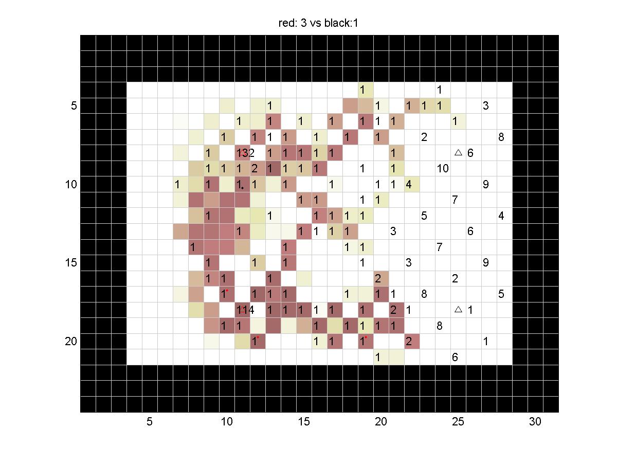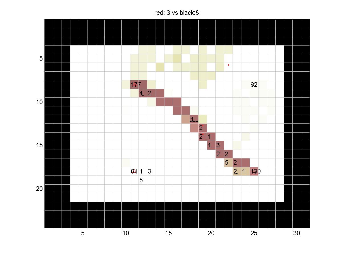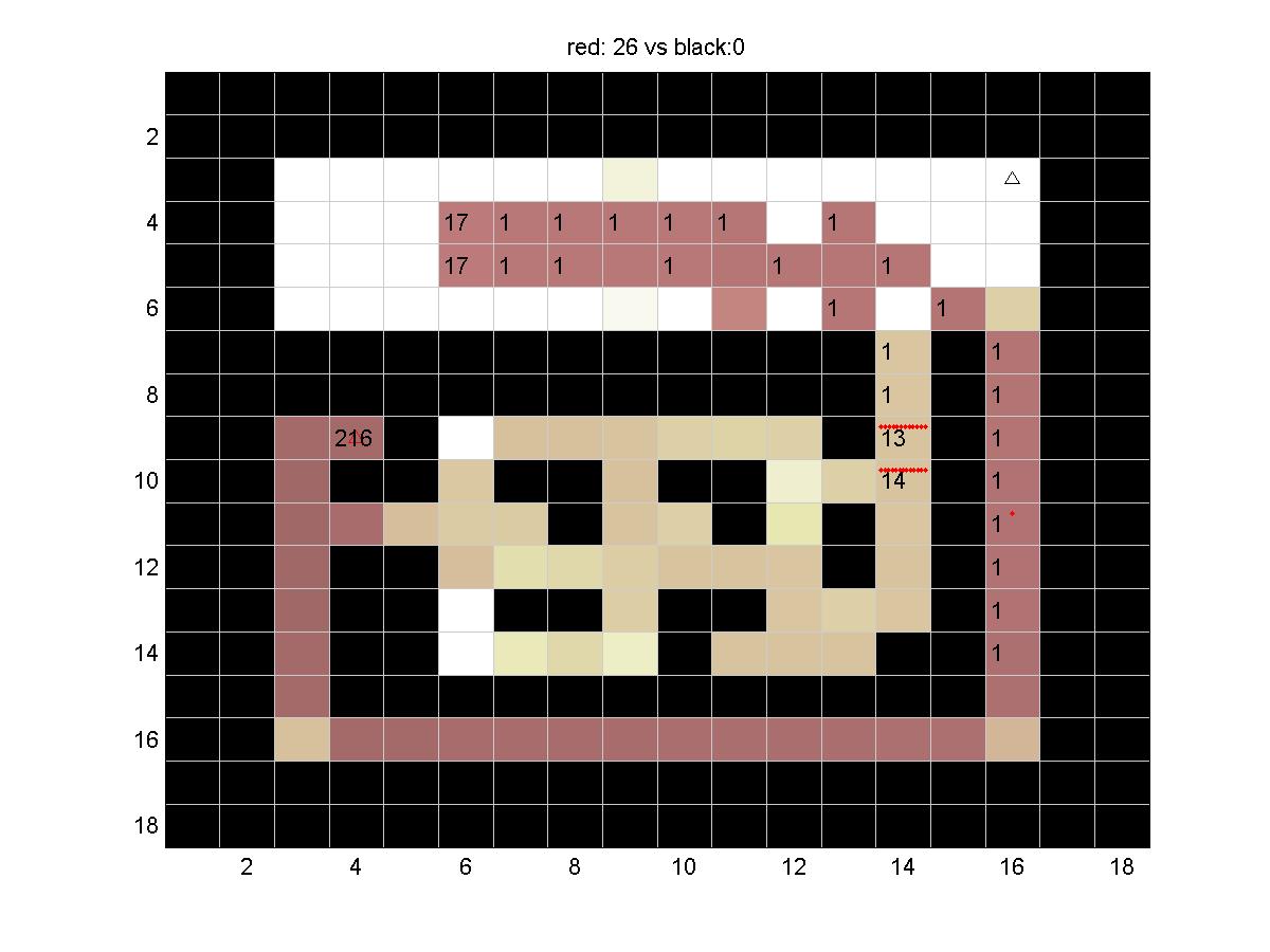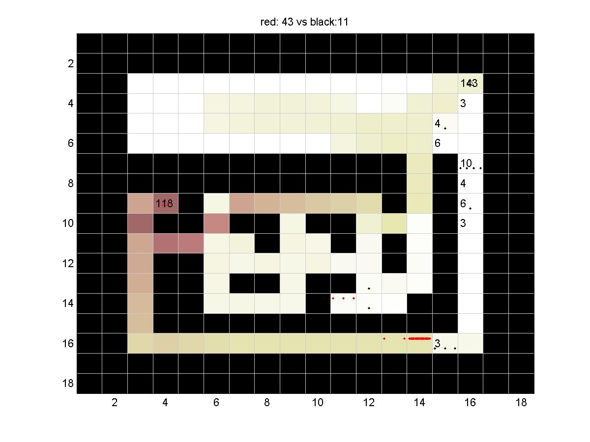 Board: 6 This board is particularly tricky because the goals of the two ants armies are nearly aligned. Also, there are a couple of dead ends that many ants got stuck in.