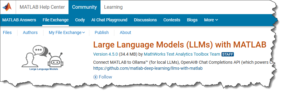 - Install Large Language Models (LLMs) with MATLAB from MATLAB File Exchange or from GitHub.