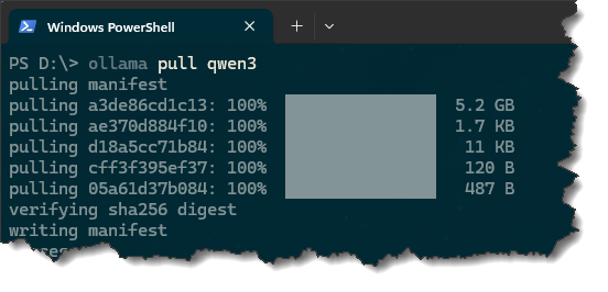 - Install Ollama and pull one of the models that support tools. In my case, after installing Ollama, I launched the Windows Powershell and executed "ollama pull qwen3". There is no special reason why I chose qwen3, it just seemed to work well.