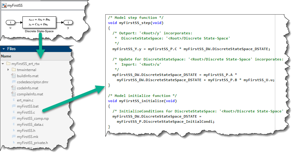 This probably raises a lot of questions: What are all those functions and variables? Where do they come from? Is there a naming convention? Can I control how the variables are named? How do the equations in the C code relate to the blocks and signals in my Simulink model?