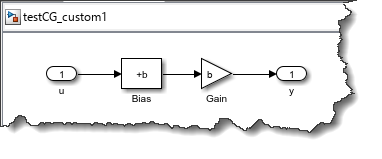 While inputs, outputs, and states map to individual modeling elements, parameters can be used in multiple blocks, and this is reflected in the generated code. Let's take this simple example where I use a variable "b" in both the Bias and Gain block: