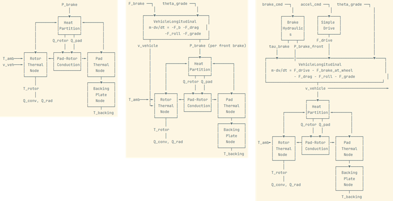 The plan typically includes an ASCII diagram of what the system will look like. Here are 3 iterations I went through where I asked to include a simple longitudinal vehicle with the brake model: