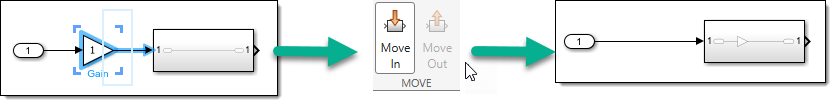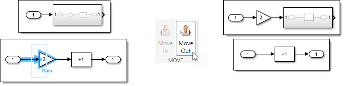Select blocks connected to an Inport or Outport inside a subsystem and move them out, in one click.