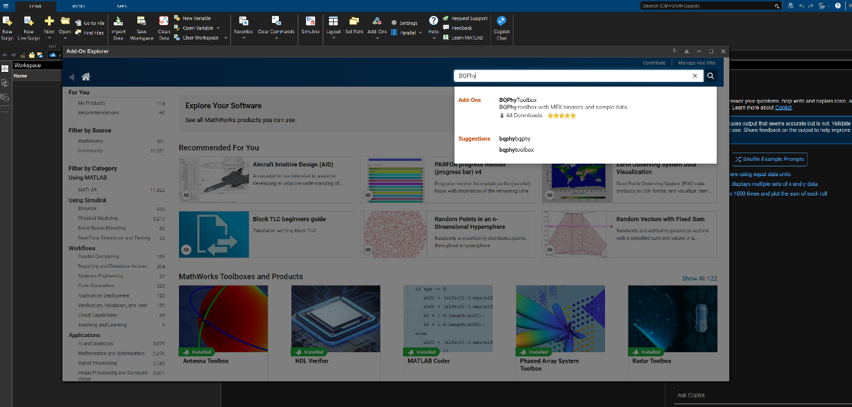 BQPhy toolbox is seen within MATLAB as an add-on toolbox.