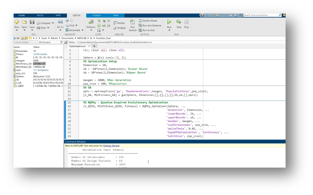 BQP’s QIO platform is easily called from within MATLAB (Image courtesy of BQP)