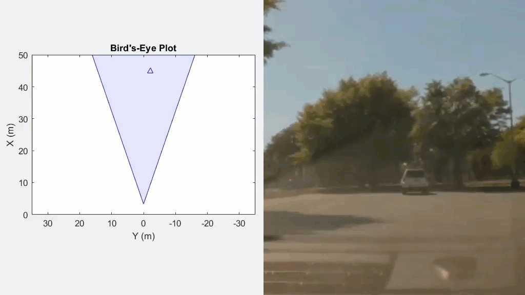 Although detections are shown in 2D using the Driving Scenario Designer, these sensors are simulated in 3D as they operate with a vertical FOV. The vertical FOV assists detections as the ego vehicle goes up and down hills where target vehicles could be dropped or where overpasses may otherwise be identified as a stationary object in the ego vehicle’s path.
